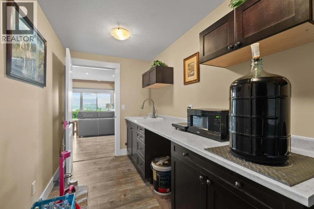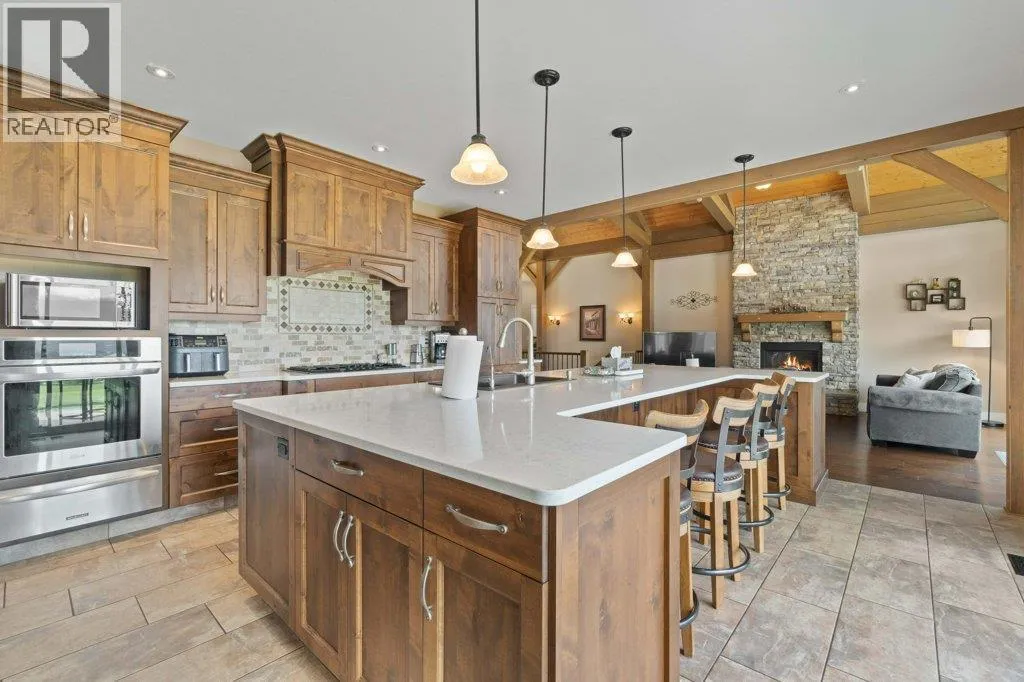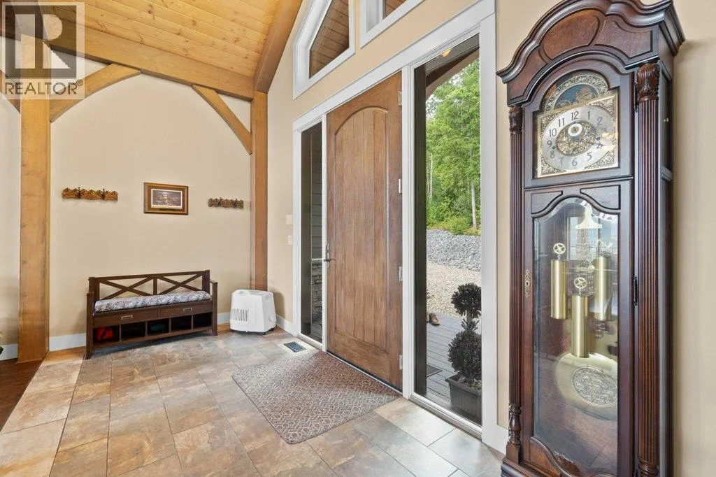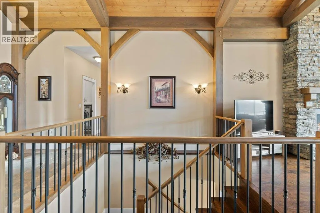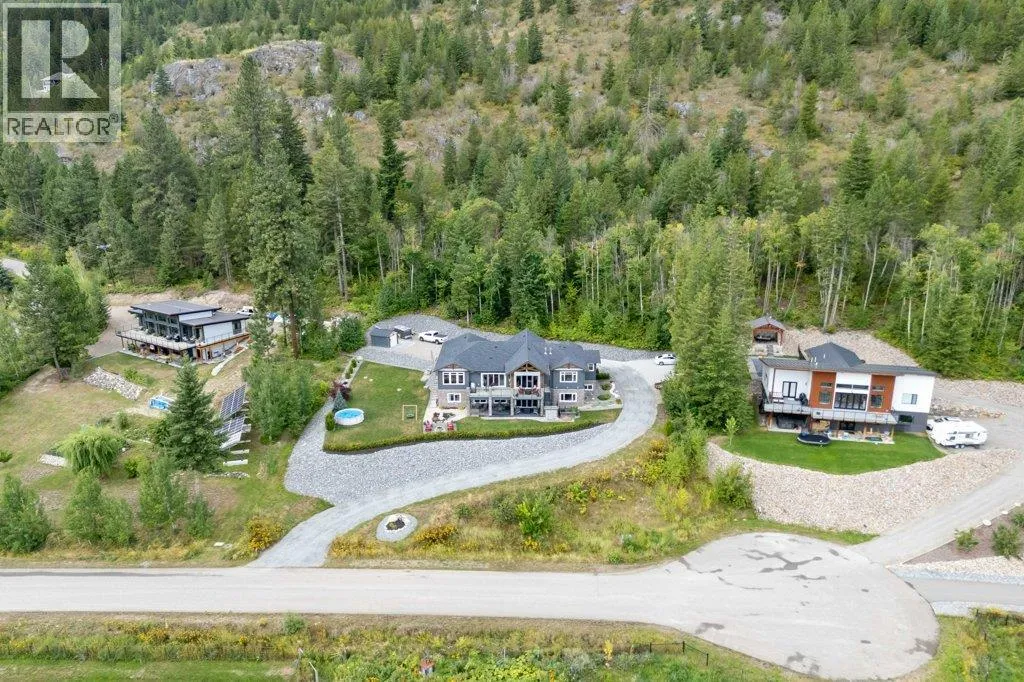IMPRESSIVE CITY & LAKE VIEW CUSTOM HOME on just over 5 acres minutes to downtown Salmon Arm in an area of fine homes. If you like attention to detail & quality construction, you'll love this one. Offering over 4000 sq ft of living space including 4 bedrooms, 3 bathrooms, office and main living areas, this property has something for everyone. As you walk through the front doors into the spacious entry, you'll notice the character of the stone fireplace & wood beam accents, along with the views through the large vaulted living room windows. Continue further and the large kitchen island will cause you to stop in your tracks and take in the incredible amount of counter space and abundance of cabinets making it a chef's dream. Quartz counter tops & knotty alder cabinetry create a warm & inviting feel perfect for entertaining. A large separate dining room is surrounded by windows for the best views. You also have access to the large east facing deck where you can enjoy your morning coffee. The primary bedroom is spacious and features a walk-in closet, ensuite with soaker tub, double vanity and large walk-in shower. In the basement you'll find more bedrooms, a games/family room area, hobby or wine room and walkout to the lower covered patio. Lots of storage with a 3 car garage and outside shed. Too many extras to mention including surge protection in the electrical panel, 2 zone heating system with HRV, and so much more. Call for details and book your showing today. (id:27476)