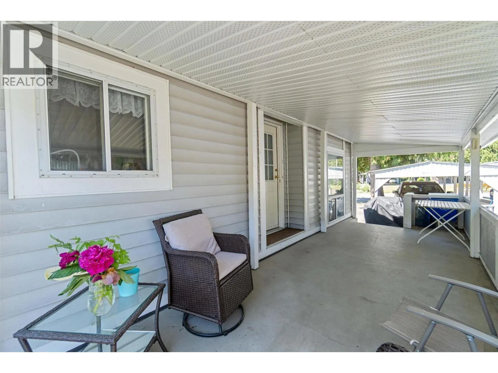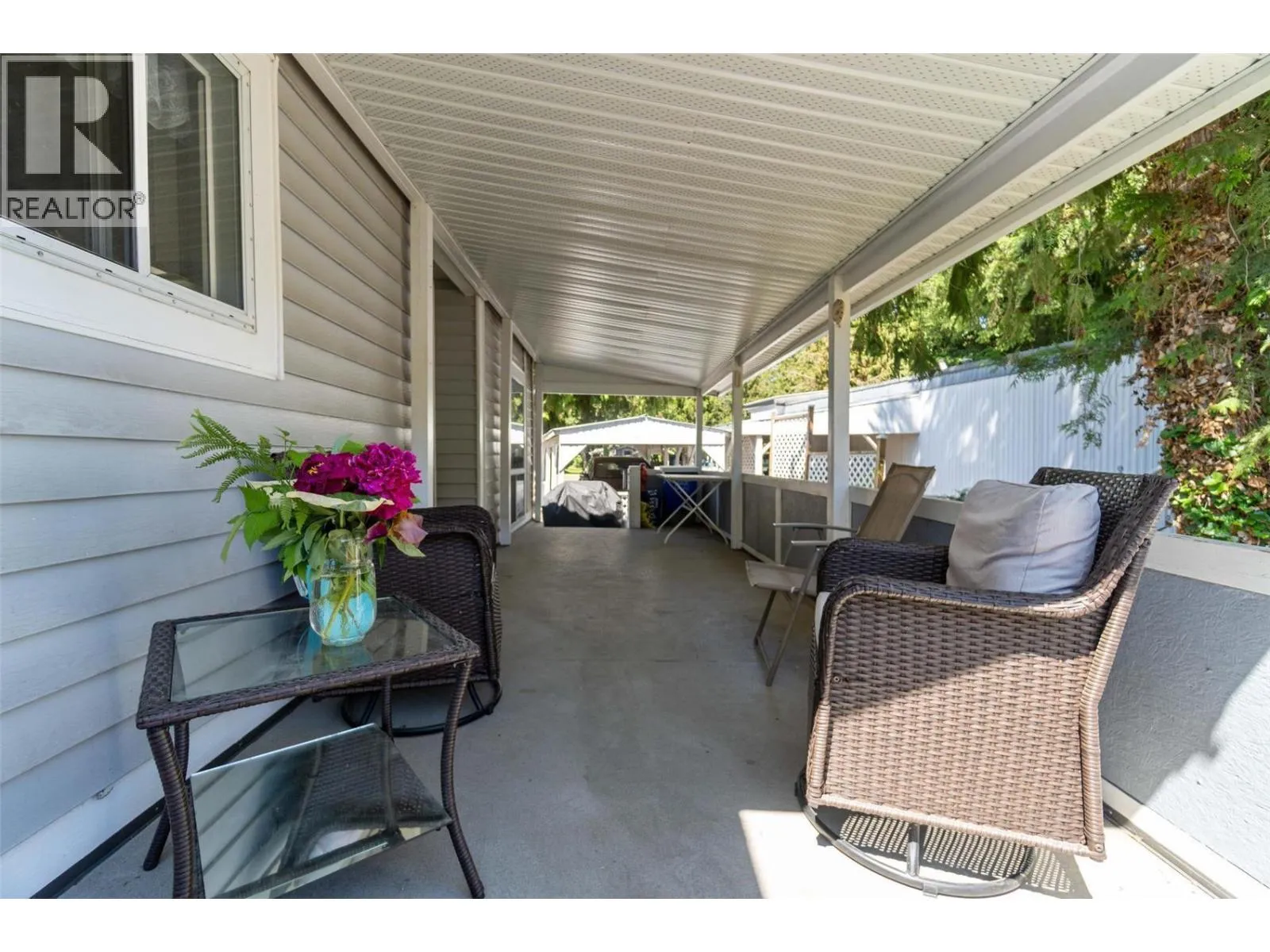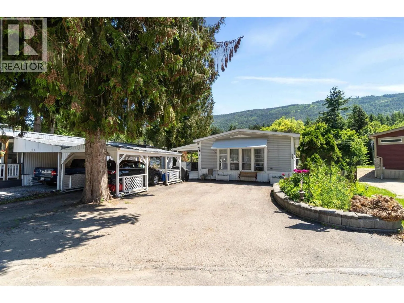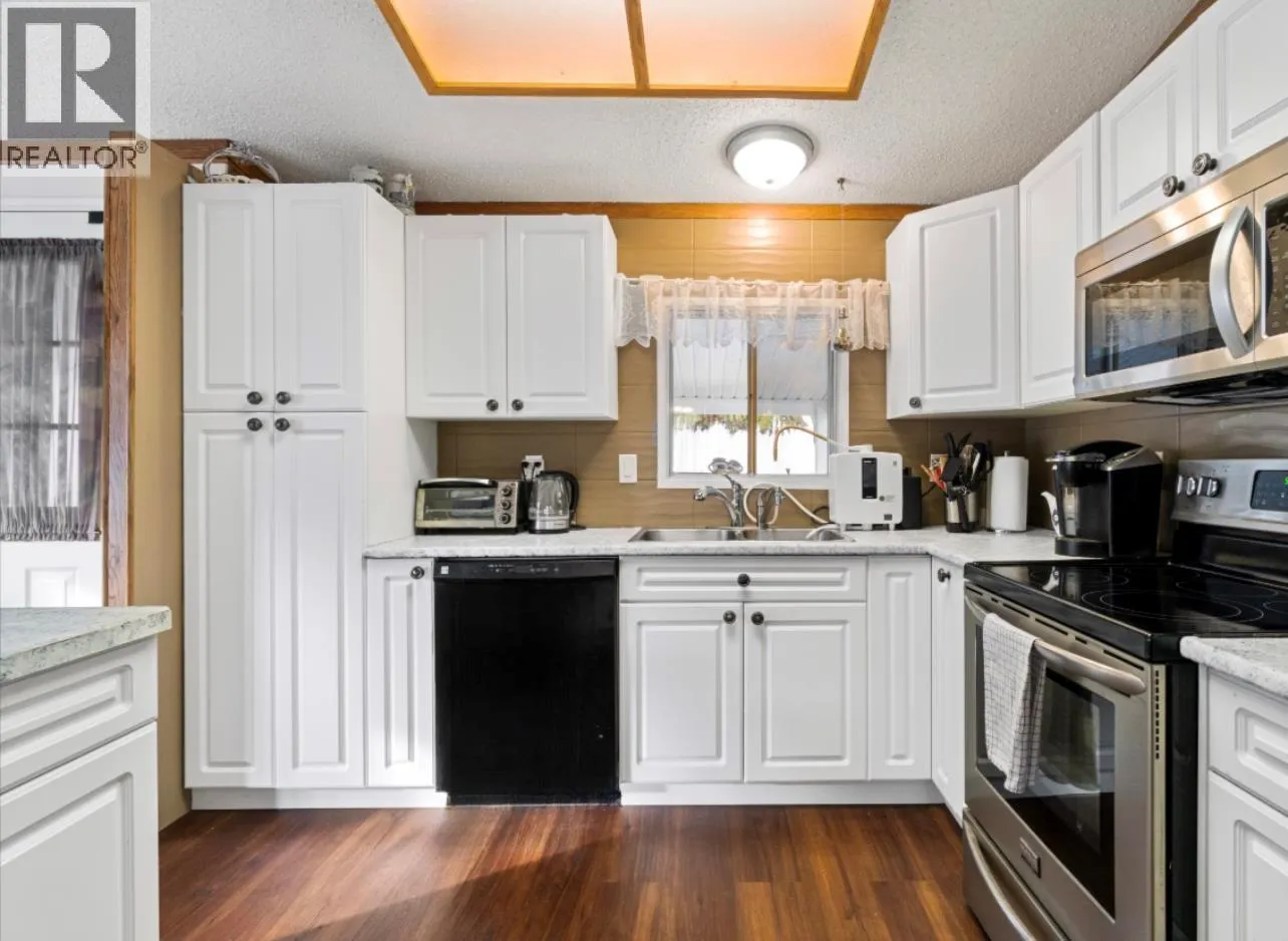 Welcome to Cedar Crescent Mobile Home Park â one of the areaâs most sought-after communities for retired and semi-retired living. This beautifully maintained 3 bedroom, 2 bathroom double-wide home truly has it all. Step inside to an inviting open floor plan featuring a spacious kitchen with a large island, stainless steel appliances, and brand new countertops. A separate dining area is perfect for hosting family or friends, while the sunken living roomâwith its floor-to-ceiling windowsâfloods the space with natural light. On cooler evenings, curl up beside the cozy electric fireplace and enjoy the warmth. The primary bedroom is a true retreat with a walk-in closet and a 4-piece ensuite featuring a relaxing soaker tub. Picture yourself unwinding here while listening to the gentle sounds of the nearby creek or gazing up at the stars through the skylight above. Two additional bedrooms and a convenient utility room with extra storage, washer/dryer, and a secondary exterior door complete the interior. Outside, youâll love the park-like setting with professional landscaping, great curb appeal, and plenty of space for entertaining. Enjoy morning coffee or an evening drink on the large covered deck. Other highlights include a carport, 8x10 storage shed, and extra parking. Just minutes to town, close to the beach, and steps from public transitâlife here is all about convenience and comfort. Cedar Crescent is a pet-friendly park (1 pet per household, max 16â with approval) exclusively for retired, semi-retired, or near-retirement residents. Life just got a whole lot easier. (id:27476)