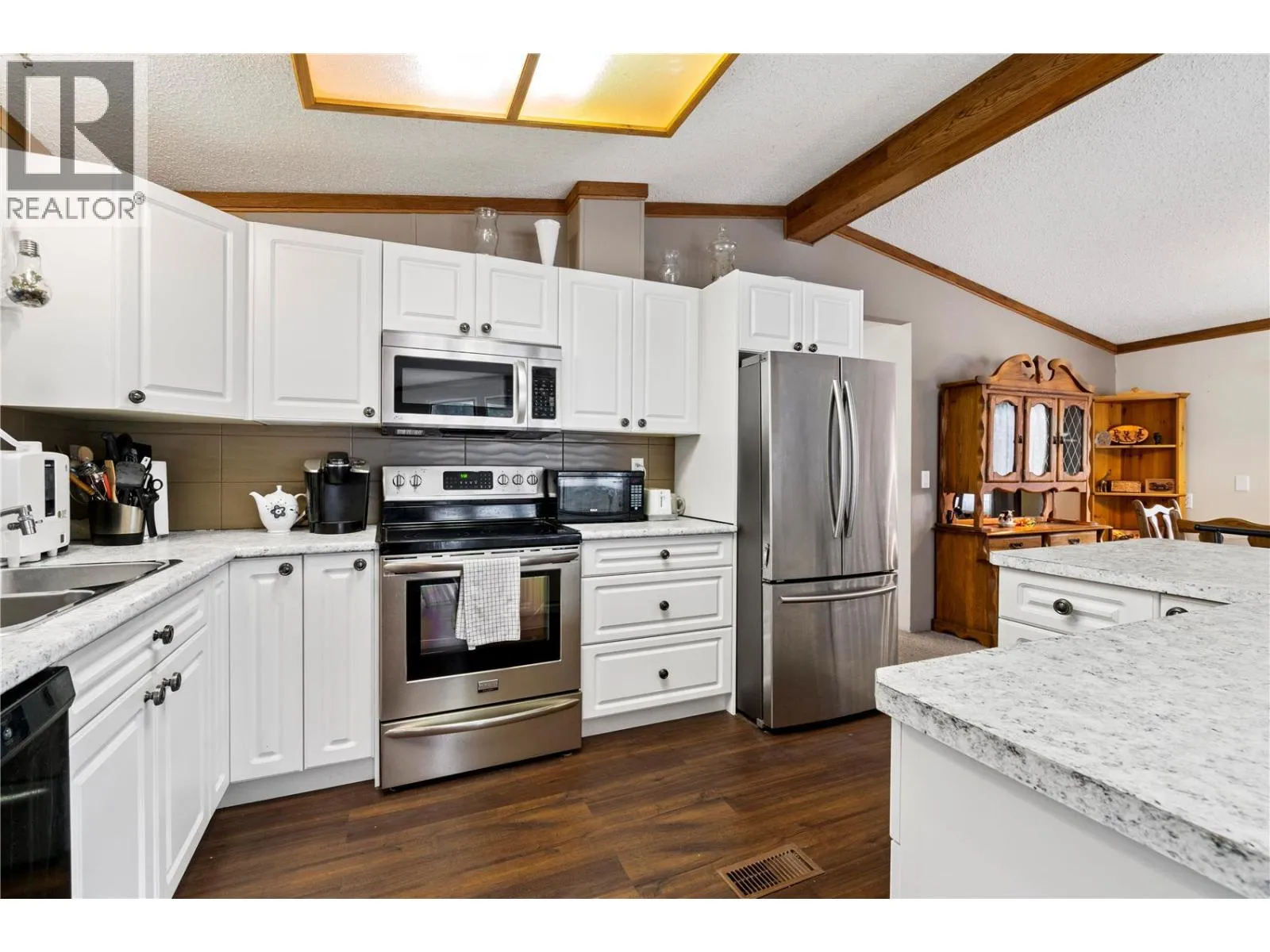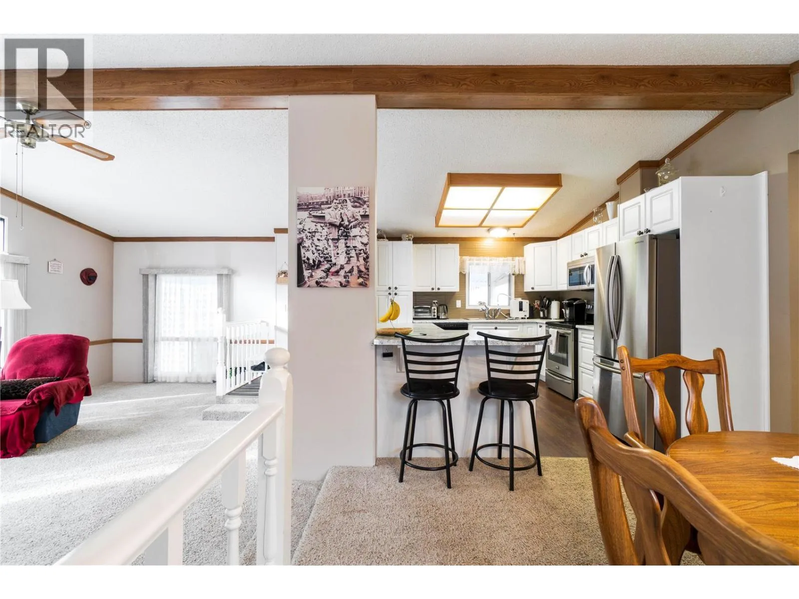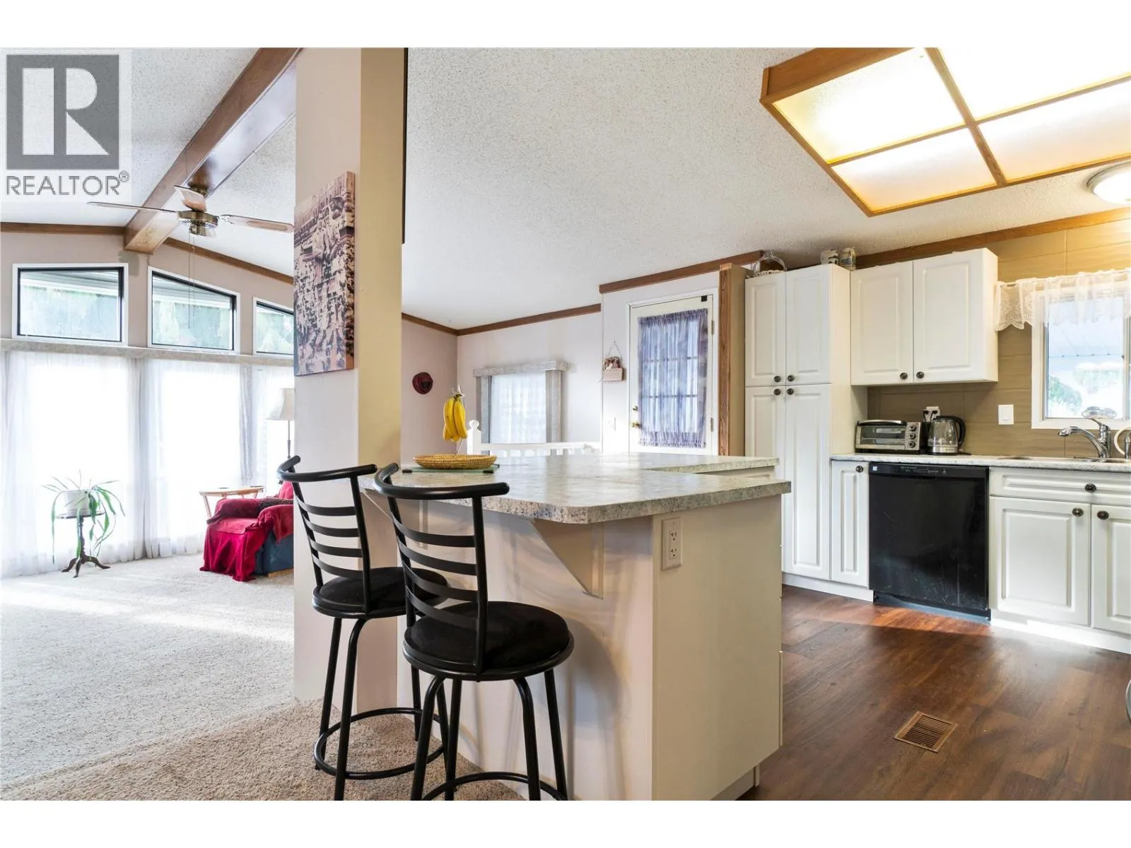 Welcome to Cedar Crescent Mobile Home Park â one of the areaâs most sought-after communities for retired and semi-retired living. This beautifully maintained 3 bedroom, 2 bathroom double-wide home truly has it all. Step inside to an inviting open floor plan featuring a spacious kitchen with a large island, stainless steel appliances, and brand new countertops. A separate dining area is perfect for hosting family or friends, while the sunken living roomâwith its floor-to-ceiling windowsâfloods the space with natural light. On cooler evenings, curl up beside the cozy electric fireplace and enjoy the warmth. The primary bedroom is a true retreat with a walk-in closet and a 4-piece ensuite featuring a relaxing soaker tub. Picture yourself unwinding here while listening to the gentle sounds of the nearby creek or gazing up at the stars through the skylight above. Two additional bedrooms and a convenient utility room with extra storage, washer/dryer, and a secondary exterior door complete the interior. Outside, youâll love the park-like setting with professional landscaping, great curb appeal, and plenty of space for entertaining. Enjoy morning coffee or an evening drink on the large covered deck. Other highlights include a carport, 8x10 storage shed, and extra parking. Just minutes to town, close to the beach, and steps from public transitâlife here is all about convenience and comfort. Cedar Crescent is a pet-friendly park (1 pet per household, max 16â with approval) exclusively for retired, semi-retired, or near-retirement residents. Life just got a whole lot easier. (id:27476)