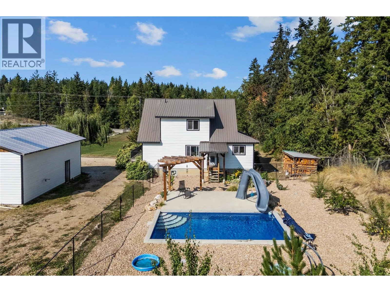 Welcome to your private retreat on 1.072 sun-drenched acresâperfect for families who love to play, entertain, and enjoy the outdoors. This 4-bedroom home features a built-in concrete tile swimming pool with a waterslide, surrounded by a wrap-around deck ideal for BBQs and relaxing in the sun. Inside, the bright and spacious family kitchen is designed for connection and comfort, while the four bedrooms offer plenty of room to grow. Grow your own food with fruit trees and blueberry bushes right in your backyard. The property also includes a 32x24x12 ft insulated shop with a brand-new garage doorâgreat for car enthusiasts, hobbyists, or home-based businesses. Need more storage? Thereâs a 32x12 ft covered RV/boat storage area, offering plenty of space for your toys or seasonal gear. Zoned for light industrial use, this property blends lifestyle and flexibilityâideal for those wanting space to work from home or explore creative projects. All of this just minutes from schools, downtown Salmon Arm, and beautiful Shuswap Lake. A rare combination of fun, function, and spaceâready for your next chapter! Additional perks include a cozy wood-burning fireplace, updated flooring throughout, a spacious mudroom/laundry area, and fully fenced yard for pets and kids. The property offers incredible sunset views and endless potential for gardening, recreation, or even a home-based business. Donât miss this unique opportunity to own a versatile acreage in one of BCâs most desirable communities! (id:27476)
