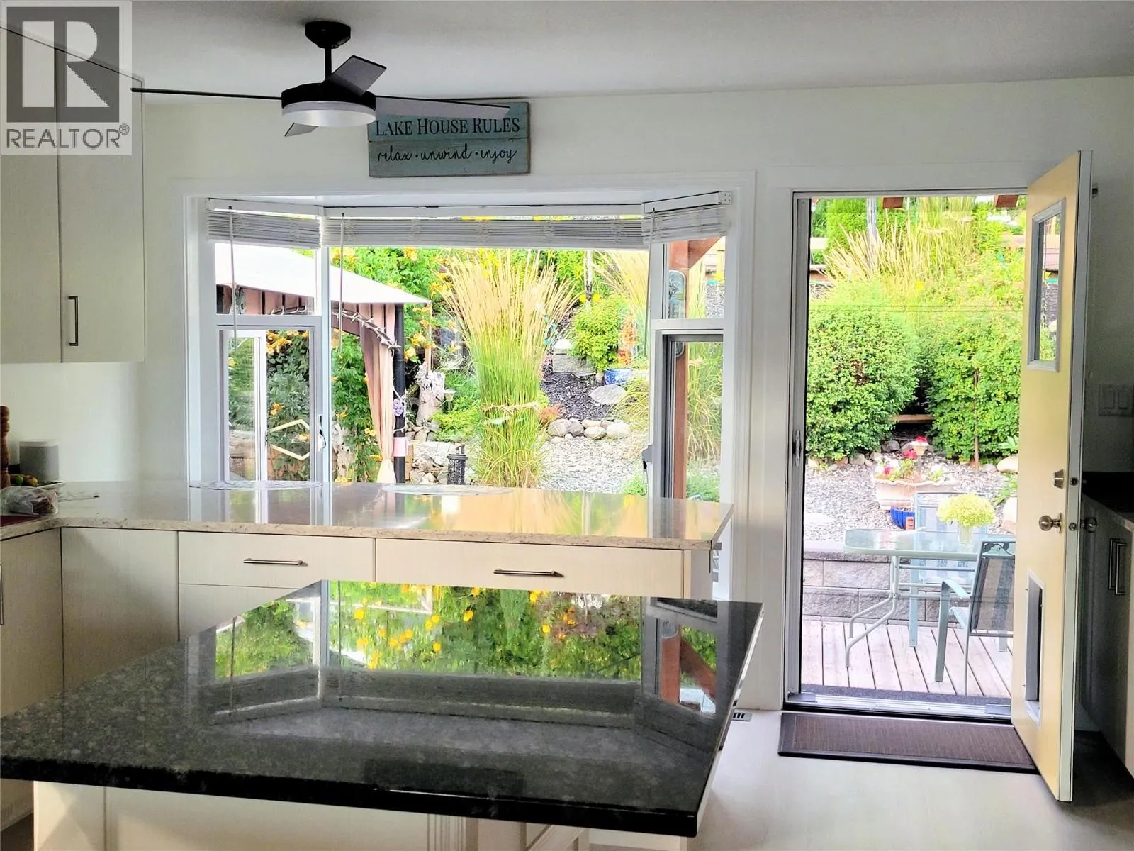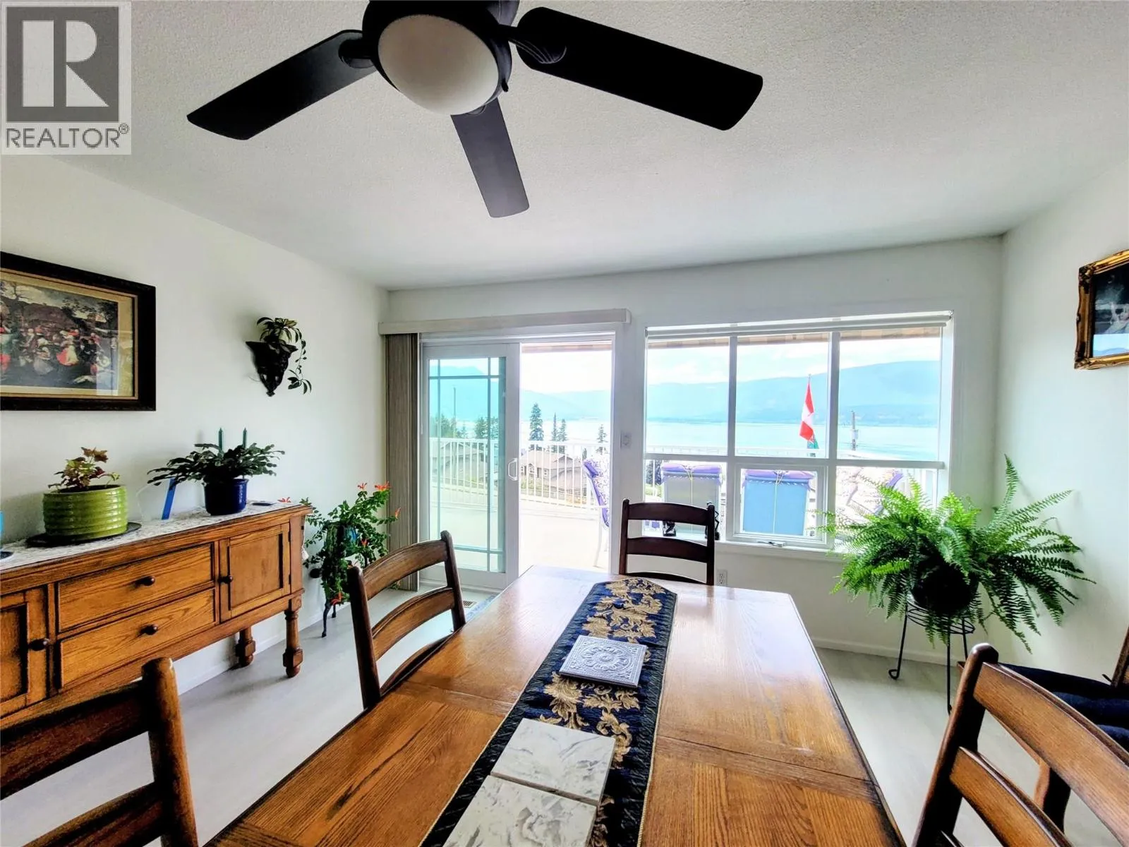 UPDATED 4 bedroom, 3 bath, O/S double garage, separate workshop, HUGE Lakeview. Back yard completely fenced. Room for RV/boat at the end of the house. Built in vac, top deck has motorized awning w/wind sensor. High efficiency gas furnace, central Air. New sealed glass units in every window, up & down. Main floor w/new renovations in the kitchen & dining room, incl: new gas fireplace & new floors. Large granite topped island in kitchen, counters are quartz in all 3 bathroom vanities. From the kitchen there are beautiful views of the lake & mountains out front, or the colorful landscaping in the yard to the back. Laundry room is near kitchen with closets. Primary bedroom also has the huge lake view & a glass shower ensuite & walk in closet. Main bathroom has a 1 pc fiberglass tub/shower. New plywood & vinyl on upper front deck, with new railing. Downstairs has a rec room & office/hobby room, both with lakeview, plus the 4th large bedroom, computer area & another updated bathroom with glass shower. Huge storage room with built in shelves. Garage has 2nd fridge built in. Rec room has patio doors out to the front lower deck. Back upstairs you step out to the back deck with multiple seating areas, bbq area, & a curved boardwalk to upper garden, raised beds & a garden shed plus seating area. Driveway done 2020, roof is 12 and has just had a $2000 treatment with a 5 yr transferable warranty against any recurring moss, hot water tank 2018, high efficiency furnace 2011. (id:27476)