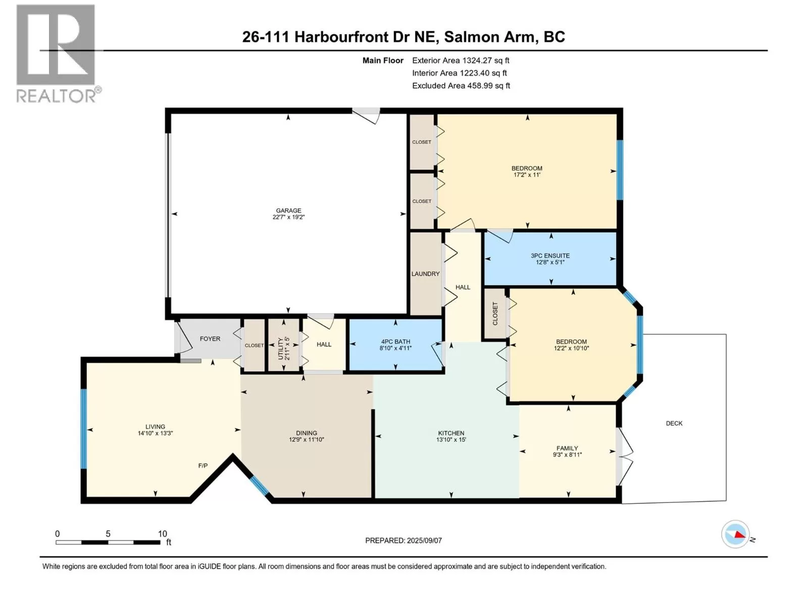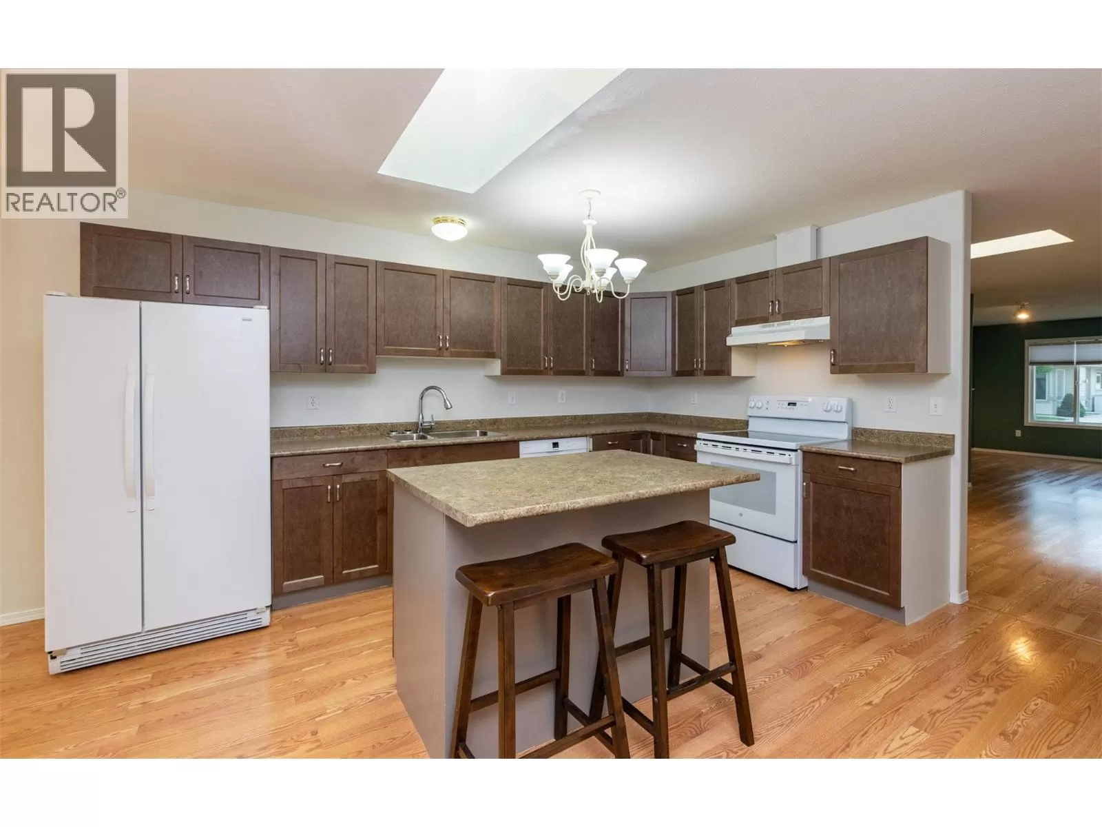 RARE OPPORTUNITY IN HERON VIEW - Spacious Detached Home w/ Double Garage in a highly sought-after 55+ strata development on the Salmon Arm Bay, within walking distance to waterfront trails, wharf, restaurants, pub, downtown shopping, farmer's market, and amenities. There is a lot to love about this 1324 sq ft home including the floorplan, easy access to visitor parking, pet policy (2 pets/no size restriction), 3 skylights for natural light. The home features a bright living room w/ gas fireplace angled to provide definition to the dining room (space for a dining suite), a good sized kitchen w/ island & eating bar, breakfast nook/family room with access to east-facing deck - enjoy your morning coffee in the sun and beverages/BBQ in the shade. French doors open to a bedroom or office/hobby/flex room w/ a large bay window. As you head down the hall you will find the 4 pc main bathroom, laundry, and a large primary bedroom with 3 pc ensuite (corner shower). The home has had many upgrades including Poly B replaced Aug 2025; new garage door Sept 2025; HWT 2024; AC & furnace 2020; fresh paint in most rooms; newer stove & fridge; Bosch d/w; built-in vac; handy utility sink in garage. Be sure to walk the beautifully landscaped grounds and check out the waterfront gazebo. Life is easy in this friendly community giving you the freedom to travel. Quick possession possible. Move-in ready. Book a showing today! (id:27476)