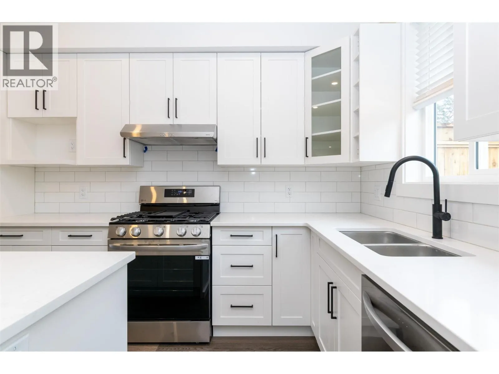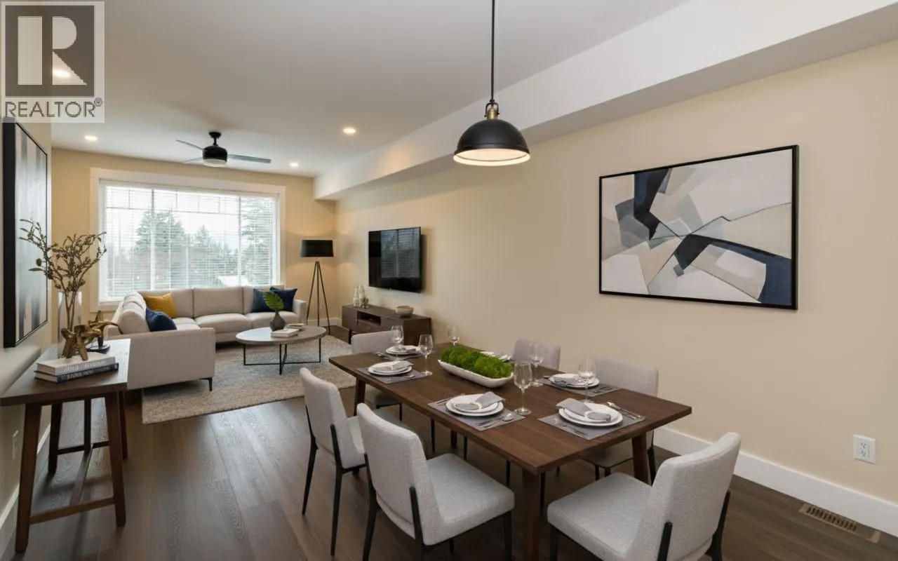 **DEVELOPER WILL PAY THE GST!** DRIVEWAYS with plenty of garage space welcome you at Hillside Terrace, where 1357 sq/ft of tastefully designed living space awaits. The open concept main level features plank flooring throughout, and contains the living room, dining area, powder bath, and kitchen with shaker-style cabinets, quartz counters, and an 8â sit-at island with spot for your beverage fridge. This level has a view out the front and walks out to your backyard which is privately fenced and includes artificial turf, patio space, and a small garden area to use as you wish; perhaps for vegeâs, flowers, or shrubs (low-maintenance yards keep the strata fees lower). The upper level, with plush carpeting, consists of the primary bedroom with ensuite, a 2nd bedroom, a den/office, and the main bathroom. If you want additional space you can ask for a custom sized flex space in the back of the garage, roughly calculated at 210 sq/ft and for an additional $3000. This is where you could have a media room, an office, he/she-cave, a storage room, or leave it open to accompany motor toys or a 2nd vehicle. Sound-proofed, gas heat, central air, window coverings, LG stainless fridge, gas range and dishwasher and a white Whirlpool stacker washer and dryer all included, making this exceptional value! Centrally located, to schools, recreation/events, shopping, restaurants, theatres, pet friendly. (id:27476)