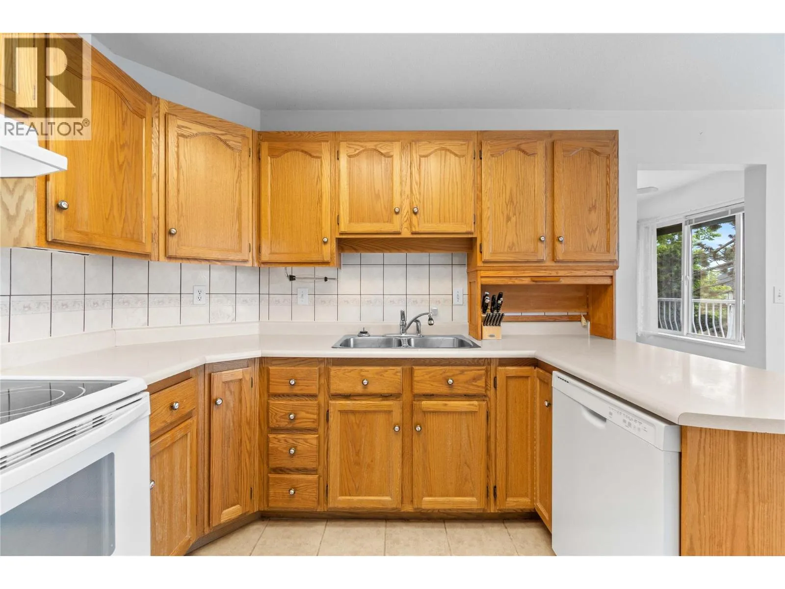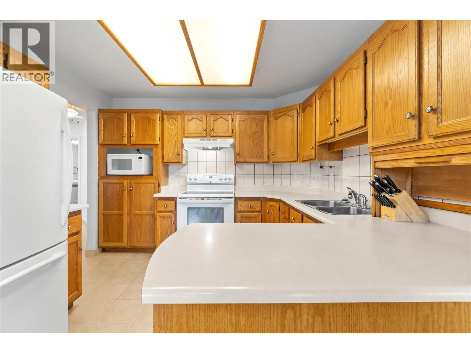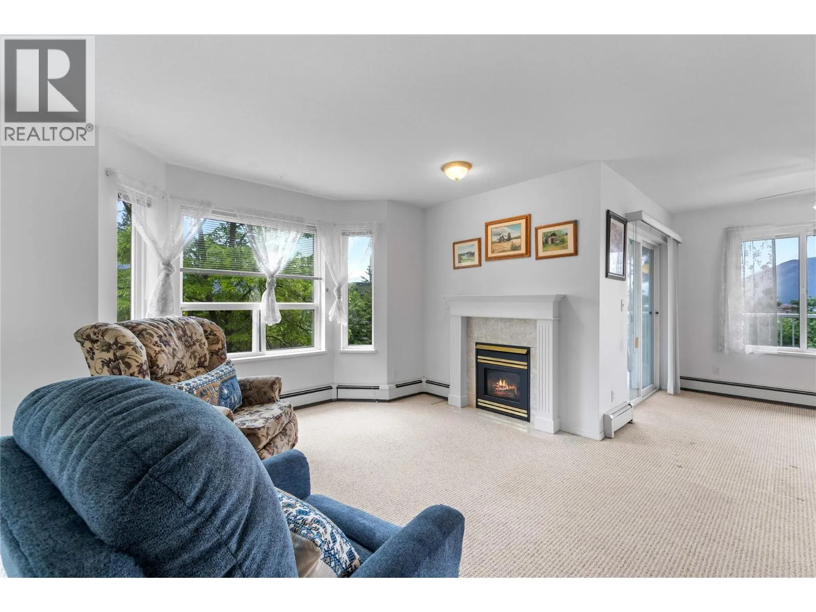 Highly Desirable 55+ Top Corner Unit w/ Lake Views â Welcome to McIntosh Grove, one of Southeast Salmon Armâs most sought-after 55+ communities. This spacious 2-bed, 2-bath top-floor corner unit offers 1,200+ sq.ft. of bright, comfortable living w/ captivating lake views from the kitchen, dining area & private patioâperfect for enjoying peaceful mornings or sunsets w/ your favourite drink. Inside, youâll love the thoughtful layout. The primary suite features a full ensuite w/ a double vanity, an accessible walk-in tub & a huge walk-in closet. A second bedroom is conveniently located on the opposite side of the unit for privacy, w/ its own 3-piece bathroomâideal for guests or family visits. The large kitchen boasts excellent cupboard space, & the living room is made cozy w/ a gas fireplace. This well-managed building is rich w/ amenities designed for an active & social lifestyle: RV parking, a common gathering room w/ kitchen & activity/game area, an exercise room, a workshop, a crafting area, a library nook, a storage locker (#314-II) & heated underground parking (Stall #41). Perfectly located, youâre within walking distance of downtown Salmon Armâs shops, restaurants & servicesâor just steps from public transit if needed. Heating is included, & quick possession is available. This home combines comfort, community & convenienceâw/ in a highly desirable location. Donât miss the opportunity to secure your spot at McIntosh Grove. Low strata Fees of 415/m. (id:27476)