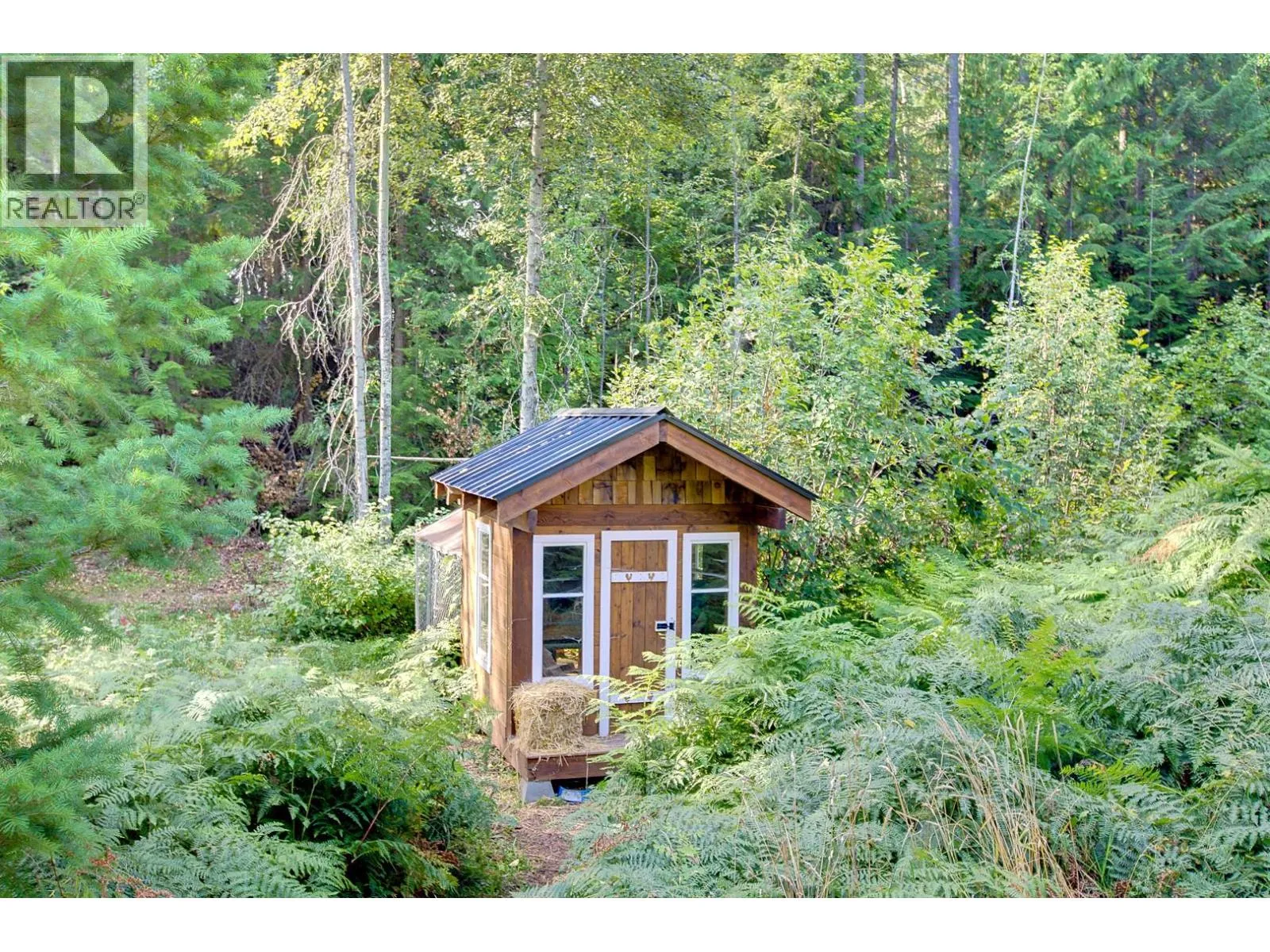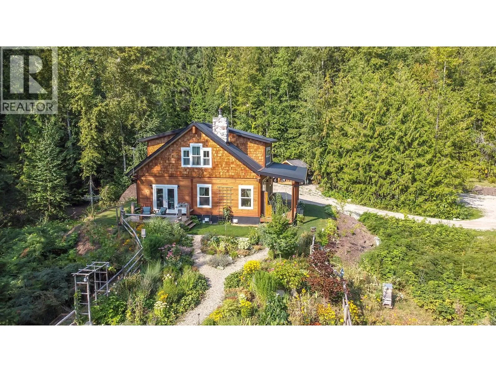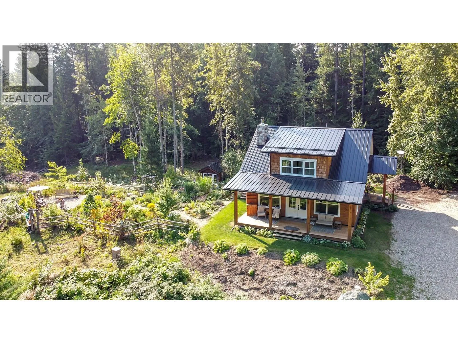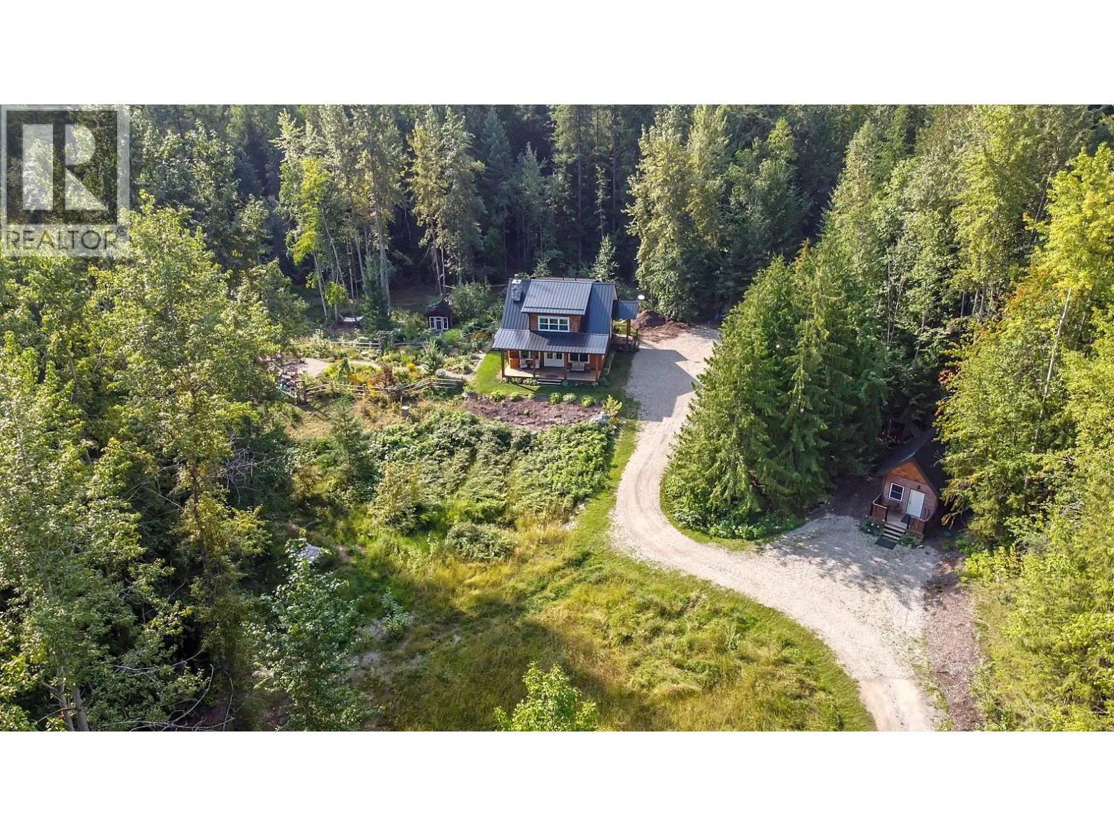 Tucked into the base of the Larch Hills, this magical 4-acre retreat feels like itâs been painted into the landscape. Winding garden paths & forest surround a 2021-built home that glows with natural woodwork & light, along with a picture-perfect ski/garden cottage tucked away for cozy apre ski stays. Two wells provide abundant waterâone for the flourishing gardens & another for the home & cottage. Inside, the kitchen forms the heart of the homeâbright, striking, & crafted with rich wood features. Upstairs, the primary suite is a serene escape, joined by a charming den, a generous second bedroom, & a spa-like bath complete with a classic clawfoot tub. The wide front porch offers privacy & quiet, where no neighboursâor even the guest cottageâare in sight. The partially finished lower level provides a cozy family room, workshop, & ample storage. Whether itâs evenings by the fire, tending gardens through summer, or retreating into the stillness of the forest, this property is a true sanctuaryâprivate, warm, & filled with character. Adding to the charm, is a quintessential chicken coop. A wood stove offers cozy warmth on winter evenings, complemented by the efficiency of a heat pump for year-round comfort. Practicality meets possibility with loads of parking & a flat, open area ideal for a future garage or shop. Every detail speaks to the pride & care with which it was built. Measurements care of iGuide & should be verified by a buyer, along with all information in the listing. (id:27476)