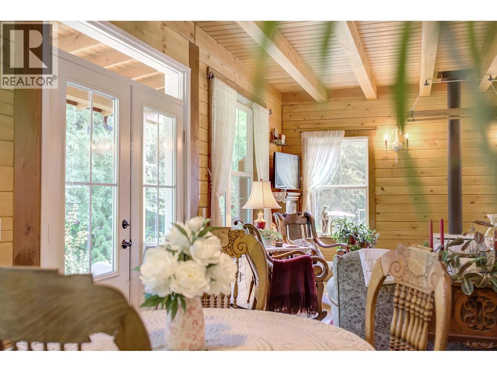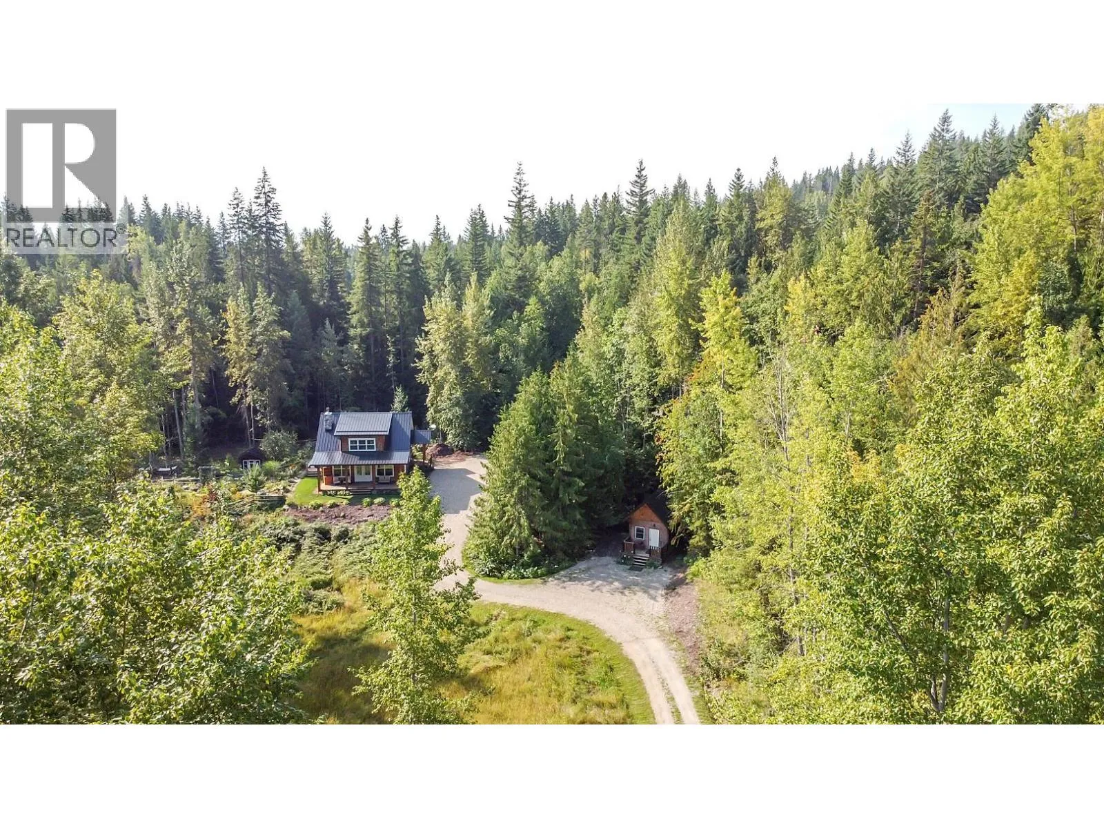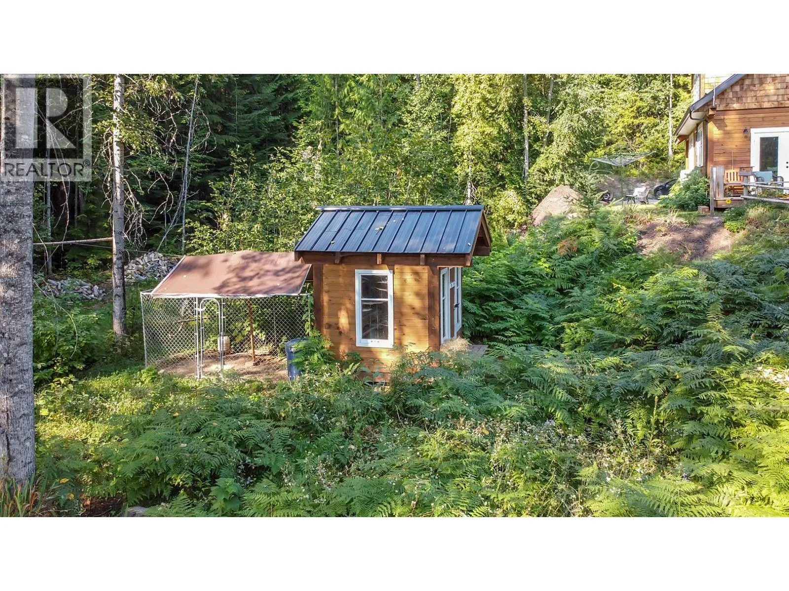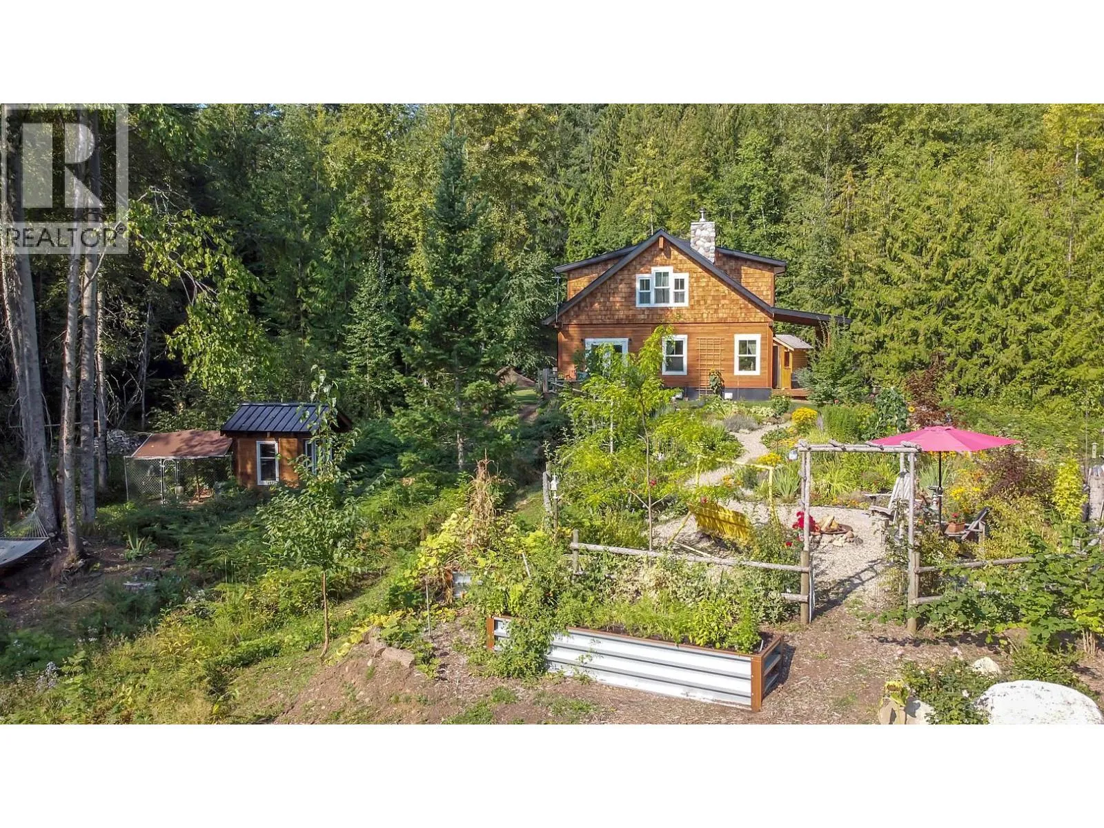 Tucked into the base of the Larch Hills, this magical 4-acre retreat feels like itâs been painted into the landscape. Winding garden paths & forest surround a 2021-built home that glows with natural woodwork & light, along with a picture-perfect ski/garden cottage tucked away for cozy apre ski stays. Two wells provide abundant waterâone for the flourishing gardens & another for the home & cottage. Inside, the kitchen forms the heart of the homeâbright, striking, & crafted with rich wood features. Upstairs, the primary suite is a serene escape, joined by a charming den, a generous second bedroom, & a spa-like bath complete with a classic clawfoot tub. The wide front porch offers privacy & quiet, where no neighboursâor even the guest cottageâare in sight. The partially finished lower level provides a cozy family room, workshop, & ample storage. Whether itâs evenings by the fire, tending gardens through summer, or retreating into the stillness of the forest, this property is a true sanctuaryâprivate, warm, & filled with character. Adding to the charm, is a quintessential chicken coop. A wood stove offers cozy warmth on winter evenings, complemented by the efficiency of a heat pump for year-round comfort. Practicality meets possibility with loads of parking & a flat, open area ideal for a future garage or shop. Every detail speaks to the pride & care with which it was built. Measurements care of iGuide & should be verified by a buyer, along with all information in the listing. (id:27476)