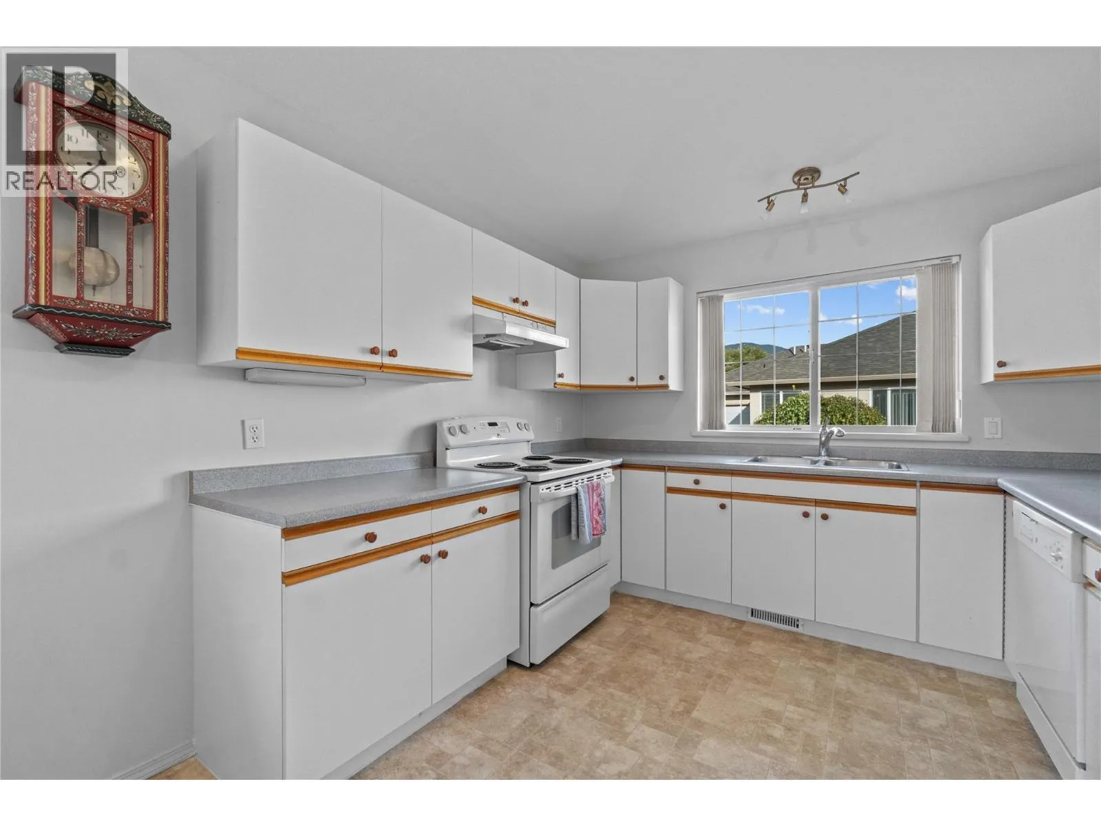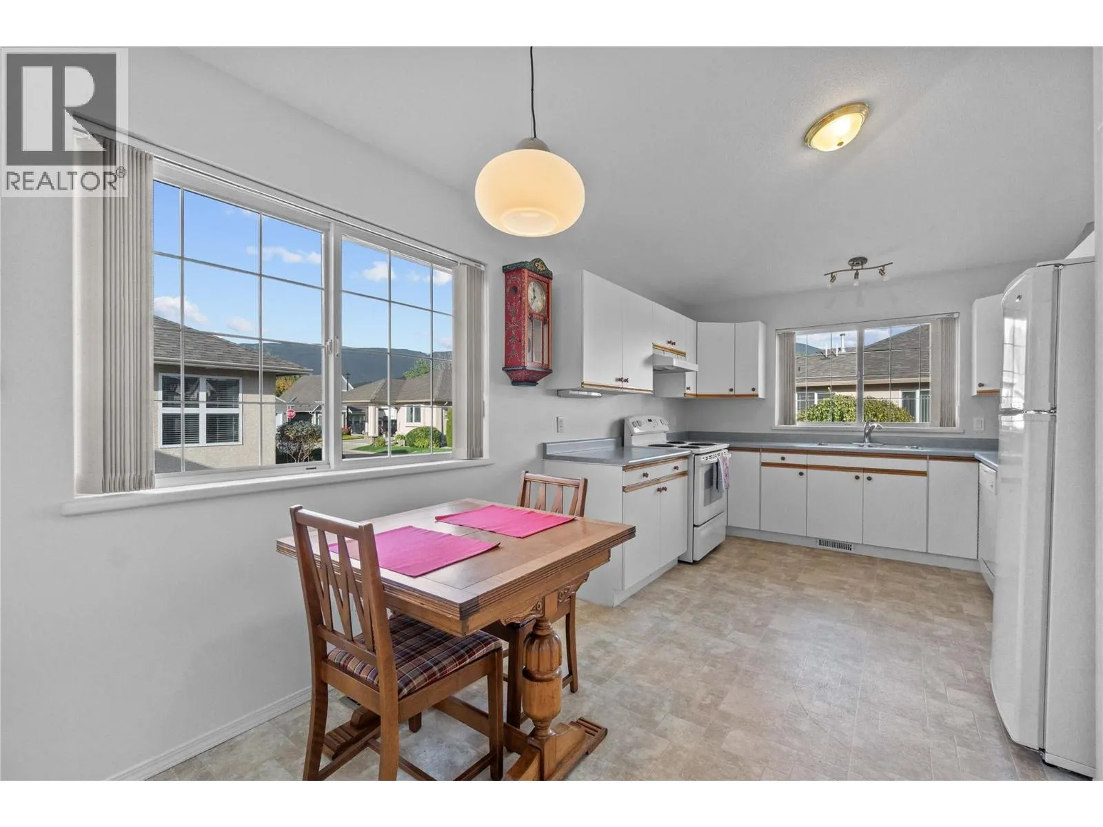 55+ COMMUNITY | DETACHED HOME | LEVEL ENTRY Excellent value with a 2025 BC Assessment of $561,000. This move-in ready home offers quick possession and an easy lifestyle in a well-kept bare-land strata community near the lakeshore. The complex features just 12 detached bungalows, so you own your lot while enjoying low-maintenance livingâstrata fees are only $190/month and include groundskeeping. The location is idealâflat streets, a newly completed underpass, and easy walking access to the harbourfront and downtown Salmon Arm shops and cafes. Inside, youâll find 1,245 sq. ft. of bright, comfortable living space with 2 bedrooms and 2 bathrooms. The kitchen is spacious and functional with plenty of cupboard and counter space, vaulted ceilings, large windows, and skylights that fill the home with natural light. The cozy gas fireplace, built-in vacuum, and updates including a newer roof, furnace, and central A/C make this home move-in ready.Thereâs an attached single garage with an automatic door and small workshop area, plus an additional paved parking space. The sunny back deck includes a retractable awning and can be accessed from the living area or garageâperfect for morning coffee or afternoon relaxation. Two pets are welcome with no height restrictions. This home is a wonderful option for downsizers or anyone seeking easy, independent living close to town and the water. (id:27476)