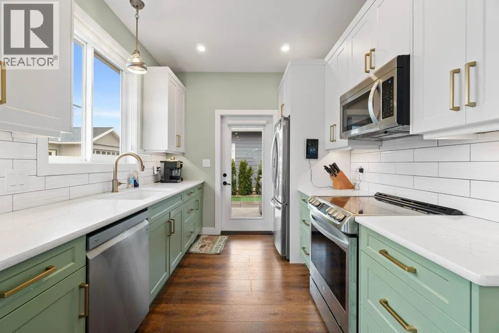 Welcome to Valley Lane â a highly desirable 55+ community within easy walking distance to Piccadilly Mall and everyday conveniences. This 2022 custom-built home is in like-new condition and thoughtfully designed for those looking to downsize without sacrificing comfort, style, or room for family and guests. The open-concept layout showcases a modern kitchen with quartz countertops, stainless steel appliances, and seamless flow into the dining and living areas. On the main floor, youâll find two well-appointed bedrooms, including a spacious primary suite with a beautiful ensuite featuring a walk-in shower. An additional three-piece bathroom completes the main level with both elegance and functionality. Above the garage, a versatile loft/bonus room offers endless possibilitiesâperfect as a guest suite, hobby space, home office, or a cozy retreat for visiting loved onesâwith the convenience of its own powder room. Outdoors, enjoy a covered patio ideal for year-round barbecuing and a private, low-maintenance fenced yard. A double garage and ample crawl-space storage add practicality, while the balance of the Home Warranty provides peace of mind. At Valley Lane, youâll discover the perfect blend of low-maintenance living, welcoming community, and a home designed to make it easy to host and enjoy family and friends, all within a low cost Bareland strata. (id:27476)