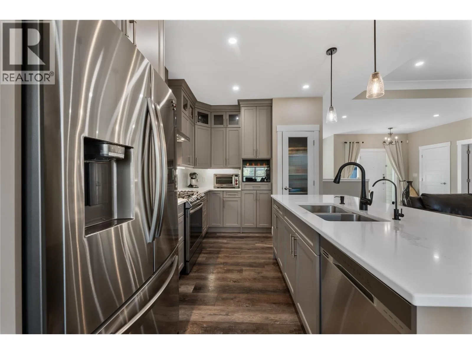 NO GST, SHOWS LIKE NEW!! Located in the desirable and exclusive North Broadview area, offers a perfect blend of elegance, comfort, and everyday practicality, with meticulous attention to detail evident inside and out. The bright and inviting kitchen features quartz countertops, stainless steel appliances, and a gas range that will impress any home chef, while the seamless flow into the living and dining areas makes it ideal for entertaining, relaxing with family, and enjoying the views. The living room is enhanced by a tray ceiling, cozy gas fireplace, and large picture windows creating warmth throughout. The primary suite is a true retreat, complete with a spacious walk in closet, a second closet, and a luxurious ensuite bathroom featuring a soaker tub, walk in shower, and double vanity. Everyday convenience is built into the design with a large main floor laundry room and a mudroom located directly off the garage. The main home is complete with 3 other bedrooms. Outside, a covered deck offers breathtaking views of Shuswap Lake and Mt. Ida, with a gas BBQ hookup making summer dining effortless. The backyard is fully fenced, with lush landscaping, and underground irrigation, creating a true retreat right at home. A legal, vacant one bedroom suite with its own entrance and laundry provides excellent flexibility, whether for extended family, guests, or as a rental income opportunity, the suite has been finished with the same quality and standards as the main home. This home contains an extensive list of thoughtful upgrades. Additional highlights include an oversized double garage for vehicles, tools, and gear, a flat driveway with extra paved parking that easily accommodates guests, trailers, or RVs. Nestled in the peaceful North Broadview neighbourhood, this home combines a quiet, private setting on a no thru street, with the convenience of being just minutes from all the amenities of Salmon Arm, offering the perfect balance of luxury, lifestyle, and functionality. (id:27476)
