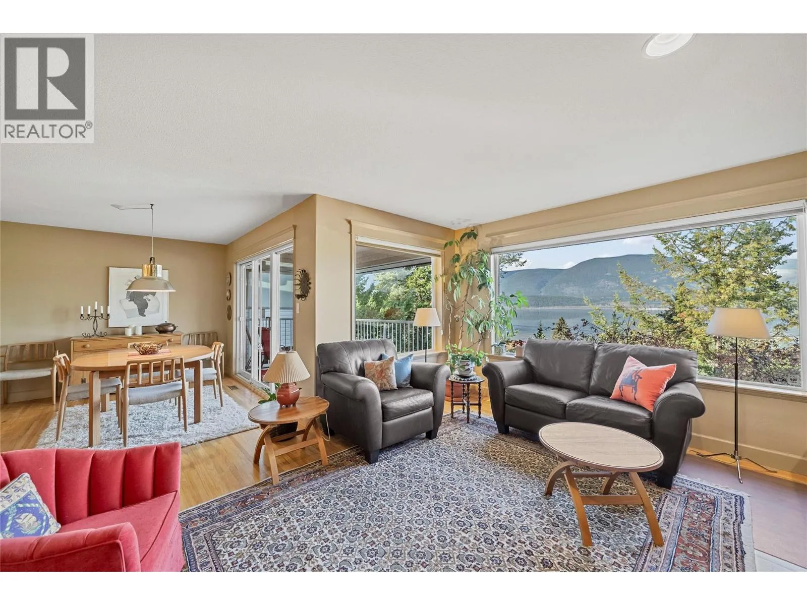 A WELCOME CHANGE⦠Say goodbye to yard work and hello to easy, elevated living in this beautifully maintained 3-bedroom rancher with walk-out basement in the sought-after Lakeview Terrace 55+ community. Enjoy breathtaking lake and mountain views the moment you step inside. The bright, open-concept main floor offers effortless living, with a stylish kitchen featuring a spacious island with custom fir breakfast bar, large pantry, and seamless flow to the dining area and covered view deckâcomplete with privacy glass and sunshade for peaceful mornings or sunset dinners. The living room is warm and inviting with a gas fireplace and custom built-ins. The spacious primary bedroom includes lovely views, custom closets, and an ensuite with soaker jet tub and separate shower. A generous foyer, 2-piece guest bath, full laundry room, and well-designed mudroom with access to the double garage round out the main floor. The sun-filled lower level is ideal for guests or entertaining, with two bedrooms, a full bath, large family room with second gas fireplace, abundant storage, and a covered deck to take in the scenery. Low maintenance, move-in ready, and designed for easy livingâthis is the lifestyle youâve been waiting for. Strata fees $100/month. (id:27476)