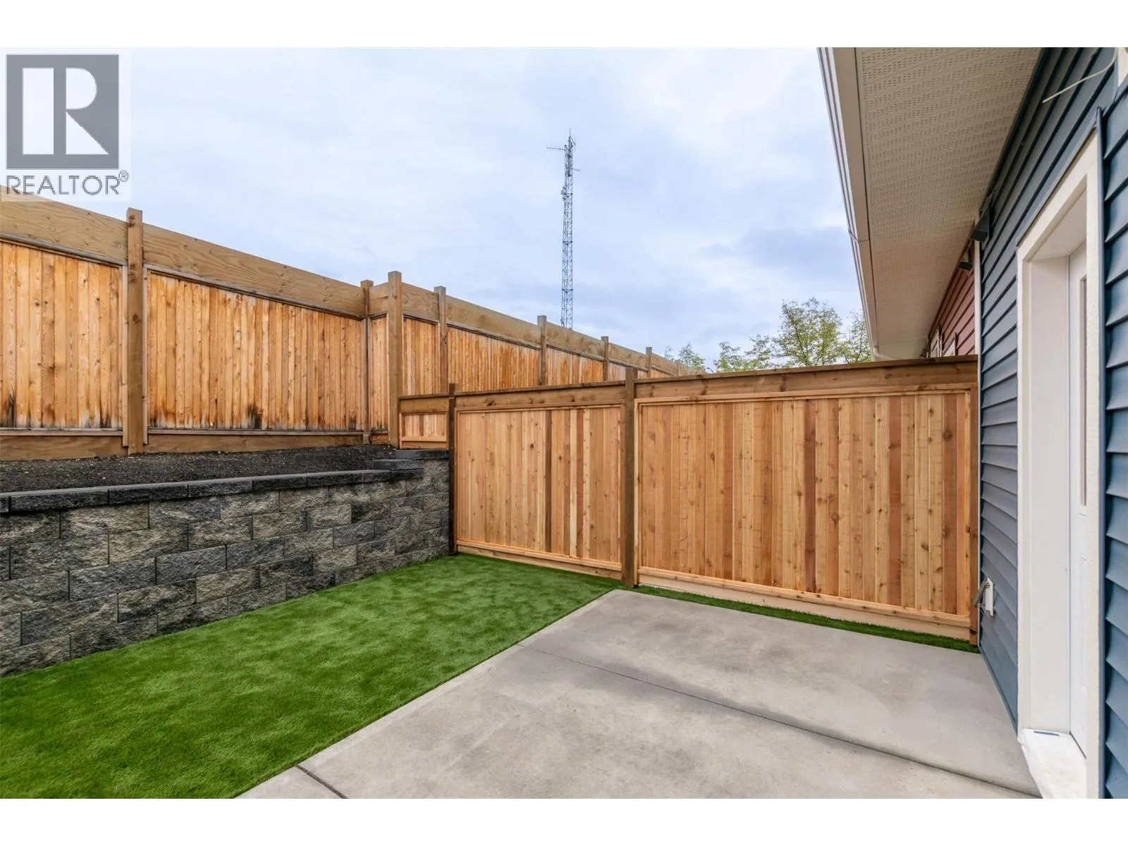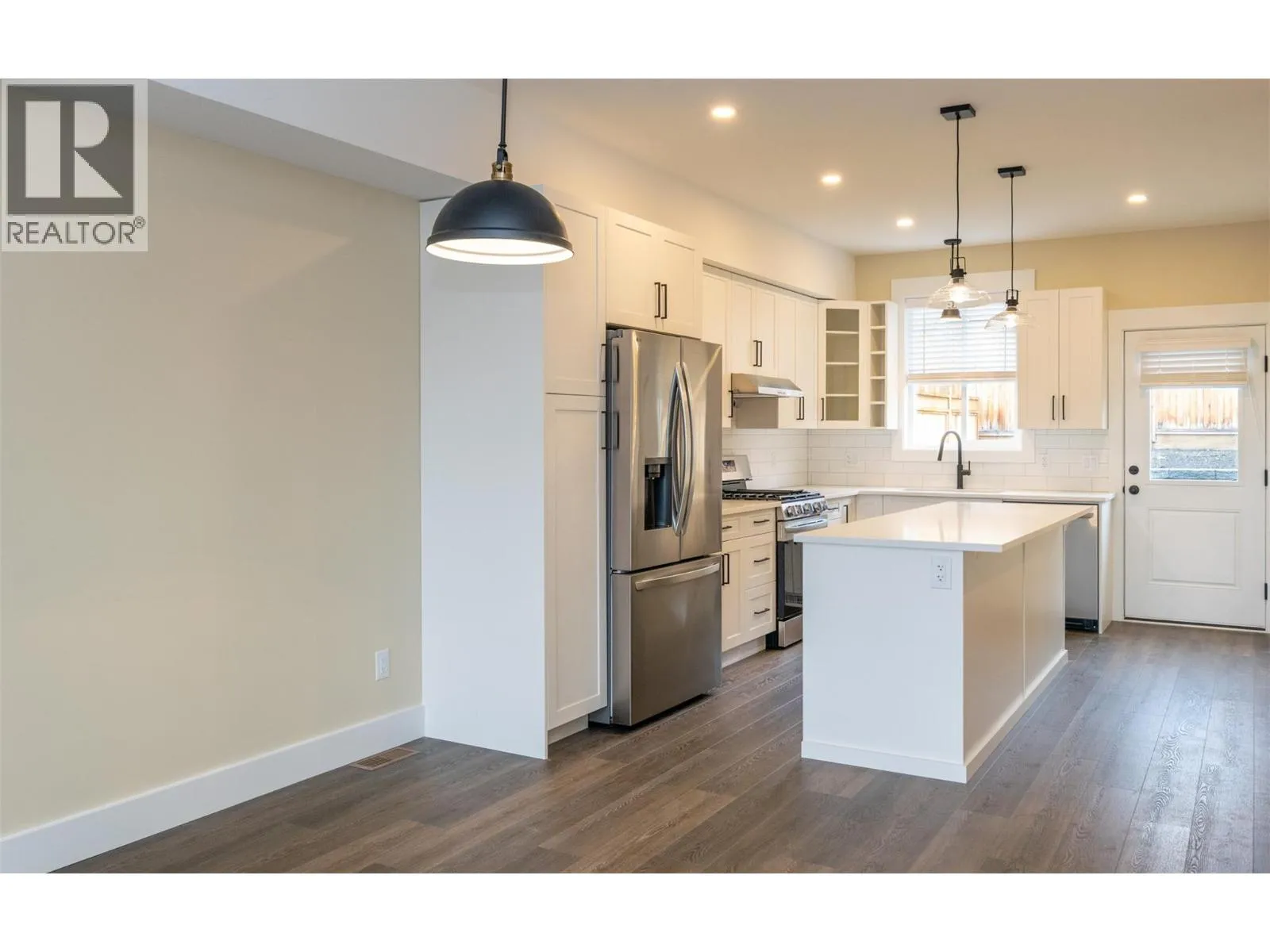 Welcome to Hillside Terrace, a neighbourhood of townhomes, with unit #5 offering 1567 sq/ft of tastefully designed living space, complemented by driveway parking and plenty of garage space. The open concept main level features plank flooring throughout, and contains the living room (w/gas fireplace), dining area, powder room, and kitchen with shaker-style cabinets, quartz counters, and an 8â sit-at island with a spot for your beverage fridge. Just off the kitchen, enjoy views of the lake, mountains and the city lights from your 15'x6' deck-a great spot for your BBQ and some chairs to relax. Upstairs, the plush carpeting introduces the primary bedroom with an ensuite, a second and third bedroom, and the main bathroom. On the lower level you can step out to your backyard which is privately fenced and includes artificial turf and patio space (Low maintenance=low strata fees). For additional space, you have a flex-room that awaits your plan: This is where you could have a media room, an office, he/she-cave, a storage room, or leave it open to accompany motor toys or a 2nd vehicle, and save $4000. Sound-proofed, gas heat, central air, window coverings, LG stainless fridge, gas range and dishwasher and a white Whirlpool stacker washer and dryer all included for exceptional value! Centrally located, to schools, recreation/events, shopping, restaurants, theatres, pet friendly. Purchase early to pick out some of your finish colours, like light fixtures & interior paint colour. (id:27476)