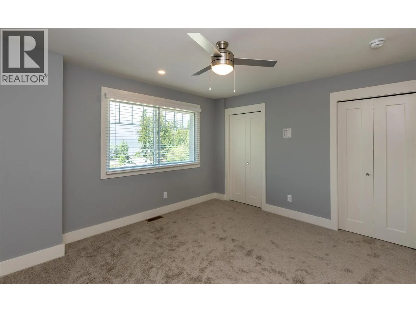 Welcome to Hillside Terrace, a neighbourhood of townhomes, with unit #1 offering 1628 sq/ft of tastefully designed living space, complemented by 2 car driveway parking and plenty of garage space. The open concept main level features plank flooring throughout, and contains the living room (w/gas fireplace), dining area, powder room, and kitchen with shaker-style cabinets, quartz counters, and an 8â sit-at island with a spot for your beverage fridge. Just off the kitchen, enjoy views of the lake, mountains and the city lights from your 15'x6' deck-a great spot for your BBQ and some chairs to relax. Upstairs, the plush carpeting introduces the primary bedroom with an ensuite, a second and third bedroom, and the main bathroom. On the lower level you can step out to your backyard which is privately fenced and includes artificial turf and patio space (Low maintenance=low strata fees). For additional space, you have a flex-room that awaits your plan: This is where you could have a media room, an office, he/she-cave, a storage room, or leave it open to accompany motor toys or a 2nd vehicle, and save $4000. Sound-proofed, gas heat, central air, window coverings, LG stainless fridge, gas range and dishwasher and a white Whirlpool stacker washer and dryer all included for exceptional value! Centrally located, to schools, recreation/events, shopping, restaurants, theatres, pet friendly. Purchase early to pick out some of your finish colours, like light fixtures & interior paint colour. (id:27476)