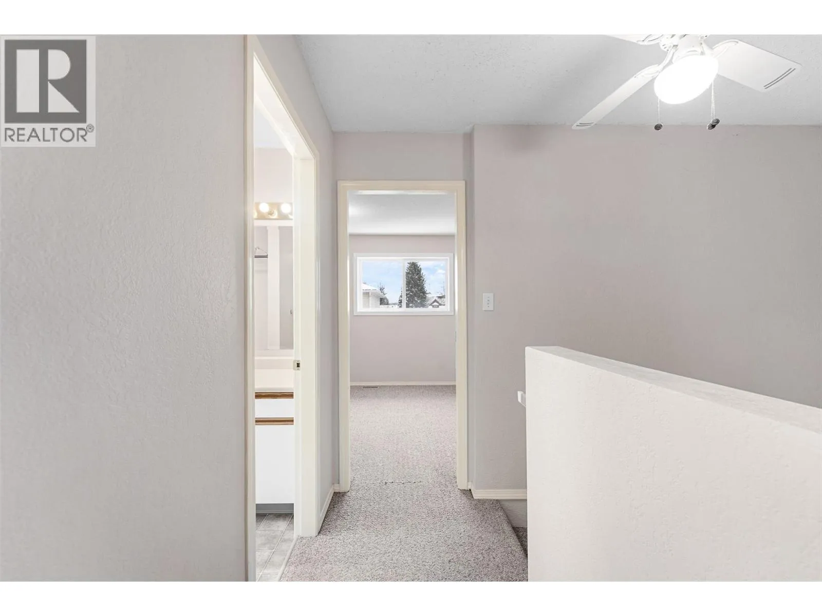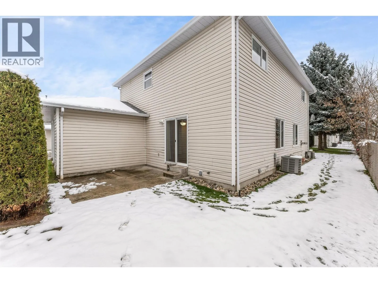 Welcome to this bright, well-kept 2-bedroom, 2-bathroom townhome set in one of Salmon Armâs most walkable neighbourhoods just moments from shopping, parks, and recreation. The main level features a light-filled living area with views of the backyard, an open dining space with patio access, and a functional kitchen with ample storage, soft white cabinetry, and a full appliance package. A convenient powder room with laundry, an exterior storage room, and a crawl space add everyday practicality. Upstairs, the primary bedroom offers mountain views, a double closet with built-ins, and a 4-piece ensuite. The second spacious bedroom also features a built-in closet and scenic views, ideal for guests or a home office. With only one common wall, central air, gas furnace, central vac/SMART features, a single carport, and nearby guest parking, this home offers low-maintenance comfort in a quiet, well-managed community. Fenced grounds, mature landscaping, and a private patio complete this inviting Salmon Arm opportunity. The seller is offering a $2,000 credit toward replacing the main-floor carpeting. (id:27476)