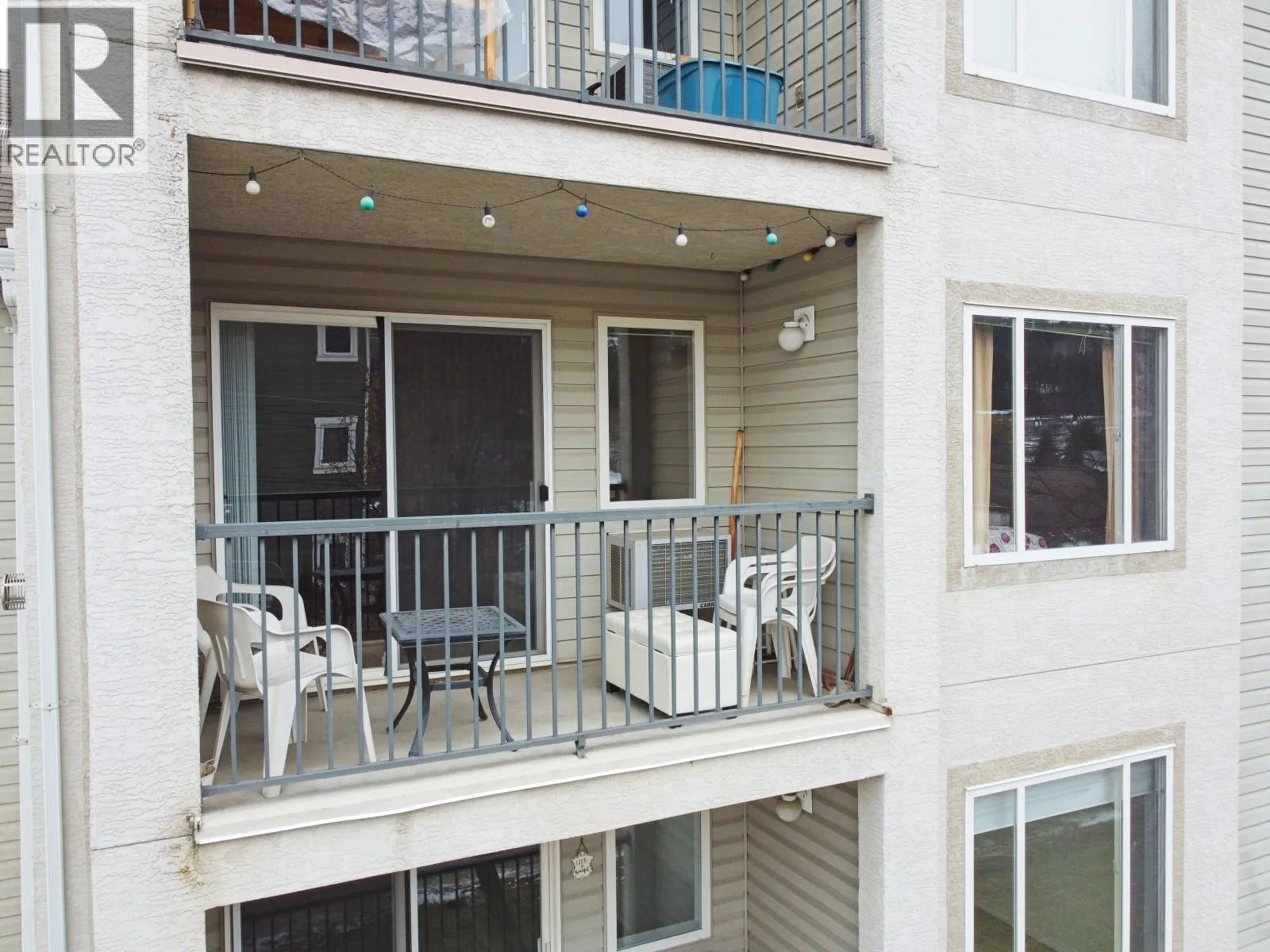 Check out this spacious 3rd floor corner unit apartment, with 2 bedrooms, and 2 full bathrooms, and in unit laundry, centrally located in Salmon Arm. Close to downtown, shopping, and parks, with easy access to public transit. Sit out on your private southwest facing deck and enjoy the sunsets looking out over the fair grounds, city and the mountains views in the distance. For those extra hot days there is a wall air conditioning unit to keep you cool, and for the cooler nights relax in front of the cozy natural gas fireplace to warm your bones. The complex offers covered assigned parking (presently #46) to protect your vehicle from the elements and an assigned storage locker for additional seasonal item you may want to put away. This could be your future home! Quick possession is available. (id:27476)