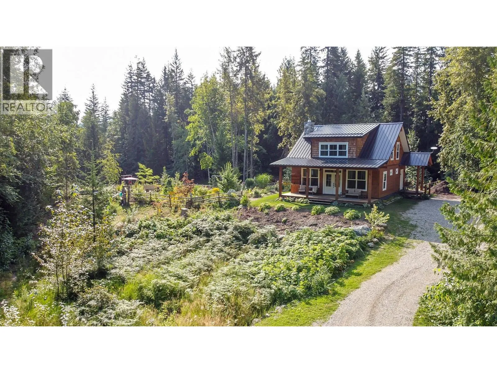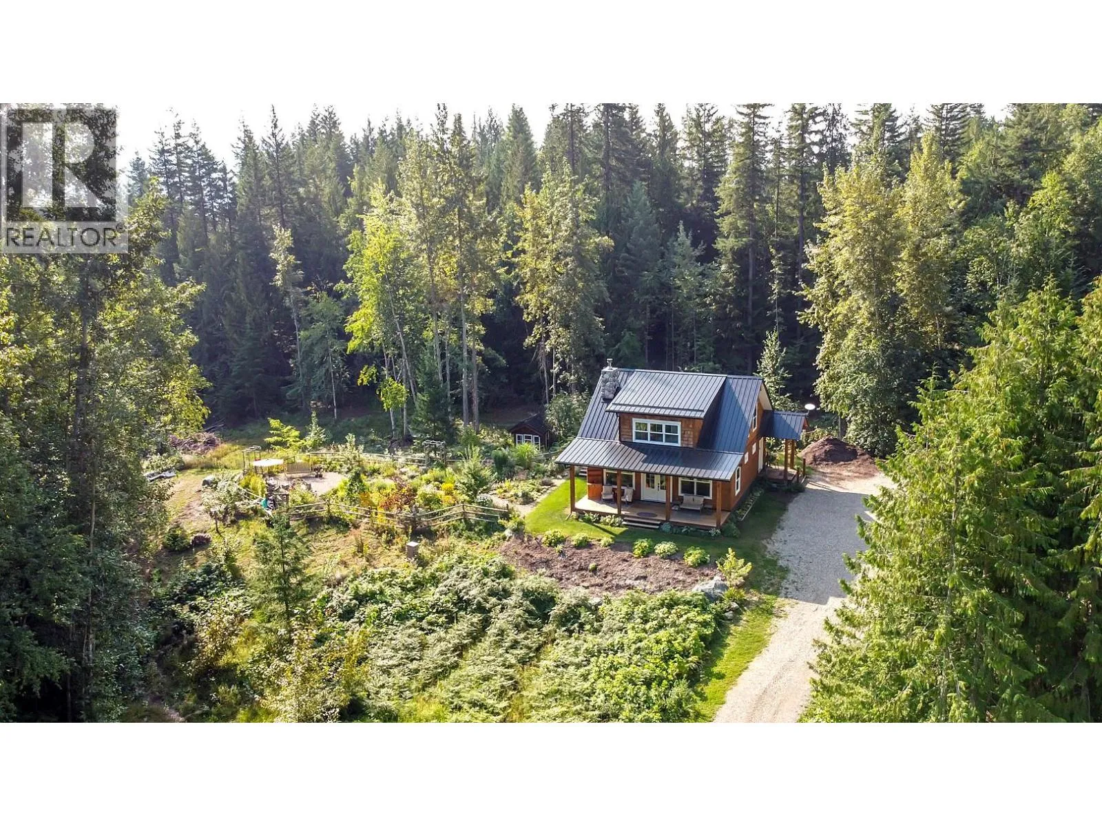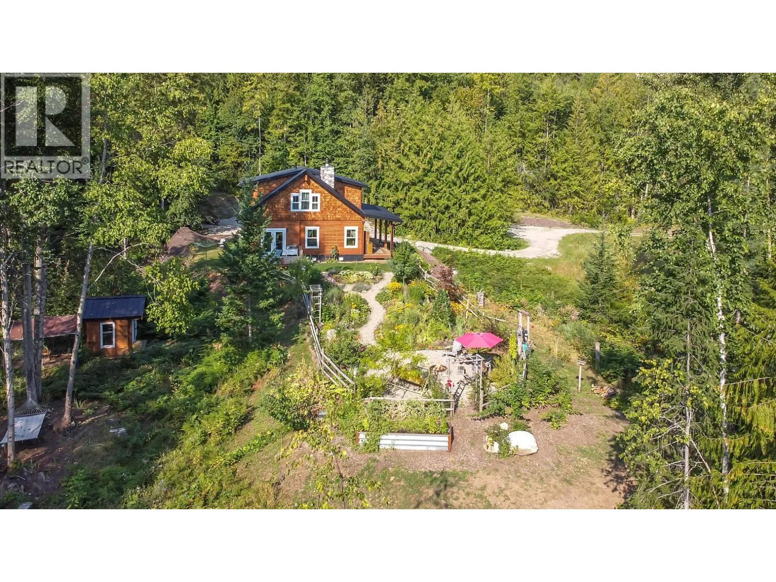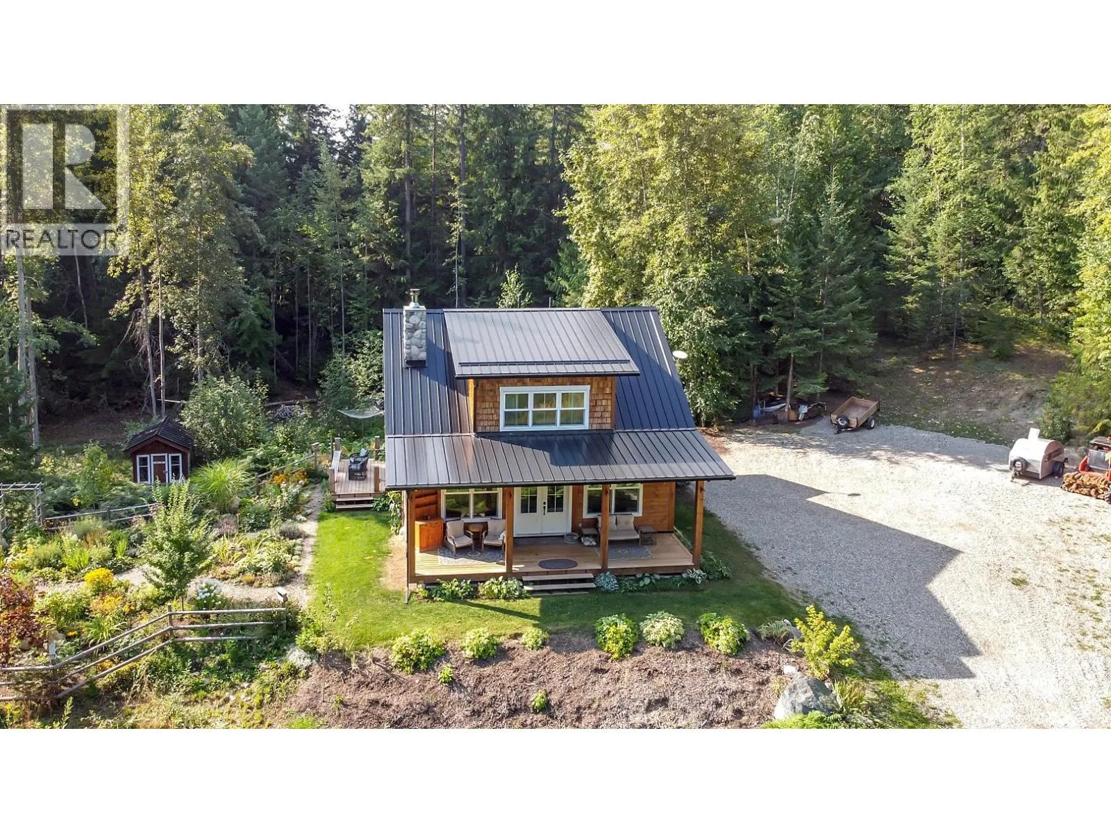 Tucked into the base of the Larch Hills, this magical 4-acre retreat feels like itâs been painted into the landscape. Winding garden paths & forest surround a 2021-built home that glows with natural woodwork & light, along with a picture-perfect ski/garden cottage tucked away for cozy apre ski stays. Two wells provide abundant waterâone for the flourishing gardens & another for the home & cottage. Inside, the kitchen forms the heart of the homeâbright, striking, & crafted with rich wood features. Upstairs, the primary suite is a serene escape, joined by a charming den, a generous second bedroom, & a spa-like bath complete with a classic clawfoot tub. The wide front porch offers privacy & quiet, where no neighboursâor even the guest cottageâare in sight. The partially finished lower level provides a cozy family room, workshop, & ample storage. Whether itâs evenings by the fire, tending gardens through summer, or retreating into the stillness of the forest, this property is a true sanctuaryâprivate, warm, & filled with character. Adding to the charm, is a quintessential chicken coop. A wood stove offers cozy warmth on winter evenings, complemented by the efficiency of a heat pump for year-round comfort. Practicality meets possibility with loads of parking & a flat, open area ideal for a future garage or shop. Every detail speaks to the pride & care with which it was built. Measurements care of iGuide & should be verified by a buyer, along with all information in the listing. (id:27476)