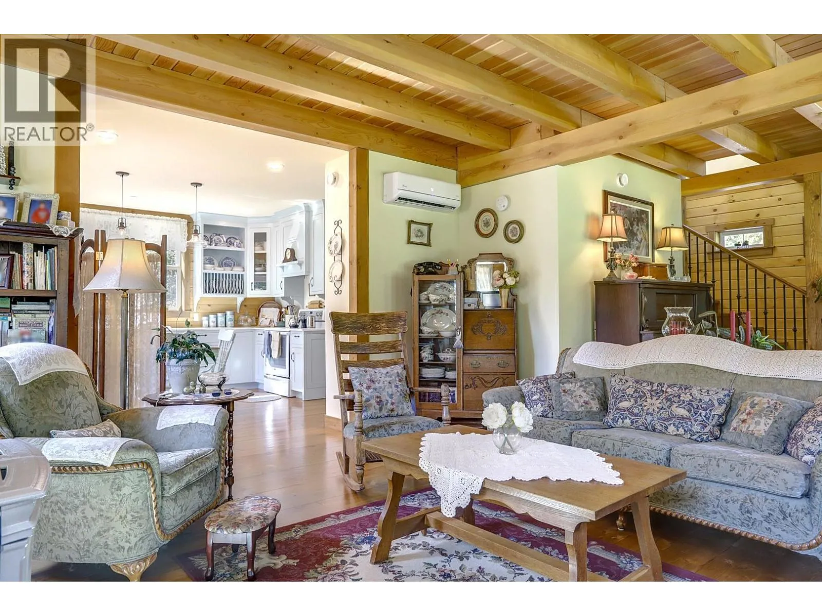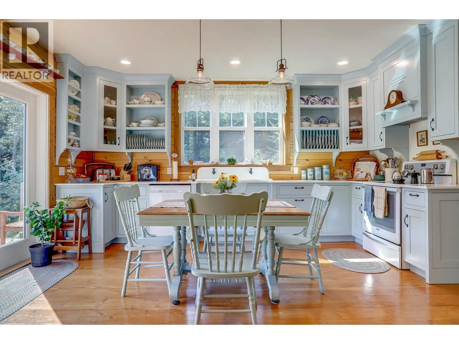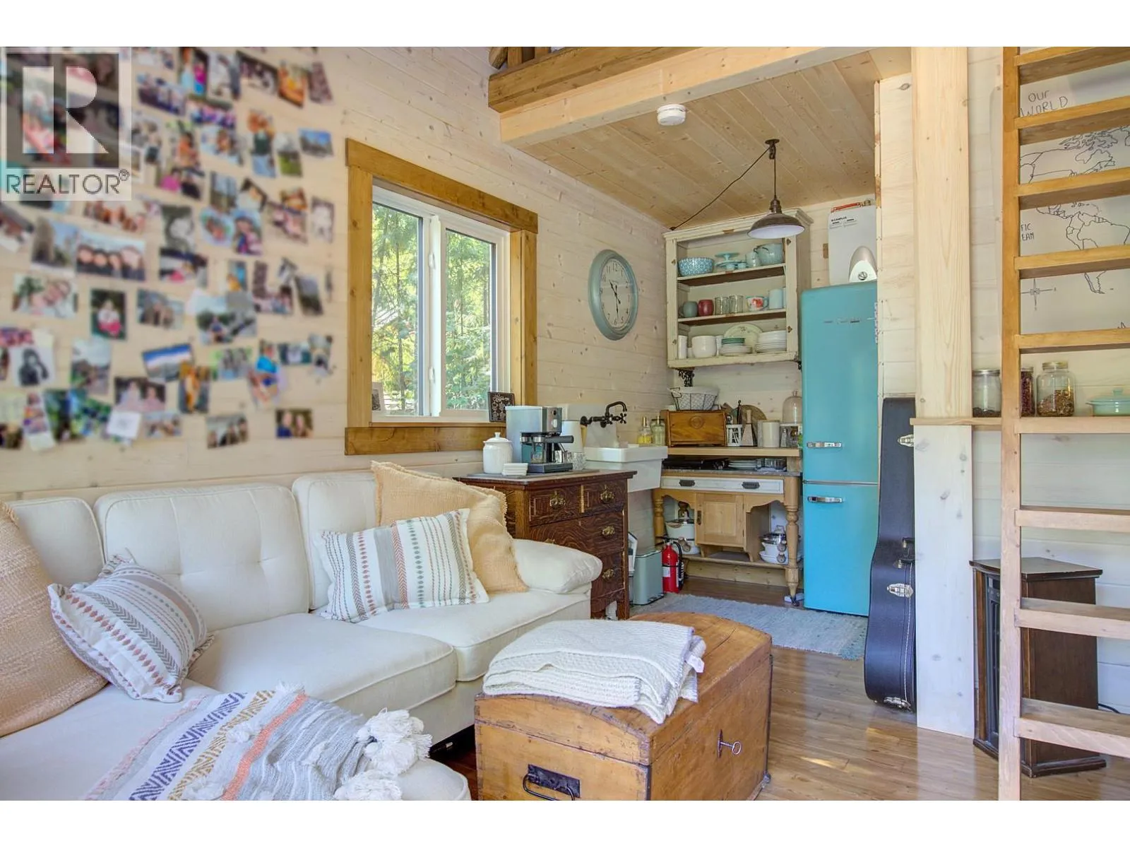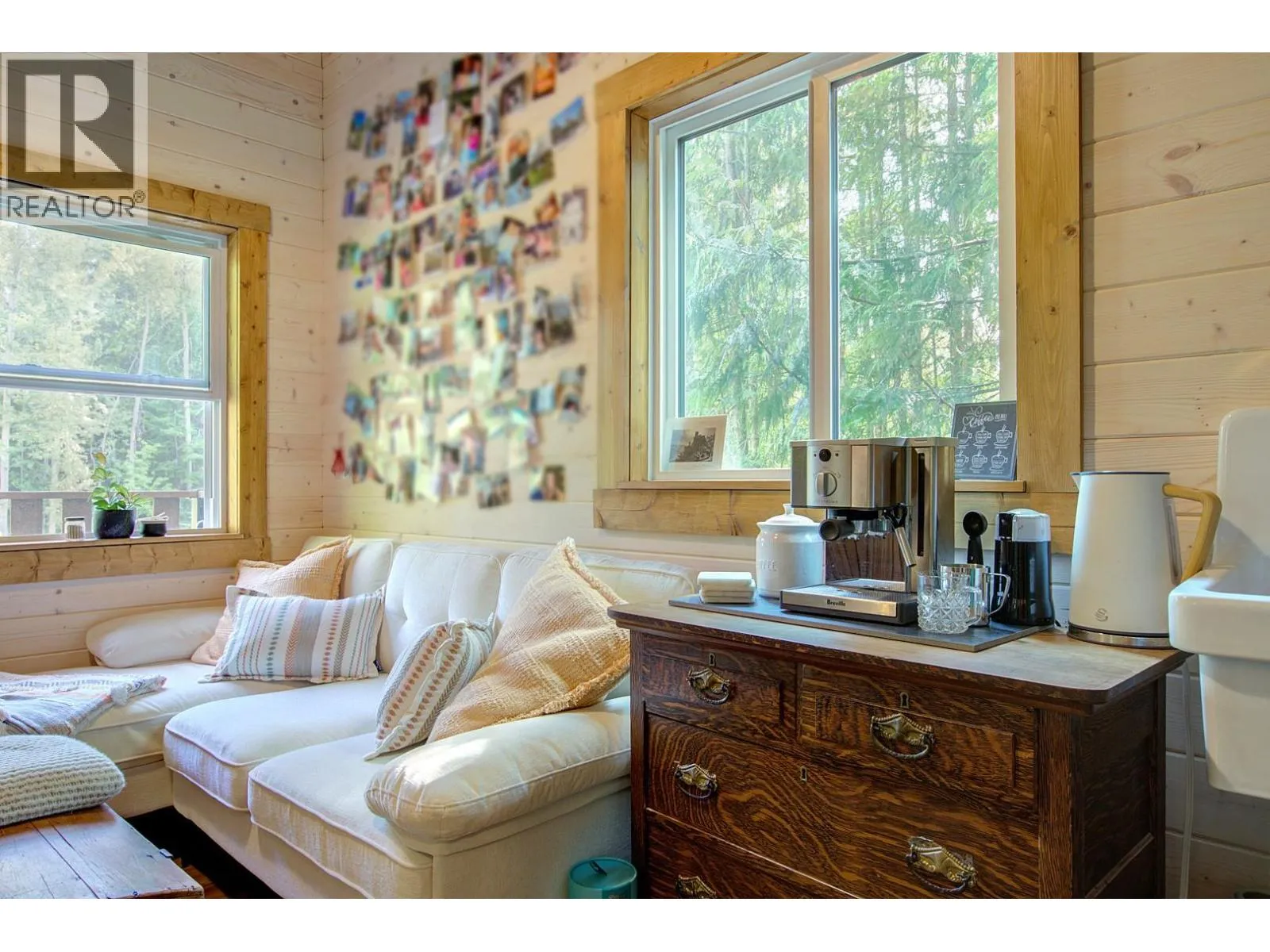 Tucked into the base of the Larch Hills, this magical 4-acre retreat feels like itâs been painted into the landscape. Winding garden paths & forest surround a 2021-built home that glows with natural woodwork & light, along with a picture-perfect ski/garden cottage tucked away for cozy apre ski stays. Two wells provide abundant waterâone for the flourishing gardens & another for the home & cottage. Inside, the kitchen forms the heart of the homeâbright, striking, & crafted with rich wood features. Upstairs, the primary suite is a serene escape, joined by a charming den, a generous second bedroom, & a spa-like bath complete with a classic clawfoot tub. The wide front porch offers privacy & quiet, where no neighboursâor even the guest cottageâare in sight. The partially finished lower level provides a cozy family room, workshop, & ample storage. Whether itâs evenings by the fire, tending gardens through summer, or retreating into the stillness of the forest, this property is a true sanctuaryâprivate, warm, & filled with character. Adding to the charm, is a quintessential chicken coop. A wood stove offers cozy warmth on winter evenings, complemented by the efficiency of a heat pump for year-round comfort. Practicality meets possibility with loads of parking & a flat, open area ideal for a future garage or shop. Every detail speaks to the pride & care with which it was built. Measurements care of iGuide & should be verified by a buyer, along with all information in the listing. (id:27476)