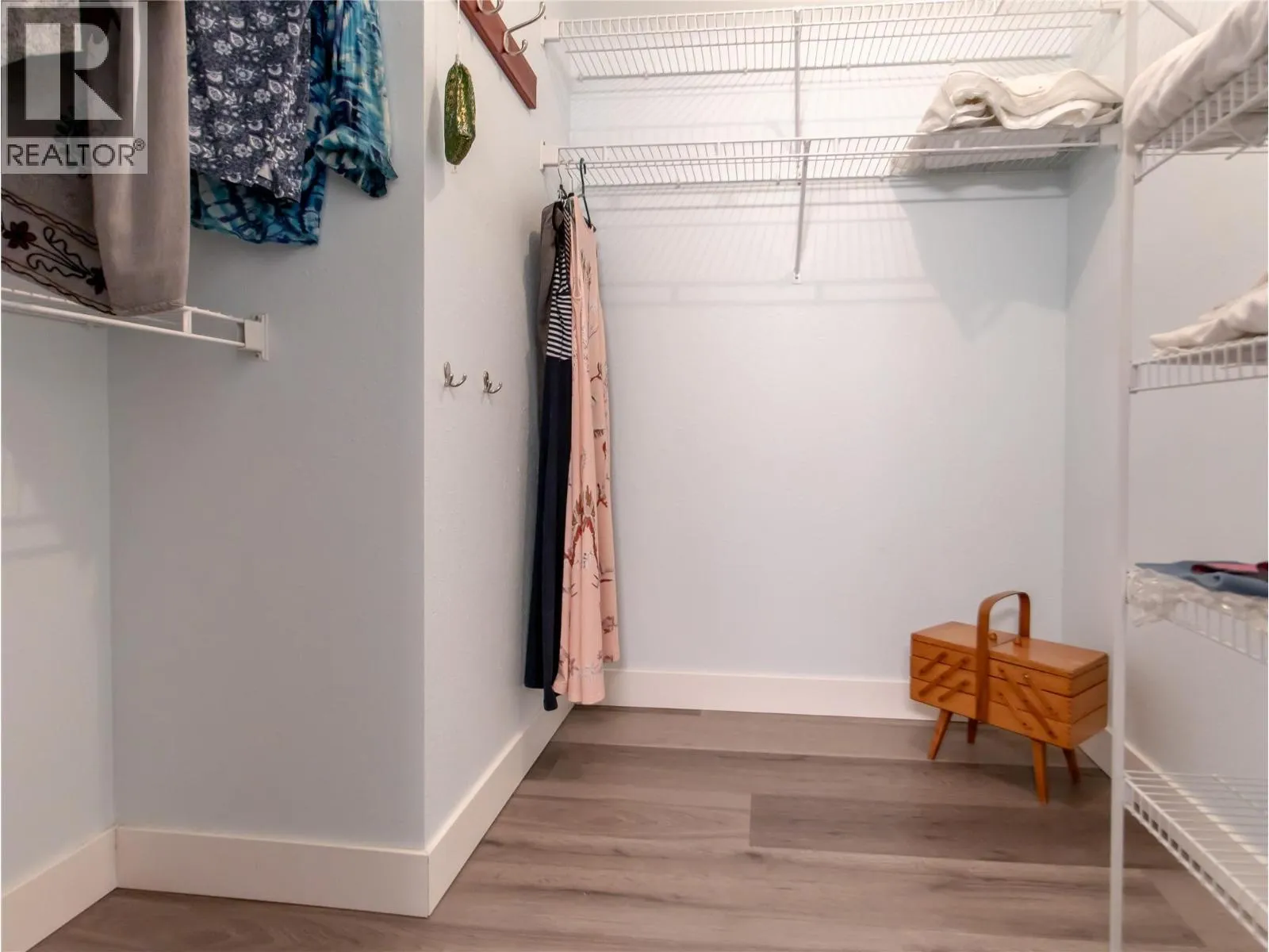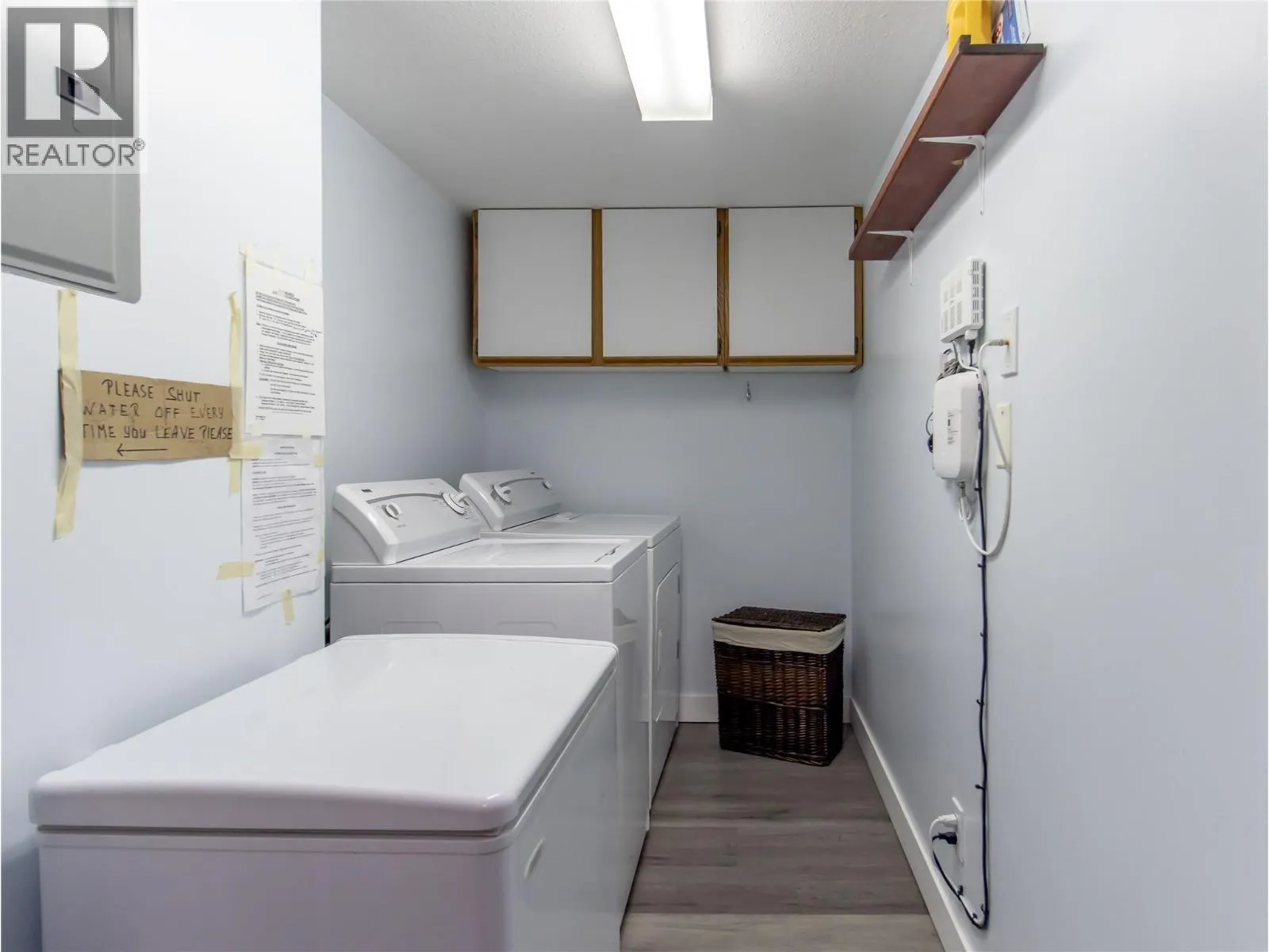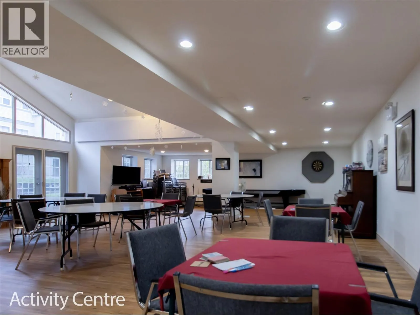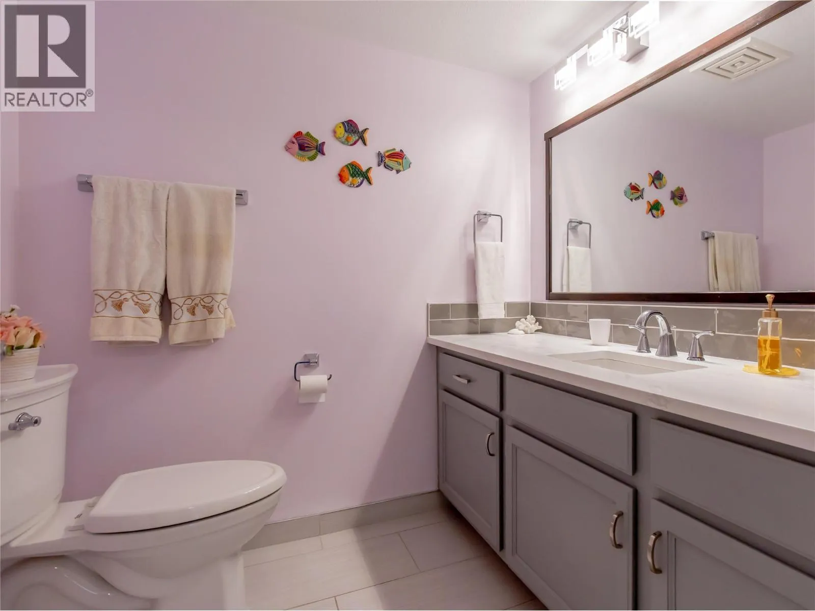 Tastefully renovated corner unit in the desirable 55+ MacIntosh Grove, offering easy, low-maintenance living just steps from downtown. This bright and spacious home features just under 1,300 sq. ft. with 2 bedrooms and 2 bathrooms, and has been recently updated with new flooring, a renovated kitchen with new appliances and countertops, fresh paint, and updated bathrooms. The inviting living room includes a newer AC unit, cozy gas fireplace (included in the strata fee) and flows seamlessly into the formal dining area and eat-in kitchen with access to a wrap-around, covered balcony featuring mountain views. The well-designed layout offers generous room sizes, a primary bedroom with walk-in closet and full ensuite (dual vanities). The kitchen provides ample cabinetry, tile backsplash, stainless appliances. A separate laundry room includes extra storage and room for a freezer. Convenient elevator access ensures effortless entry to this unitâsimply move in and enjoy. MacIntosh Grove amenities include underground parking, RV parking, a common gathering room with kitchen, craft room, exercise room, and workshop. Public transit, shopping, restaurants, and downtown are all within walking distance. Quick possession available. (id:27476)