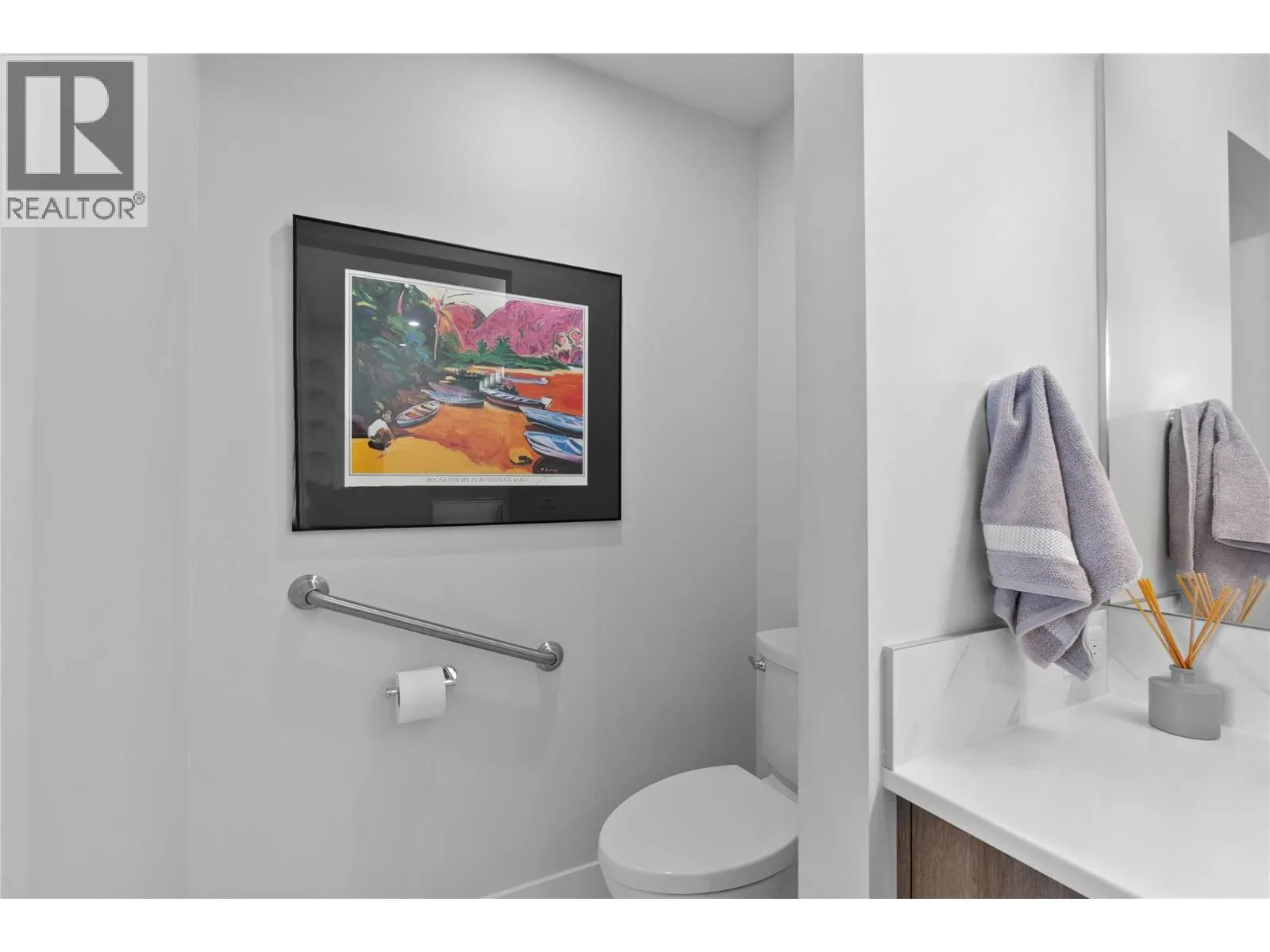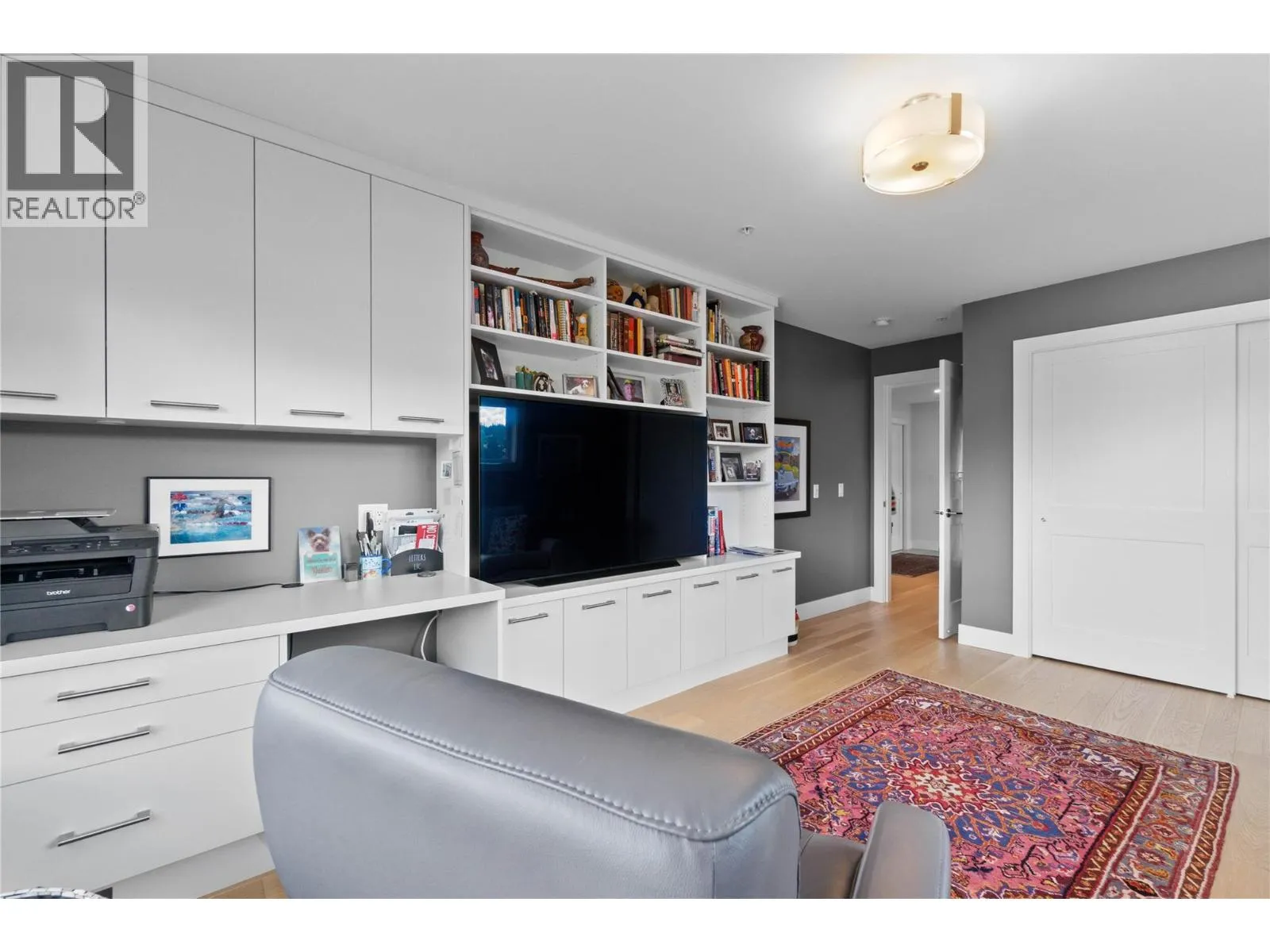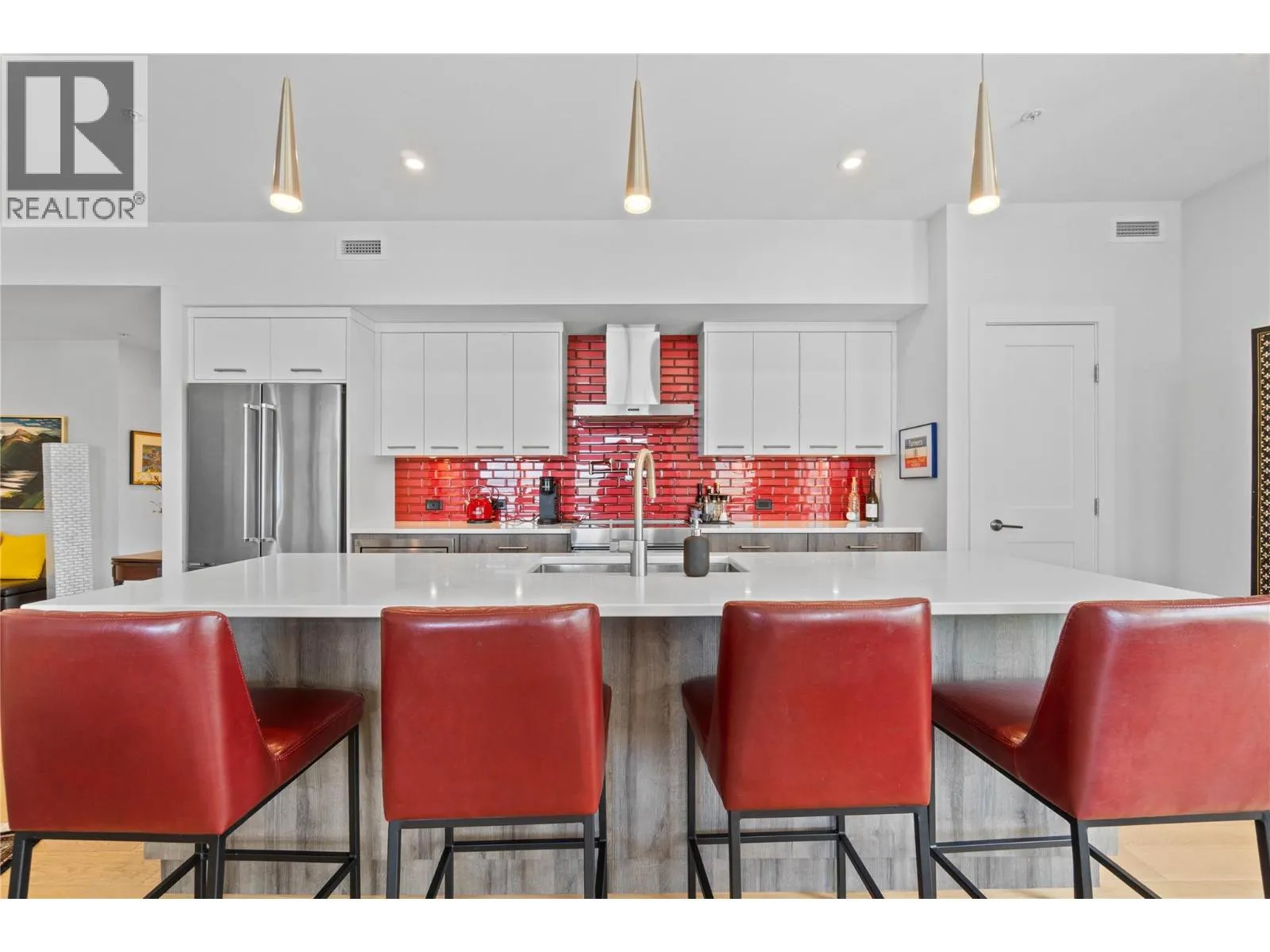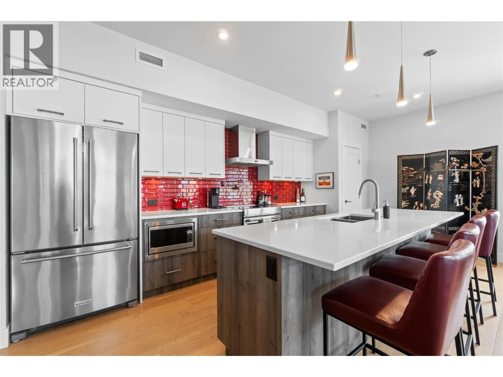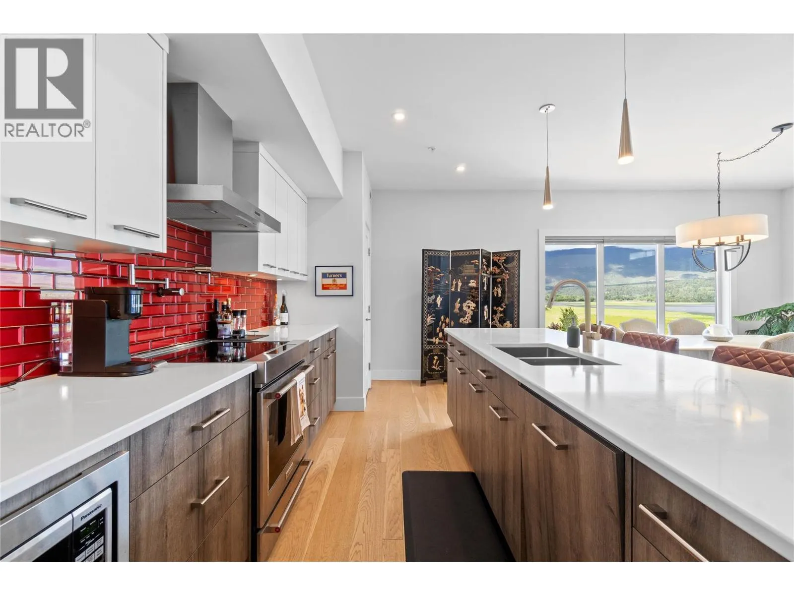 Experience the best of lakeside living in this stunning top-floor condo overlooking the sparkling waters of Shuswap Lake. Built in 2020, this beautifully designed 1,493 sq. ft. home offers two bedrooms, two bathrooms, and an open-concept layout filled with natural light. High ceilings and expansive windows frame breathtaking panoramic views, creating a bright and airy atmosphere throughout. The modern kitchen is both stylish and functional, featuring stainless steel appliances, a large island ideal for entertaining, and a walk-in pantry for added storage. The spacious living area is anchored by a striking floor-to-ceiling electric fireplace, adding warmth, style, and a cozy focal point to the room. The living and dining areas flow seamlessly onto a covered deck, perfect for relaxing while taking in the incredible scenery year-round. The primary suite is a private retreat with direct access to the deck, a generous walk-in closet, and a contemporary ensuite bathroom complete with a walk-in tiled shower. The second bedroom includes custom built-in cabinetry and a desk, offering a flexible space for guests, a home office, or creative use. Additional features include secure underground parking, beautiful modern finishings, and an unbeatable location in downtown Salmon Arm, just steps from restaurants, shops, and the waterfront. This top-floor unit offers the perfect blend of comfort, style, and convenience. (id:27476)
