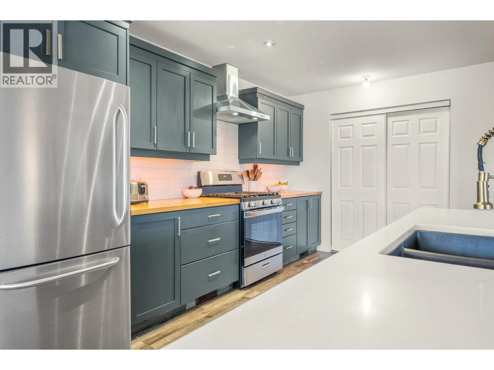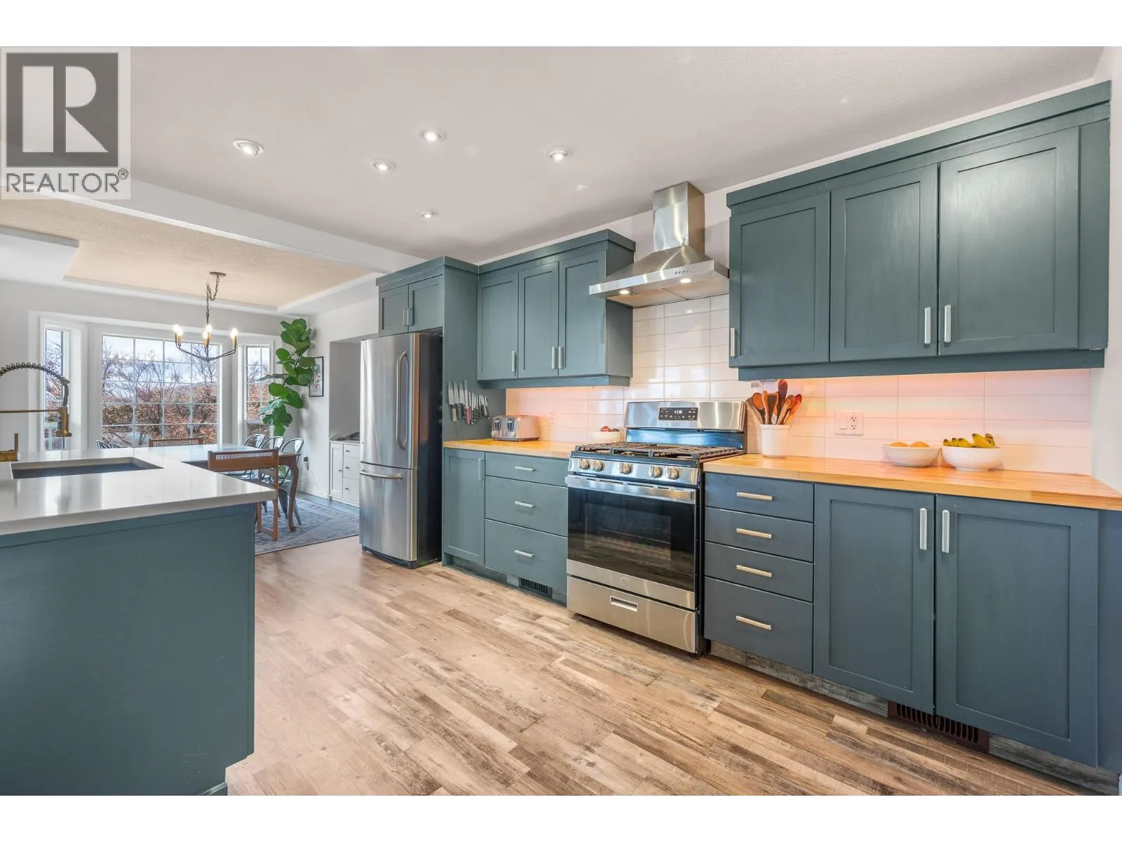 Extensively updated 5-bed, 3-bath multi-level home with a rare 3-bay heated garage in a sought-after SE Salmon Arm neighborhood. Walking distance to schools, college, recreation, transit and trails, and just minutes to both uptown and downtown amenities. The bright main level features a beautifully renovated kitchen with quartz countertops, enlarged island with eating bar, pantry, and dining area with bay window. The open great room layout creates an inviting space for everyday living and entertaining. Step down to the spacious family/media room with gas fireplace and sliding doors leading to the level backyard and patio, ideal for kids, pets and summer gatherings. This level also offers a bedroom or office, full 3-piece bath, laundry, and direct access to the heated 3-bay garage complete with workbench and storage. Upstairs includes three additional bedrooms, including the primary suite with walk-through closet and ensuite. The lower level adds even more flexibility with new flooring, a large bedroom setup, rec space and additional storage. Numerous updates from 2022â2025 include a high-efficiency furnace, garage door, quartz counters, interior paint, lighting and hardware, finished utility room, backsplash, front porch steps, and newer appliances including gas range, dishwasher and washer. Cherry tree in the backyard and lake/mountain views from the covered front porch. Priced below assessed value, presenting a compelling opportunity in an established family neighborhood. (id:27476)