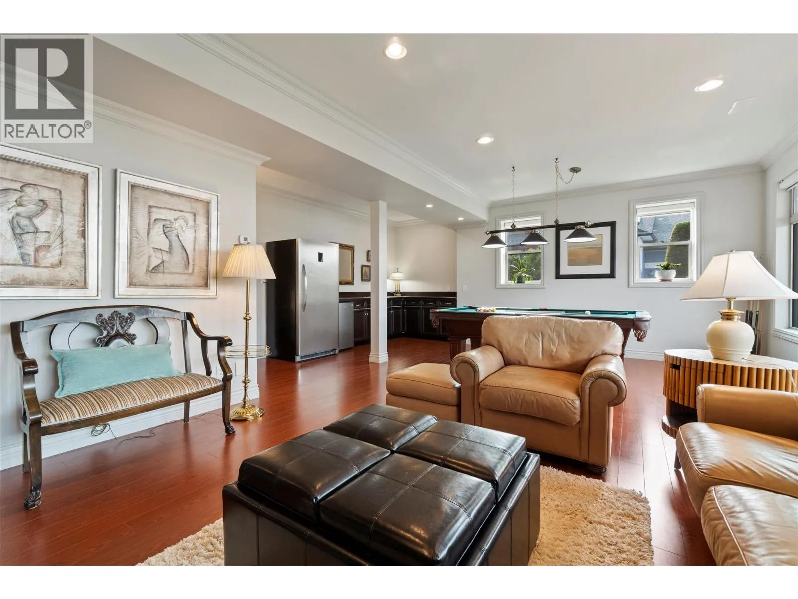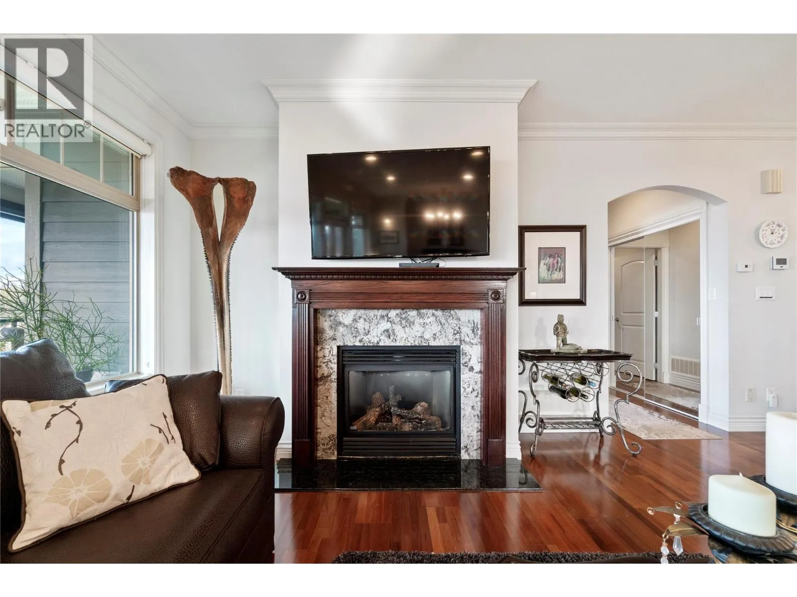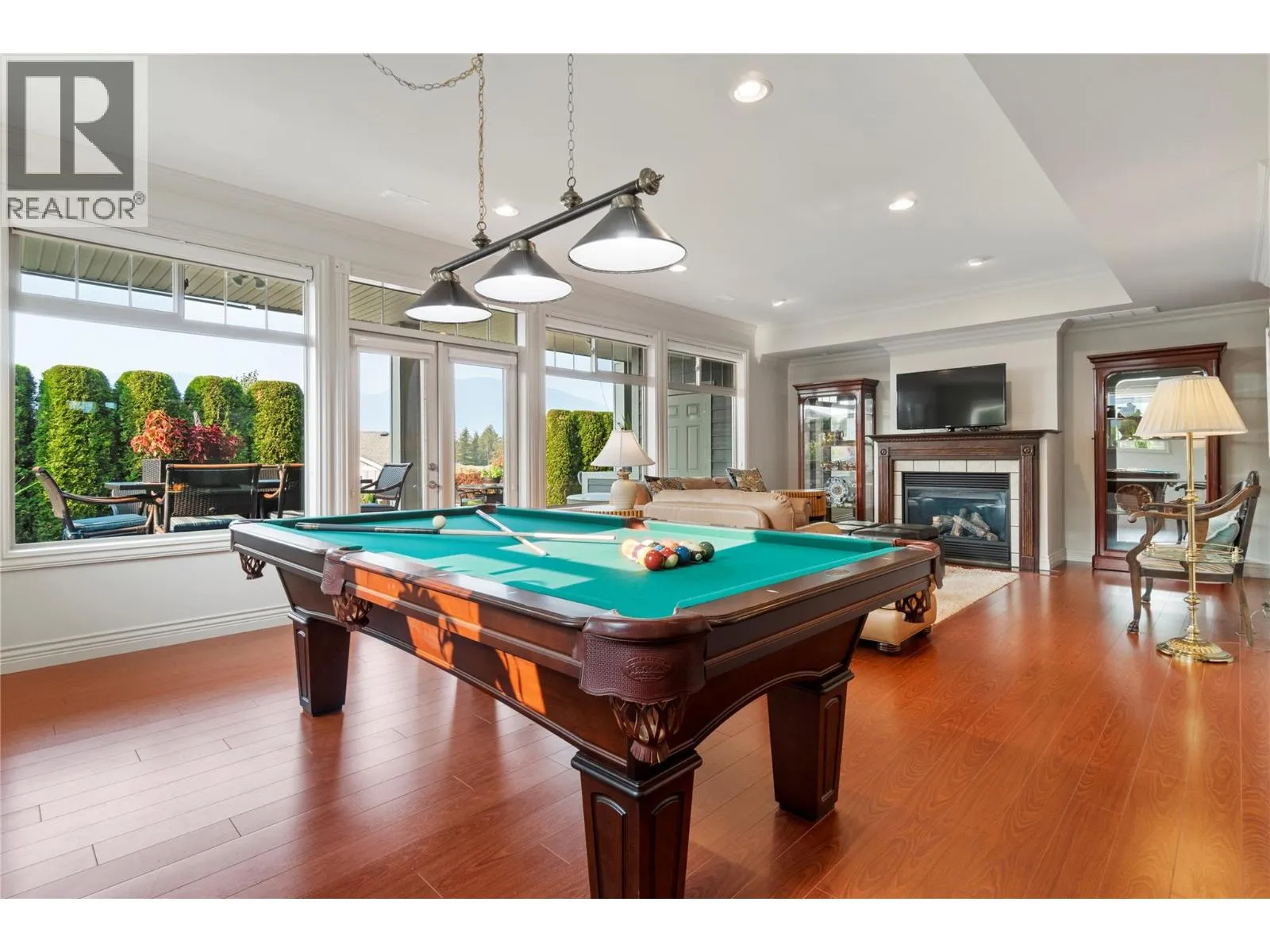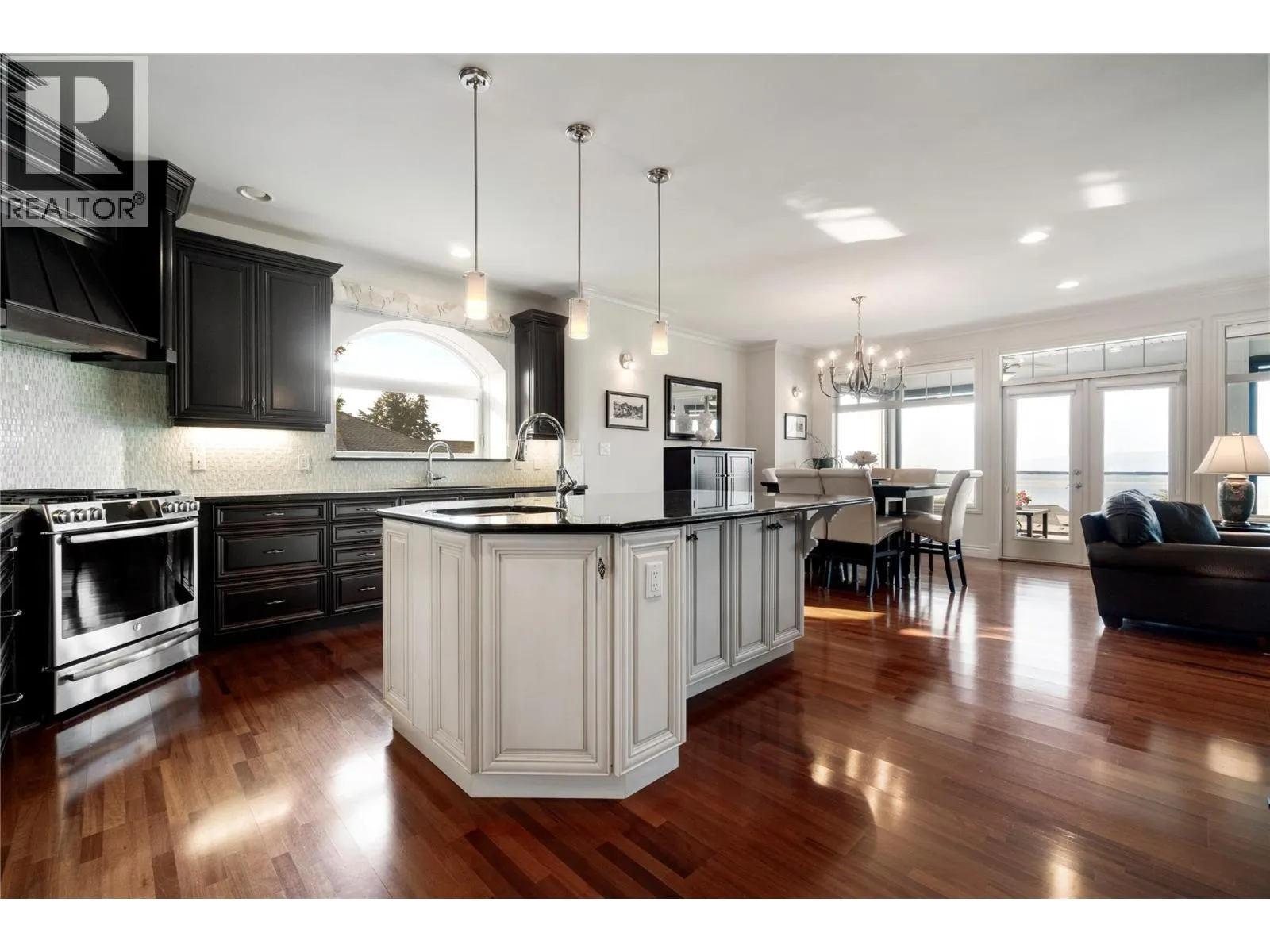 Thoughtfully designed for premium living, this majestic property features all-new professional landscaping, including a recently constructed Japanese-style trellis. Extensive upgrades, to name only a few, include a flex room/gymnasium, interior and exterior paint, new carpet, lighting, plumbing, and an EV charger. Details such as 9â ceilings, crown mouldings, gas fireplaces, and hardwood and laminate flooring are present throughout the main and lower levels. A stunning low-maintenance front entrance offers great curb appeal. The foyer is a pocket of calm. We are drawn to a focal point in the Great Room, showcasing sweeping lake and mountain views. An inviting gourmet kitchen, an open dining and living room, a private barbecue deck, new appliances, new granite countertops, a pantry, and updated lighting greet the eye. French doors lead to a full-width covered terrace with glass railings, re-surfaced flooring, and automatic privacy shades. The impressive vaulted primary bedroom, opening to the terrace, offers a spa-inspired ensuite room and a newly designed walk-in closet. A wide corridor connects the main entrance to an impressive vaulted executive office, a convenient powder room, and a large laundry room, which exits to the extra-large double garage. The lower-level entertainment room becomes a cozy lounge for socializing in a statement bar and games room. The guest area includes a full bathroom, a library, three large bedrooms, and a gym/flex room (with its own full bath, private exit, and storage). (id:27476)