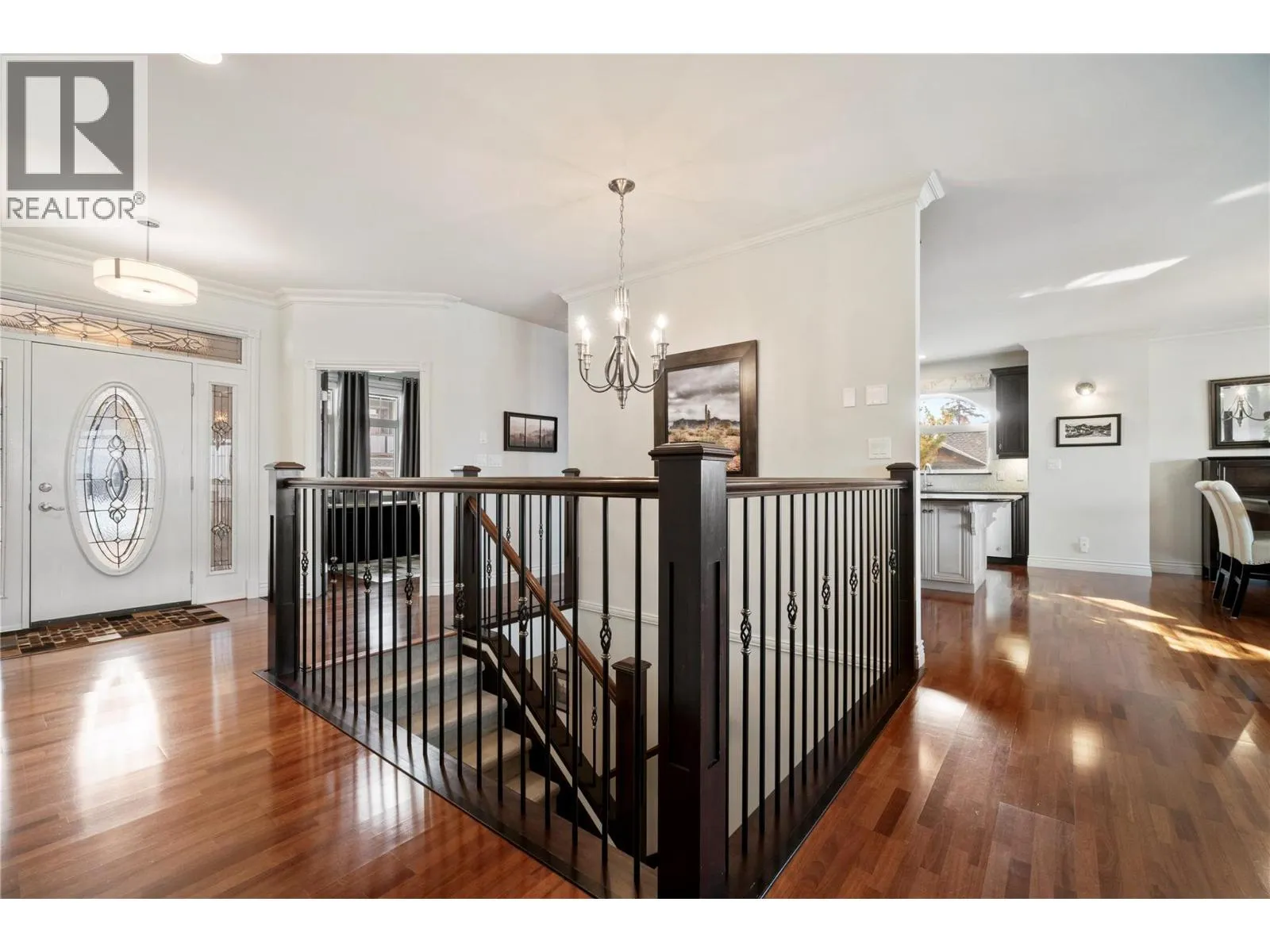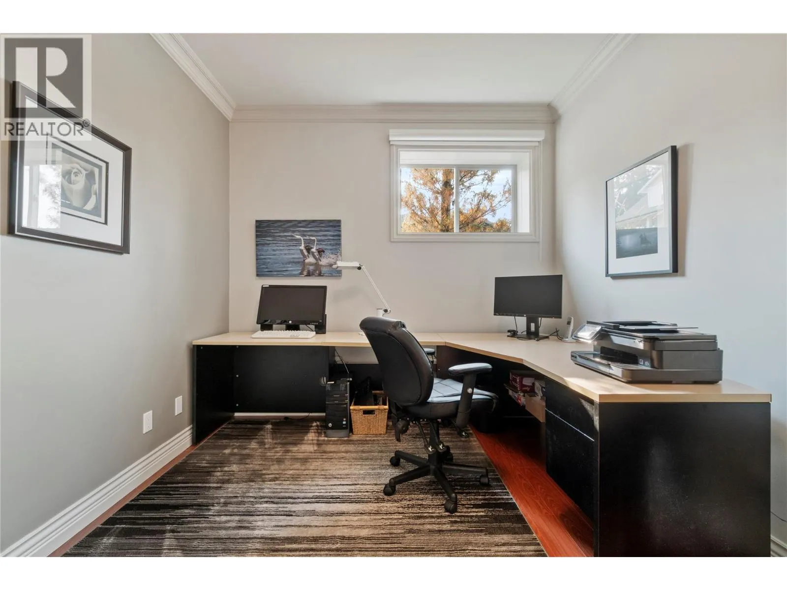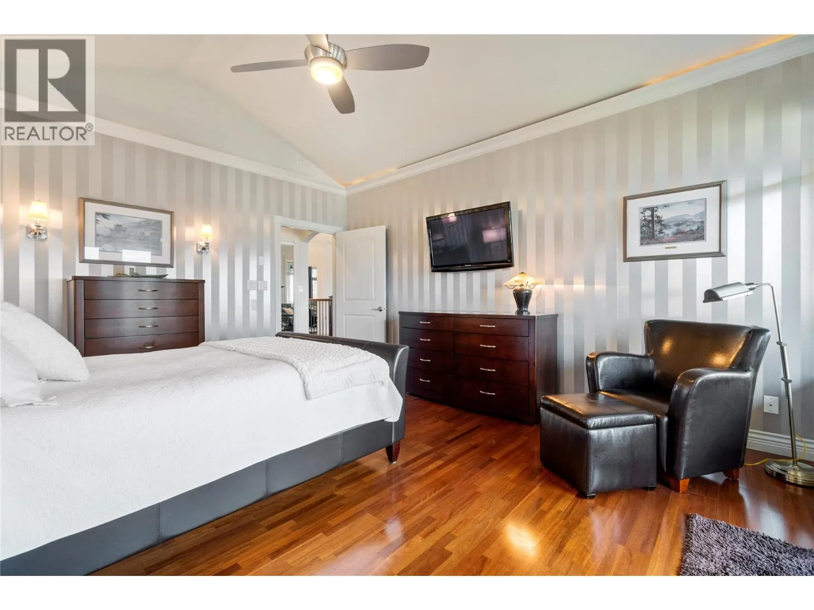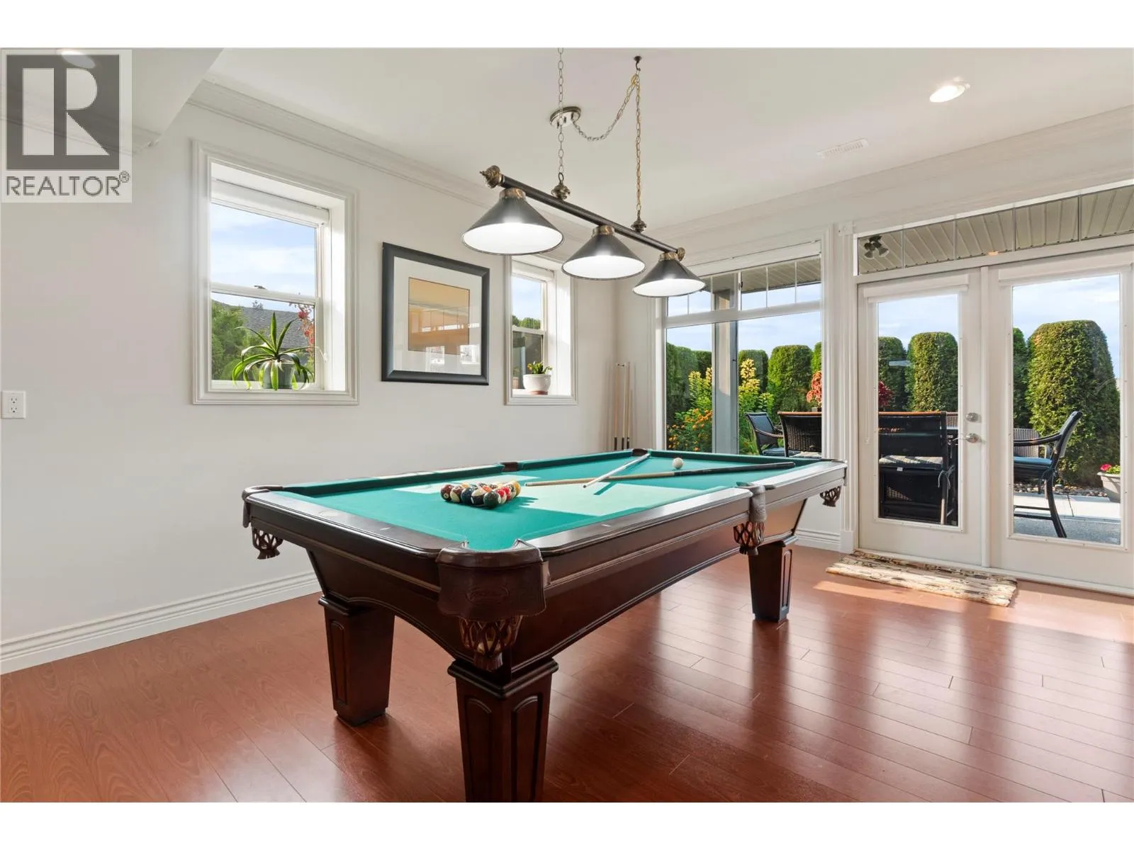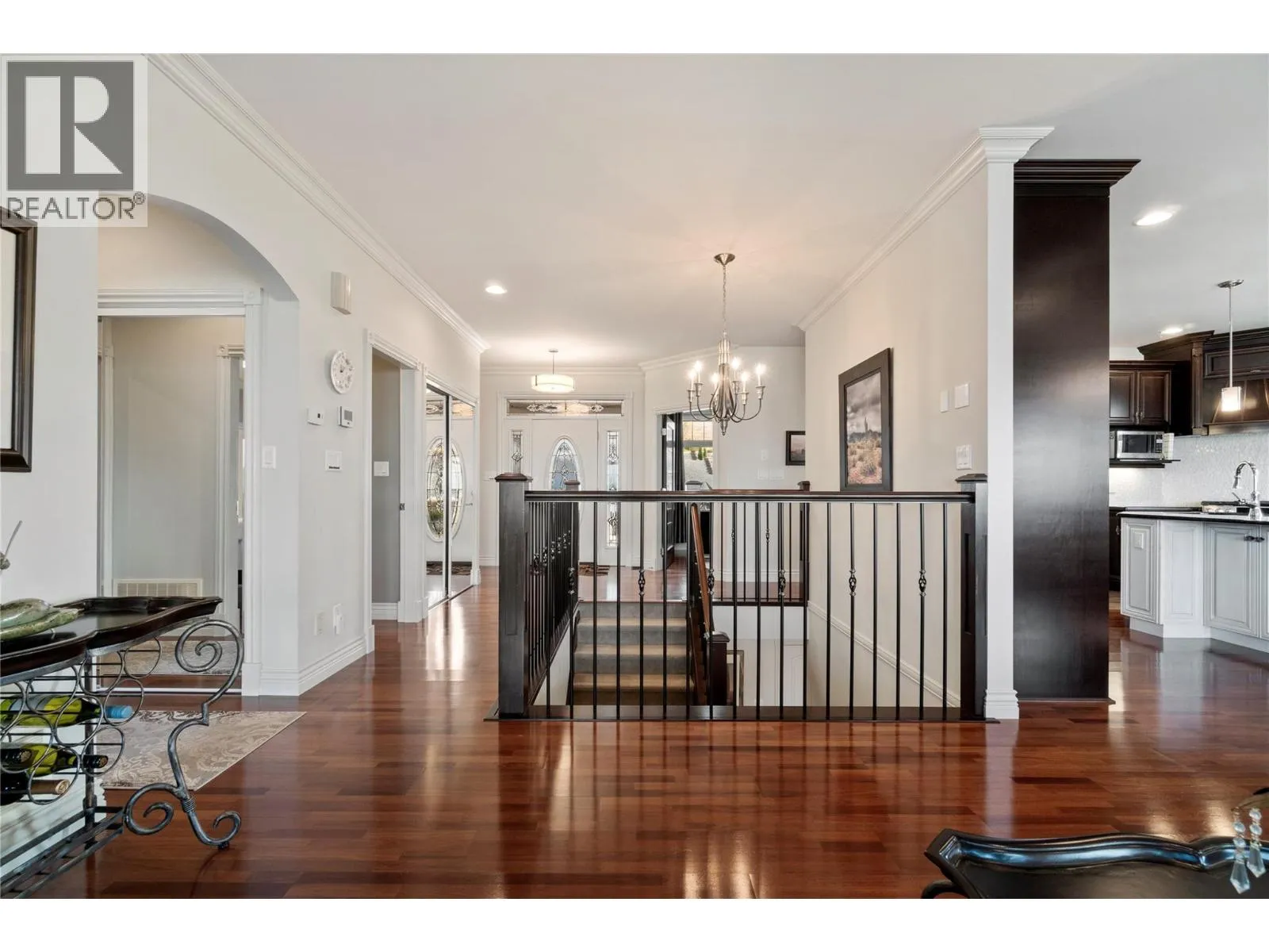 Thoughtfully designed for premium living, this majestic property features all-new professional landscaping, including a recently constructed Japanese-style trellis. Extensive upgrades, to name only a few, include a flex room/gymnasium, interior and exterior paint, new carpet, lighting, plumbing, and an EV charger. Details such as 9â ceilings, crown mouldings, gas fireplaces, and hardwood and laminate flooring are present throughout the main and lower levels. A stunning low-maintenance front entrance offers great curb appeal. The foyer is a pocket of calm. We are drawn to a focal point in the Great Room, showcasing sweeping lake and mountain views. An inviting gourmet kitchen, an open dining and living room, a private barbecue deck, new appliances, new granite countertops, a pantry, and updated lighting greet the eye. French doors lead to a full-width covered terrace with glass railings, re-surfaced flooring, and automatic privacy shades. The impressive vaulted primary bedroom, opening to the terrace, offers a spa-inspired ensuite room and a newly designed walk-in closet. A wide corridor connects the main entrance to an impressive vaulted executive office, a convenient powder room, and a large laundry room, which exits to the extra-large double garage. The lower-level entertainment room becomes a cozy lounge for socializing in a statement bar and games room. The guest area includes a full bathroom, a library, three large bedrooms, and a gym/flex room (with its own full bath, private exit, and storage). (id:27476)