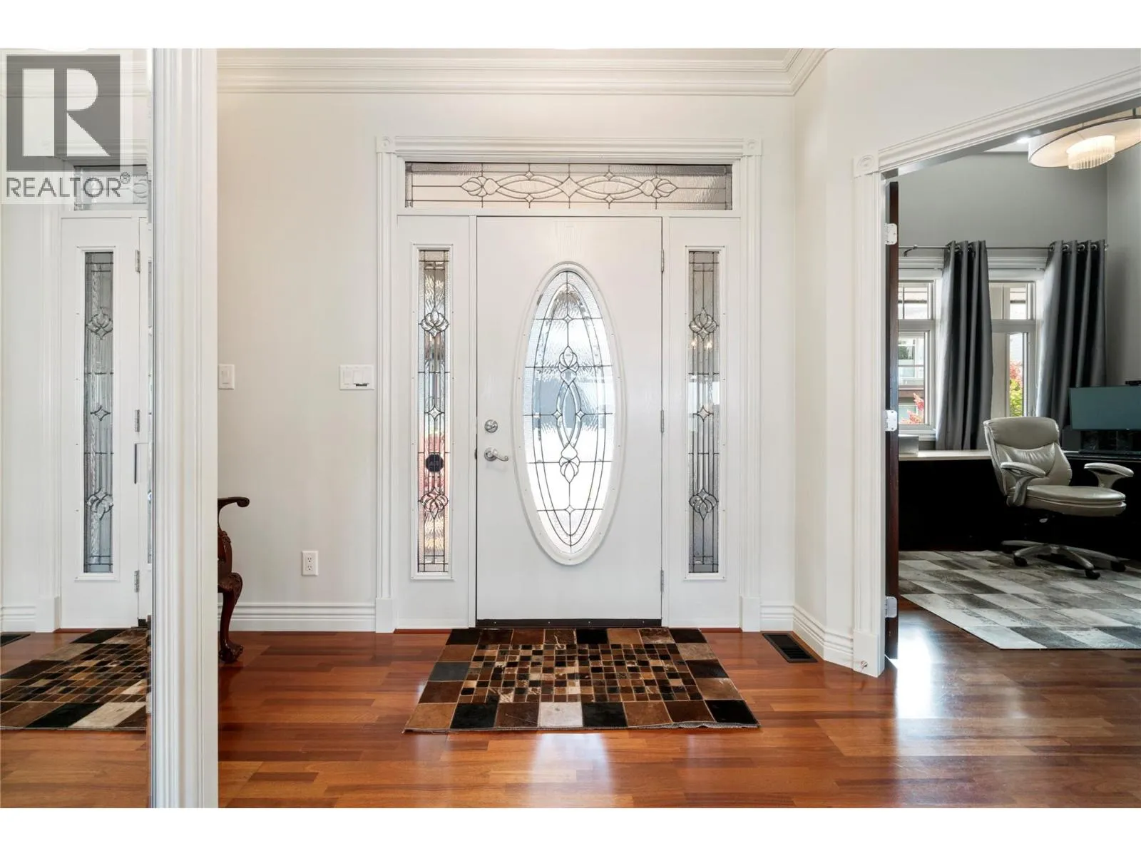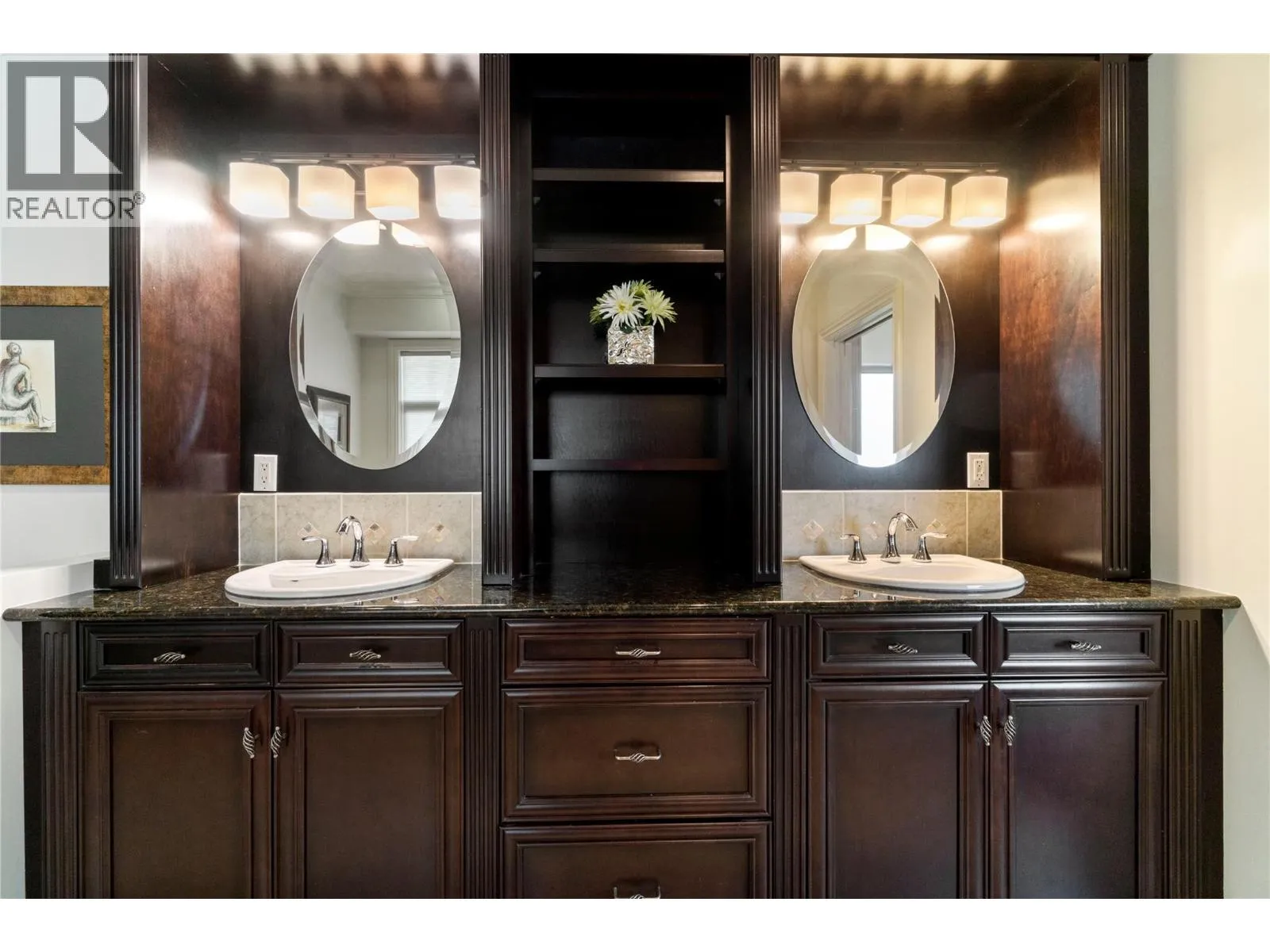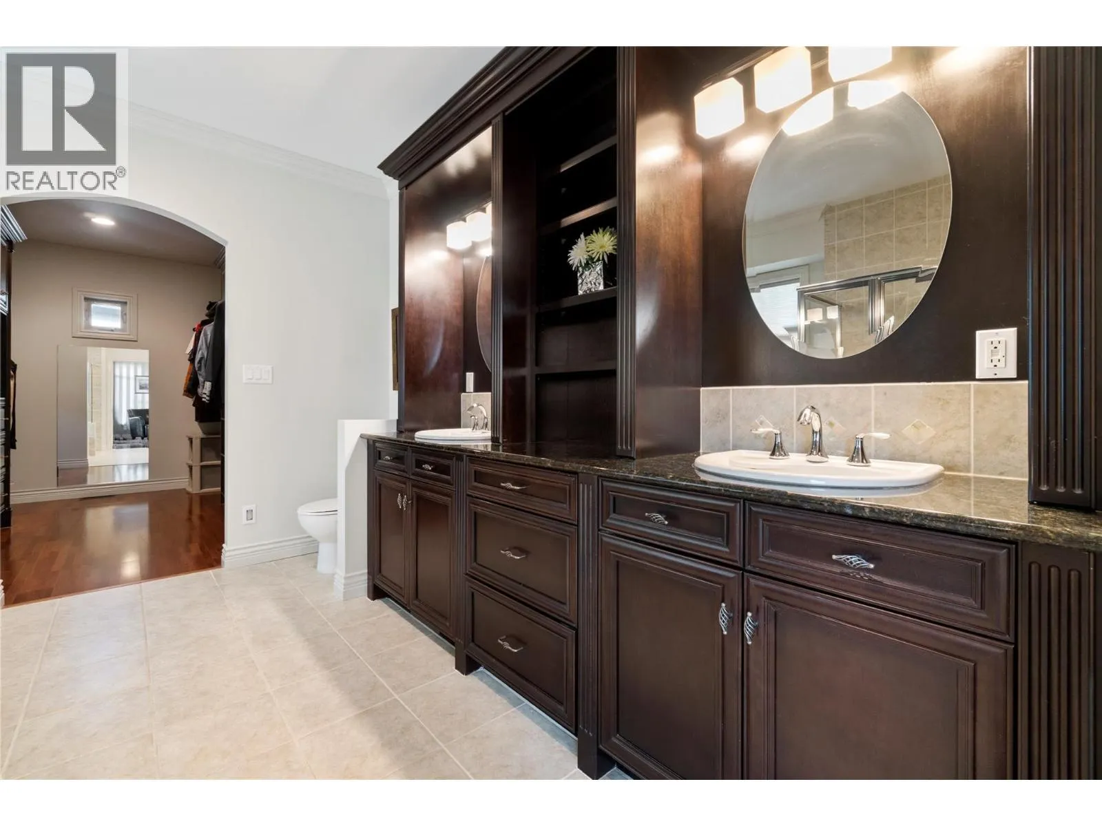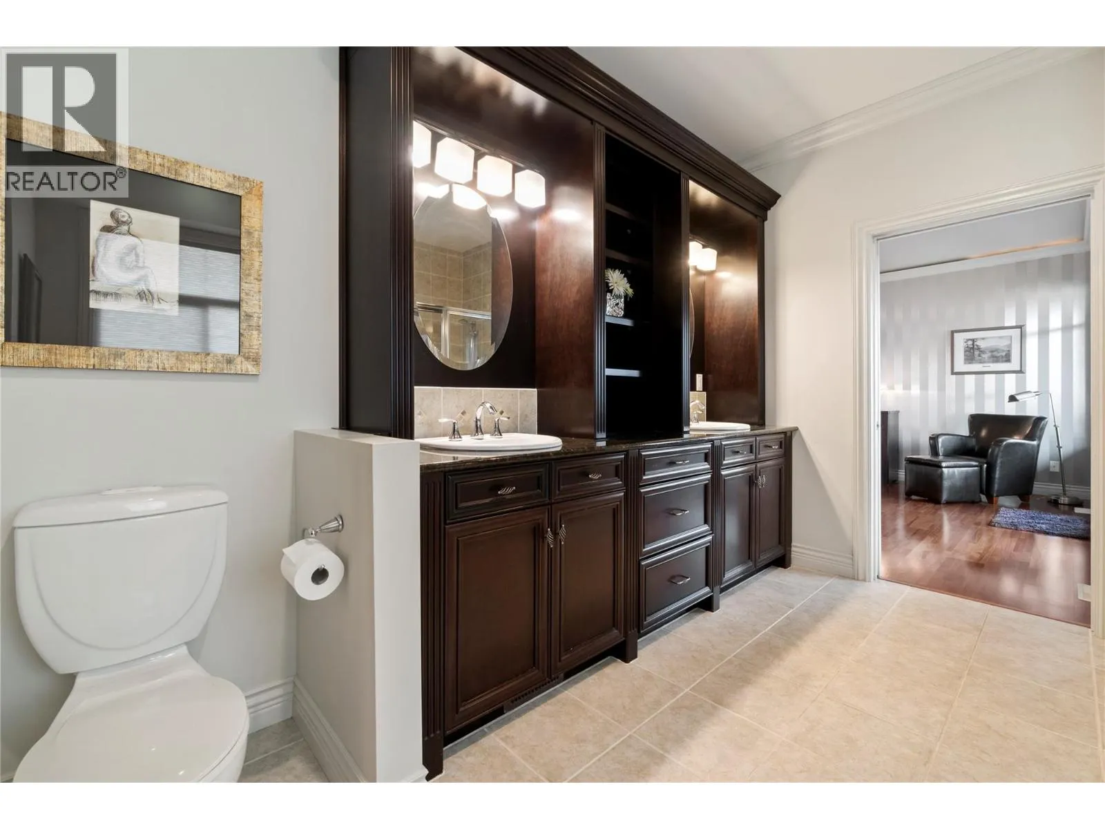 Thoughtfully designed for premium living, this majestic property features all-new professional landscaping, including a recently constructed Japanese-style trellis. Extensive upgrades, to name only a few, include a flex room/gymnasium, interior and exterior paint, new carpet, lighting, plumbing, and an EV charger. Details such as 9â ceilings, crown mouldings, gas fireplaces, and hardwood and laminate flooring are present throughout the main and lower levels. A stunning low-maintenance front entrance offers great curb appeal. The foyer is a pocket of calm. We are drawn to a focal point in the Great Room, showcasing sweeping lake and mountain views. An inviting gourmet kitchen, an open dining and living room, a private barbecue deck, new appliances, new granite countertops, a pantry, and updated lighting greet the eye. French doors lead to a full-width covered terrace with glass railings, re-surfaced flooring, and automatic privacy shades. The impressive vaulted primary bedroom, opening to the terrace, offers a spa-inspired ensuite room and a newly designed walk-in closet. A wide corridor connects the main entrance to an impressive vaulted executive office, a convenient powder room, and a large laundry room, which exits to the extra-large double garage. The lower-level entertainment room becomes a cozy lounge for socializing in a statement bar and games room. The guest area includes a full bathroom, a library, three large bedrooms, and a gym/flex room (with its own full bath, private exit, and storage). (id:27476)