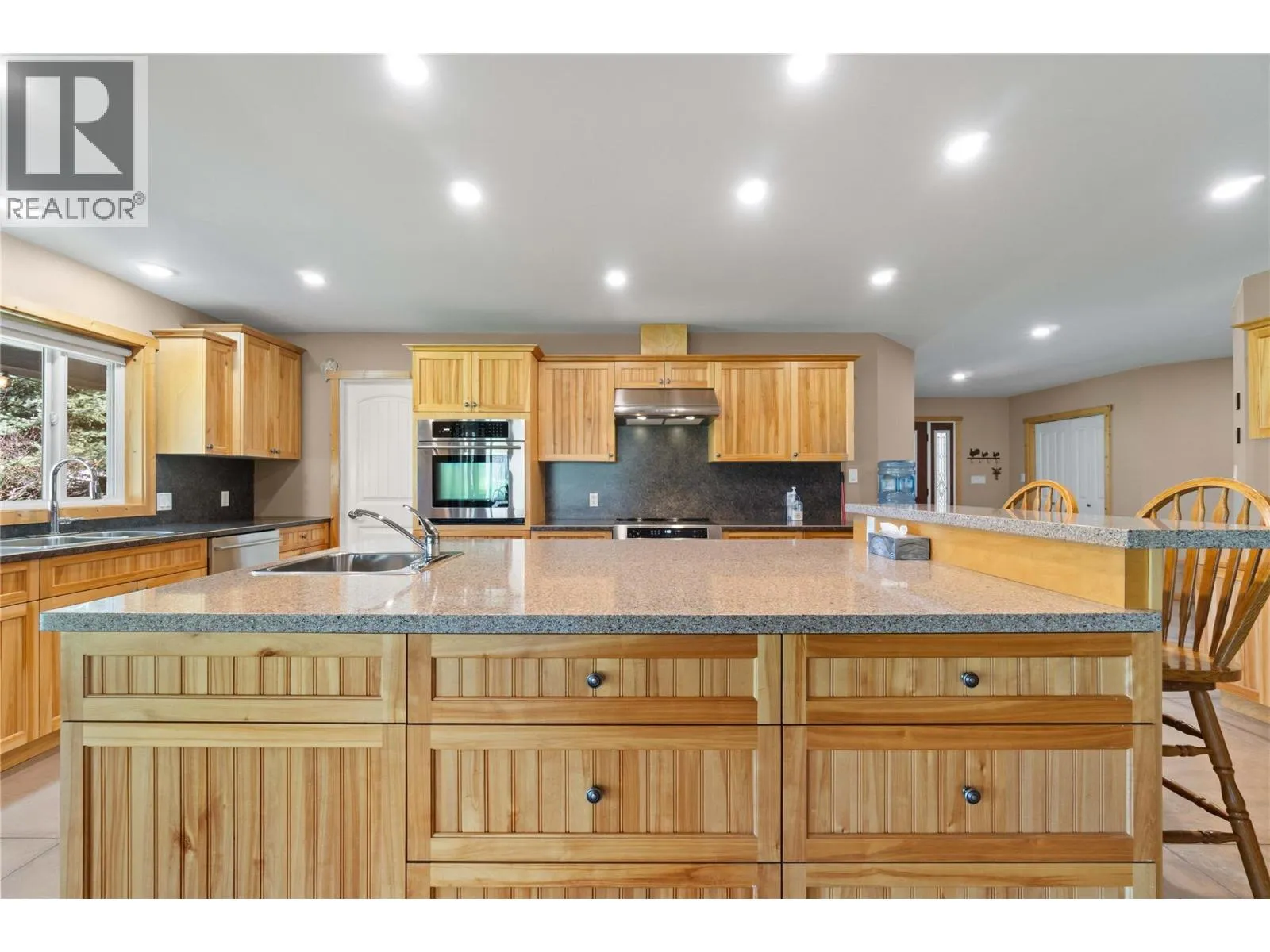 An extraordinary private retreat awaits with this impeccably built custom home set on 17 level, fertile acres with frontage on the Salmon River. This property offers the perfect balance of luxury, comfort, and outstanding functionality in a truly breathtaking setting. The spacious 3-bedroom plus den, 4-bath home features an open-concept design with soaring pine ceilings in the living and dining areas. At the heart of the home is a stunning kitchen complete with custom birch cabinetry, a large eat-up island with quartz countertops, walk-in pantry, and coffee station. The inviting living room offers a cozy wood stove, expansive windows that fill the space with light, and access to a wraparound deck. The main level includes a generous primary suite with walk-in closet and ensuite, two additional bedrooms connected by a Jack-and-Jill bathroom, a spacious office/den, and a large laundry room. Upstairs, a finished bonus room provides excellent space for a family or games room and includes its own bathroom and pool table. Additional highlights include geothermal heating and cooling, polished concrete floors, and a triple-car garage. Outside, the property has multiple shops, workshops, and storage buildings including two shops with overhead doors (27x21 and 27x18), additional shops (24x19 and 20x20), two open pole barns (40x19 and 40x26), and a massive RV storage building (52x15) with a 12'10"" overhead door. The main shops are serviced with dedicated 200 amp power. GST applicable. (id:27476)