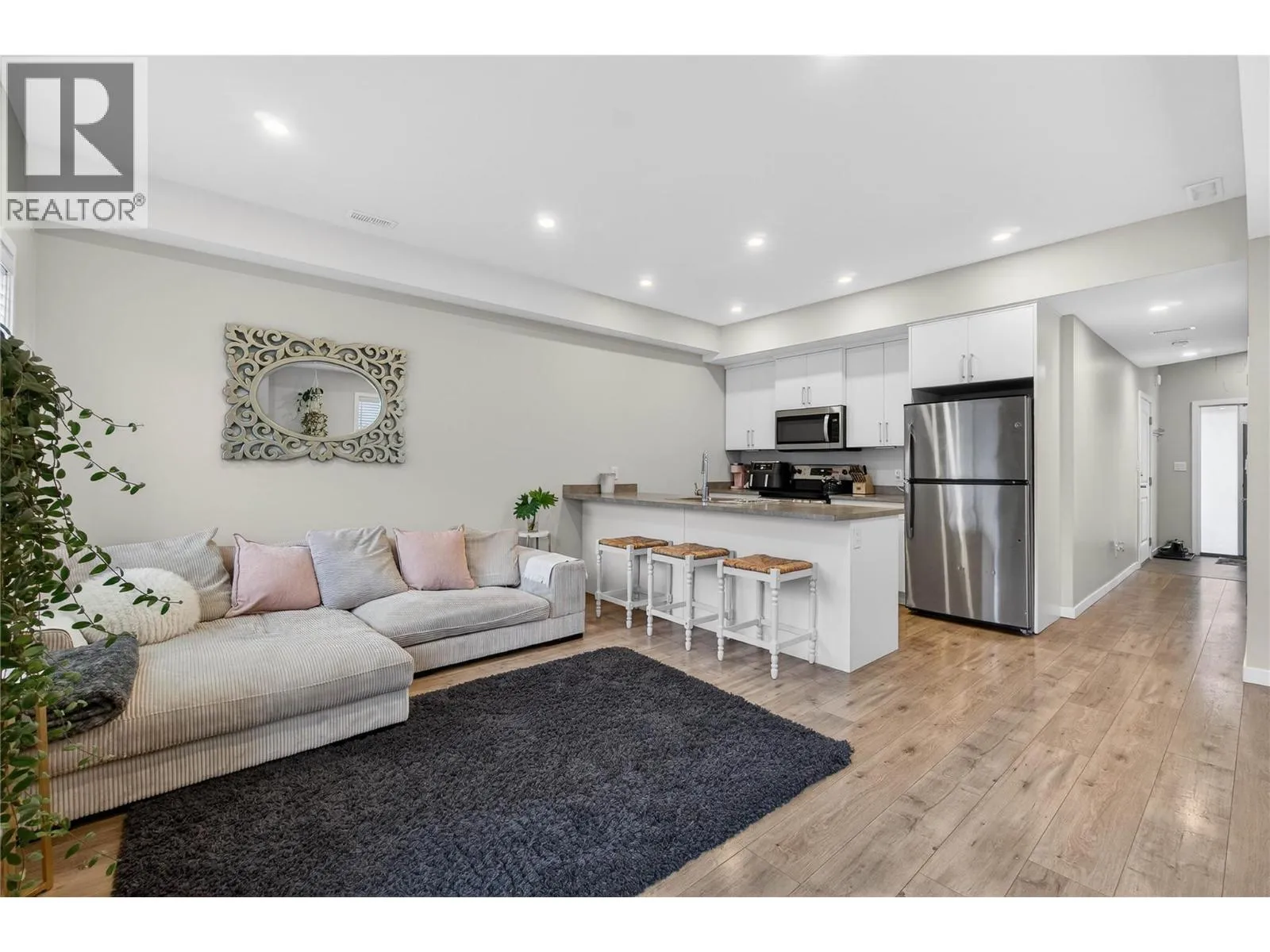 Modern townhome offering 1,168 sq ft of thoughtfully designed living space with 3-bedrooms, 2 bathrooms. Located in a prime uptown locationâjust a short walk to shopping, restaurants, and everyday amenities. The main floor features a bright, open-concept layout with a spacious kitchen complete with a large island and stainless steel appliancesâperfect for casual meals or entertaining. The kitchen flows seamlessly into the living room where an electric fireplace adds warmth and character. Step out from the living area onto your patio which opens directly onto a large grassy areaâideal for kids, pets, or simply enjoying a bit of outdoor space. A welcoming foyer and single car garage complete the main level. Upstairs, all three bedrooms are conveniently located together, along with a dedicated laundry room. The primary bedroom features a walk-in closet and a 3-piece ensuite. One of the secondary bedrooms offers cheater ensuite access to the main bathroom, providing flexible functionality for guests or family members. Low-maintenance living, a functional family-friendly layout, and an unbeatable walkable locationâthis is an excellent opportunity for first-time buyers, downsizers, or investors alike. (id:27476)