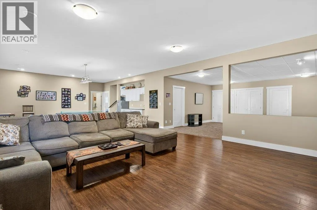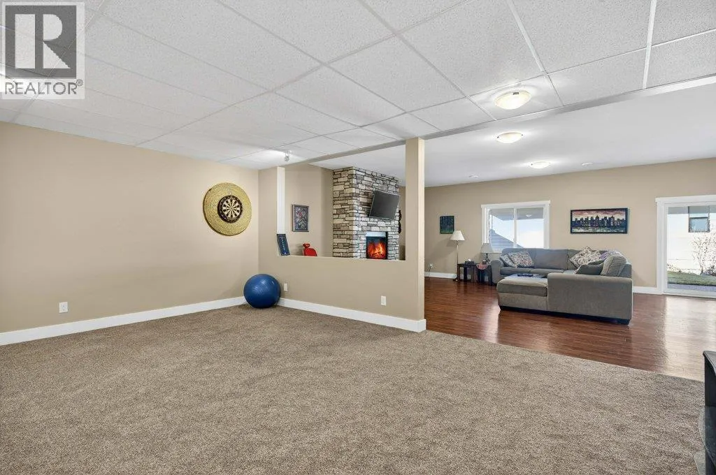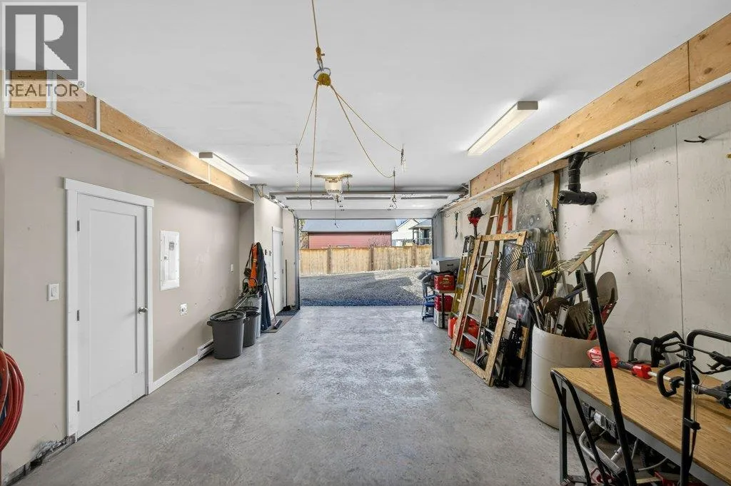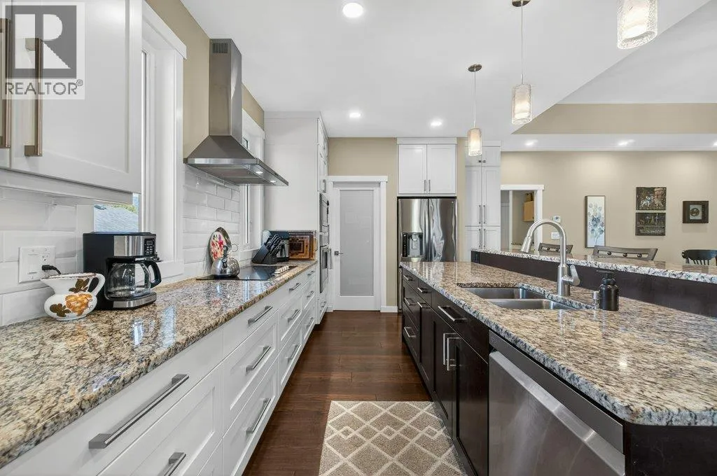 WELCOME TO THIS BEAUTIFULLY FINISHED LEVEL-ENTRY SEMI-CUSTOM HOME with walkout basement, perfectly designed for comfortable family living. The main floor showcases a bright open-concept kitchen, dining, & living area centered around a cozy gas fireplace. The chef-inspired kitchen features a large island, generous cabinetry, and spacious walk-in pantry - ideal for both everyday living & entertaining. Convenient main-floor laundry adds to the thoughtful layout. Step directly from the dining area onto a spacious deck. Designed for year-round enjoyment, the deck offers two separate covered areas - perfectly set up for your hot tub retreat and barbecuing/relaxing with family and friends. 4 bedrms/3 baths, provides ample space for growing families. The walkout basement expands your living area with a large rec room, lots of storage, and direct access to a covered patio. Situated on a quarter-acre lot backing onto Hillcrest School & field, the property offers privacy, and easy access to outdoor recreation. The extra-large garage has room for vehicles, toys, and additional storage. Adding incredible value is the detached carriage house, featuring a 500 sq ft shop complete with 2pc bath. Above, is a 624 sq ft 1 bedrm legal suite with laundry - perfect for extended family, guests, or rental income. This is a rare opportunity to own a beautifully finished & thoughtfully designed home with income potential, workshop space, & prime location. A must-see property that truly has it all! (id:27476)