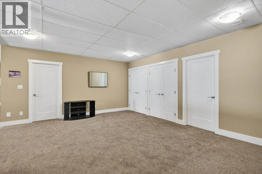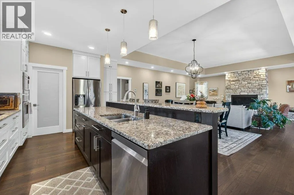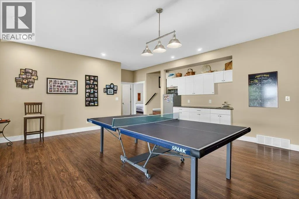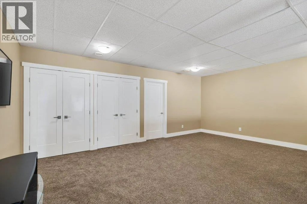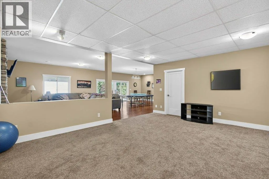 WELCOME TO THIS BEAUTIFULLY FINISHED LEVEL-ENTRY SEMI-CUSTOM HOME with walkout basement, perfectly designed for comfortable family living. The main floor showcases a bright open-concept kitchen, dining, & living area centered around a cozy gas fireplace. The chef-inspired kitchen features a large island, generous cabinetry, and spacious walk-in pantry - ideal for both everyday living & entertaining. Convenient main-floor laundry adds to the thoughtful layout. Step directly from the dining area onto a spacious deck. Designed for year-round enjoyment, the deck offers two separate covered areas - perfectly set up for your hot tub retreat and barbecuing/relaxing with family and friends. 4 bedrms/3 baths, provides ample space for growing families. The walkout basement expands your living area with a large rec room, lots of storage, and direct access to a covered patio. Situated on a quarter-acre lot backing onto Hillcrest School & field, the property offers privacy, and easy access to outdoor recreation. The extra-large garage has room for vehicles, toys, and additional storage. Adding incredible value is the detached carriage house, featuring a 500 sq ft shop complete with 2pc bath. Above, is a 624 sq ft 1 bedrm legal suite with laundry - perfect for extended family, guests, or rental income. This is a rare opportunity to own a beautifully finished & thoughtfully designed home with income potential, workshop space, & prime location. A must-see property that truly has it all! (id:27476)