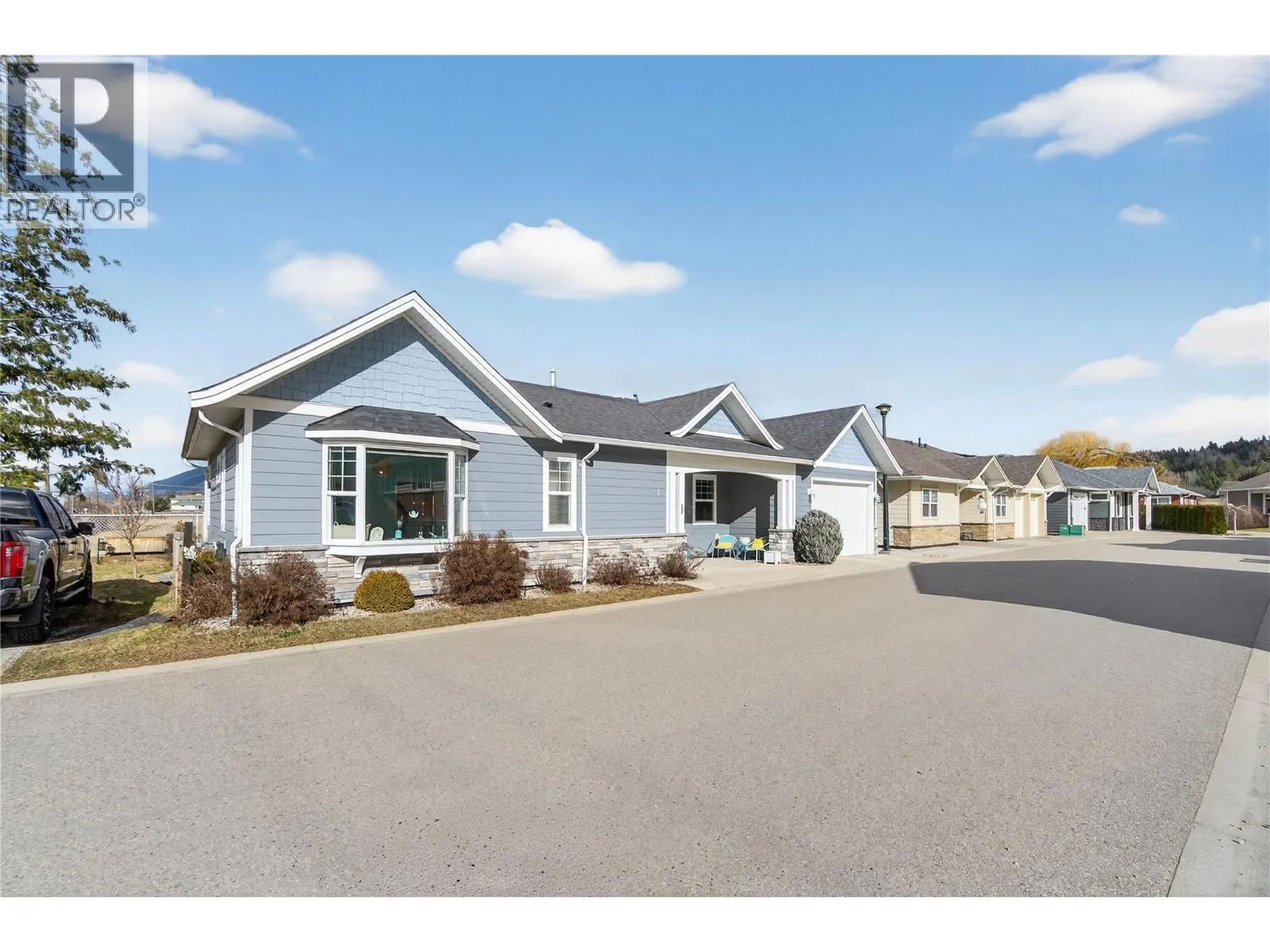 Seldom does a unit offer a 3-bedroom layout, extra parking and yard space, and both front and rear outdoor living areas â all while backing directly onto ALR land and within walking distance to numerous amenities. This home brings all of those features together in one well-appointed package. Located within a well-maintained 55+ strata, this 3-bedroom, 2-bathroom home offers a notably bright and comfortable environment. Numerous windows throughout allow for excellent natural light and showcase the open farmland behind the home, along with views of Bastion Mountain and Mount Ida. The functional layout provides flexibility for guests, hobbies, or office space. Recent updates include freshly painted walls and cabinets, along with new light fixtures, creating a clean, move-in ready interior. Outdoor spaces include a spacious front porch and a private rear patio overlooking the ALR land, offering both sun and shade throughout the day. The additional yard area provides space for gardening, pets, or quiet enjoyment. The property also features a single-car garage and an extra parking space. Conveniently situated less than a 10-minute walk to Piccadilly Mall and Blackburn Park, this home combines a peaceful setting with easy access to everyday amenities. (id:27476)