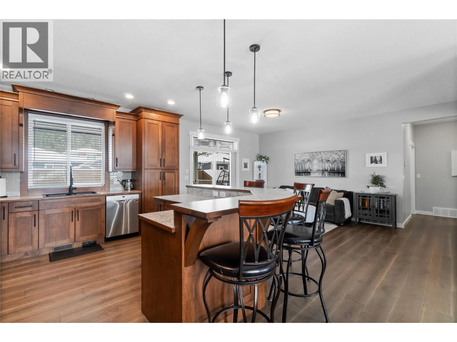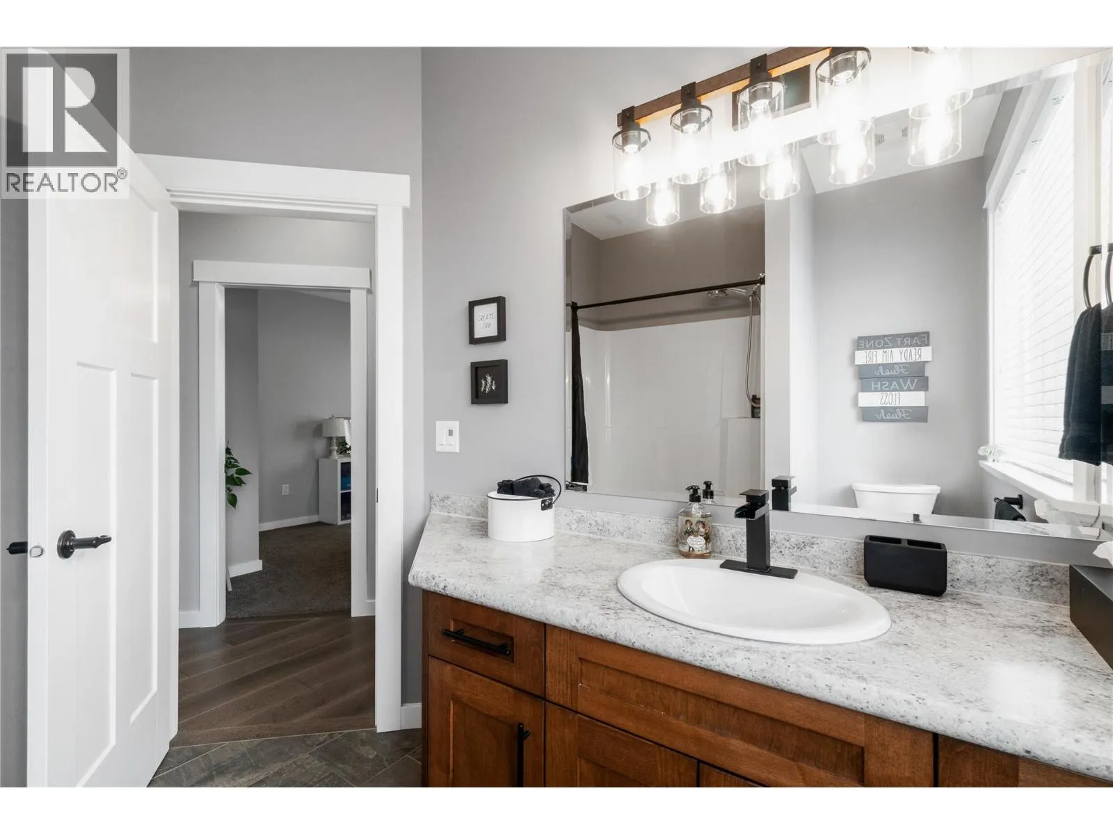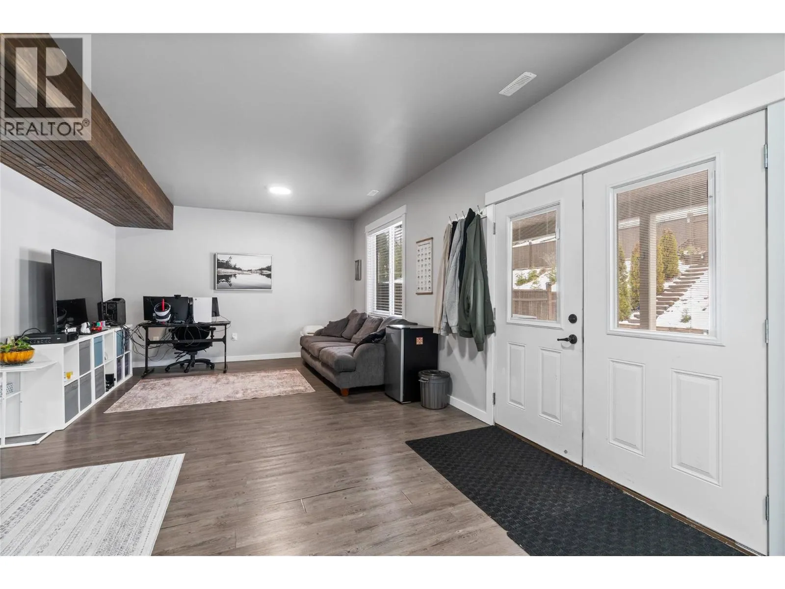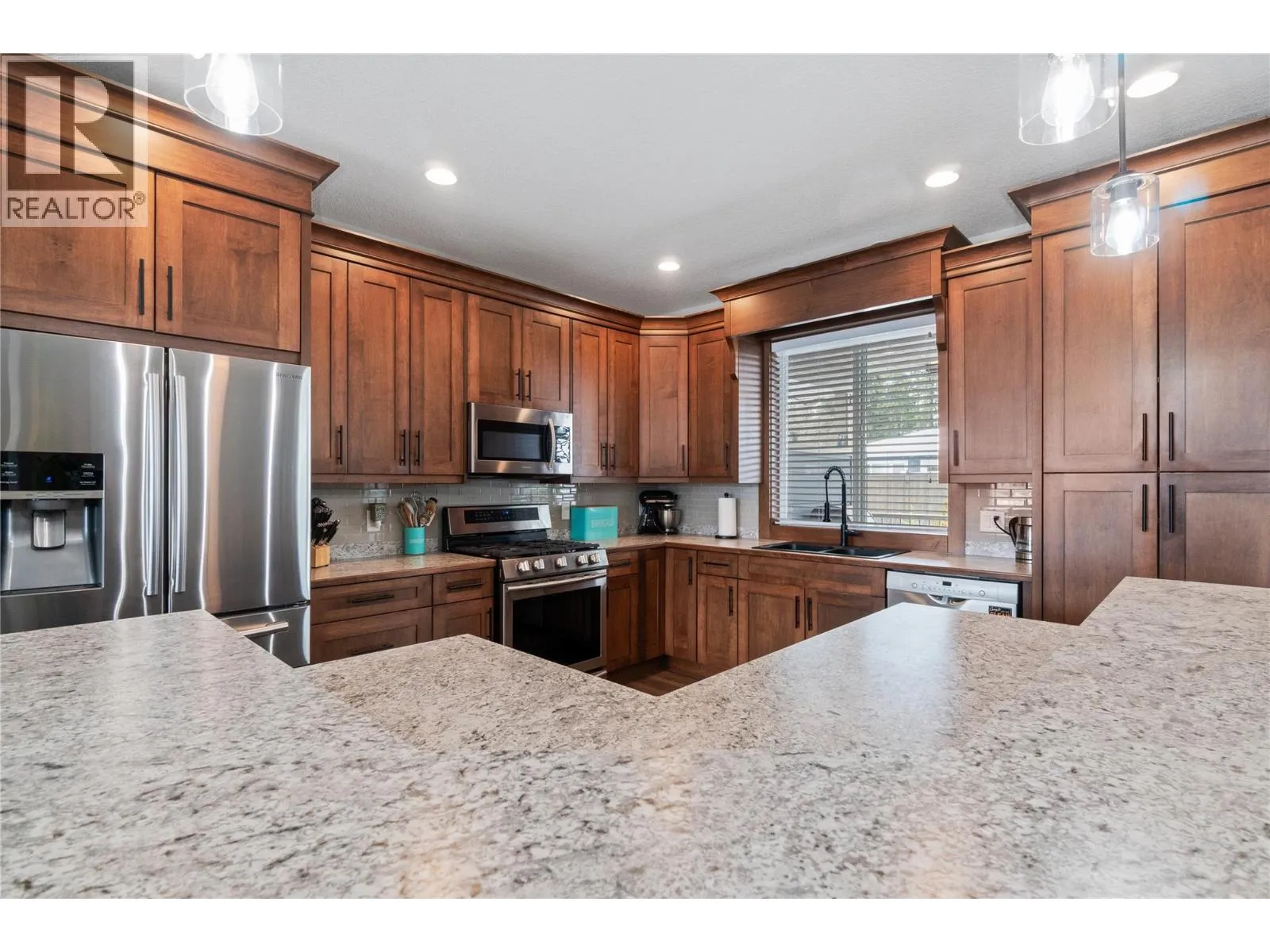 Welcome to this beautiful 4 bedroom, 3 bathroom one-owner semi-custom home in the desirable Hillcrest neighborhoodâperfectly located within walking distance to Hillcrest School. Freshly painted and truly move-in ready, this home offers a bright, open-concept design ideal for both family living and entertaining. The main floor features a spacious layout with a gas stove in the kitchen, seamless flow into the dining and living areas, and access to a covered back deck complete with a BBQ gas hookupâperfect for year-round enjoyment. Two sets of double French doors lead to the backyard, creating a wonderful indoor-outdoor connection. Youâll also find the primary bedroom along with two additional bedrooms on the main level, providing convenient one-level living. The lower level offers even more space with a large recreation room and a fourth bedroomâideal for guests, teenagers, or a home office. Step outside to enjoy the thoughtfully designed, low-maintenance yard featuring a turf front lawn, in-ground sprinkler system, storage shed, and two custom rock retaining walls. The covered patio is the perfect place to unwind, complete with a 4-person hot tub included. With a double car garage, ample additional parking, and room for your RV, this property offers both comfort and practicality in a sought-after, family-friendly neighborhood. (id:27476)