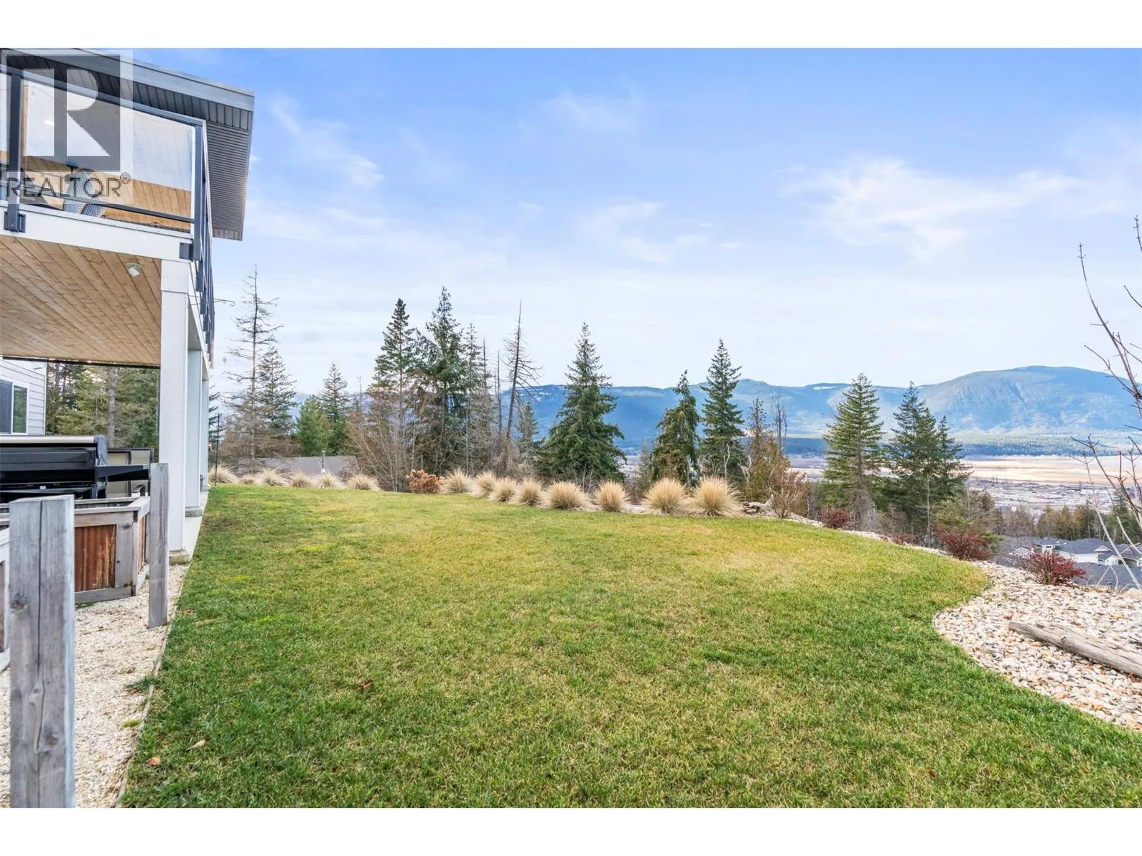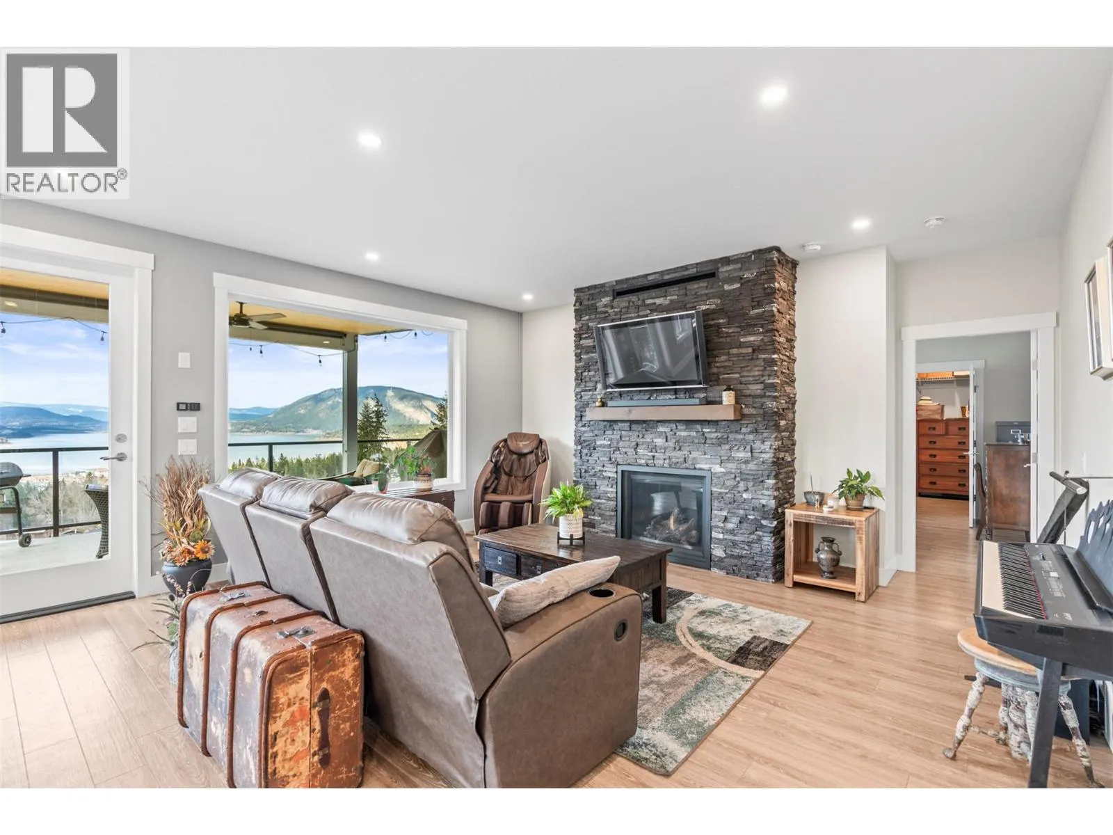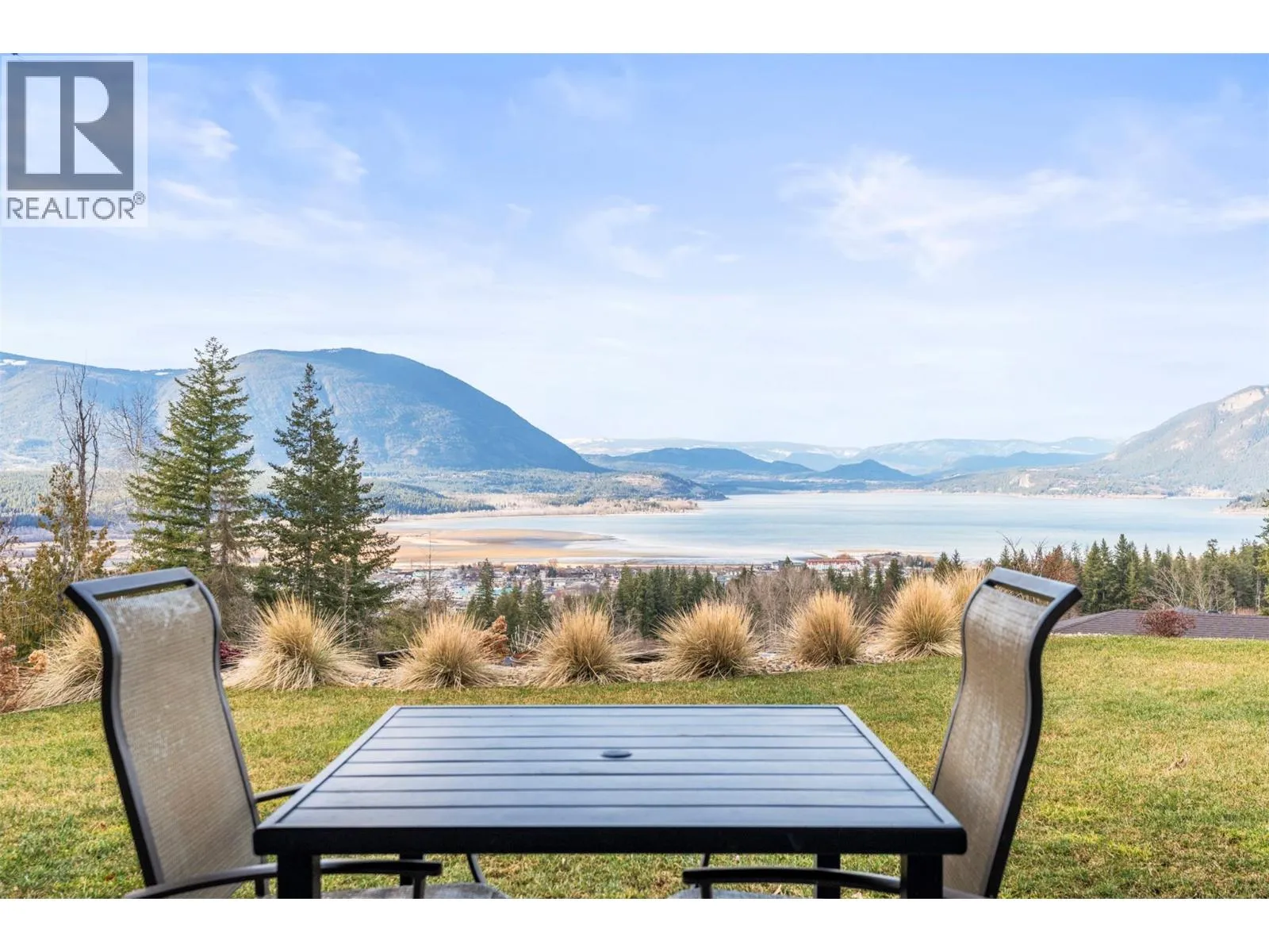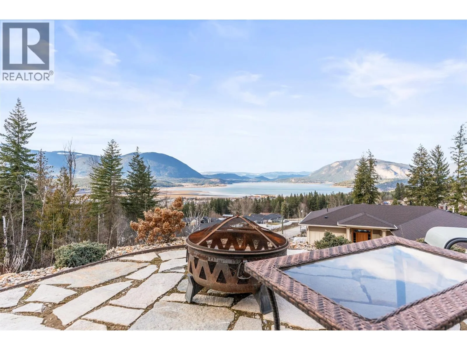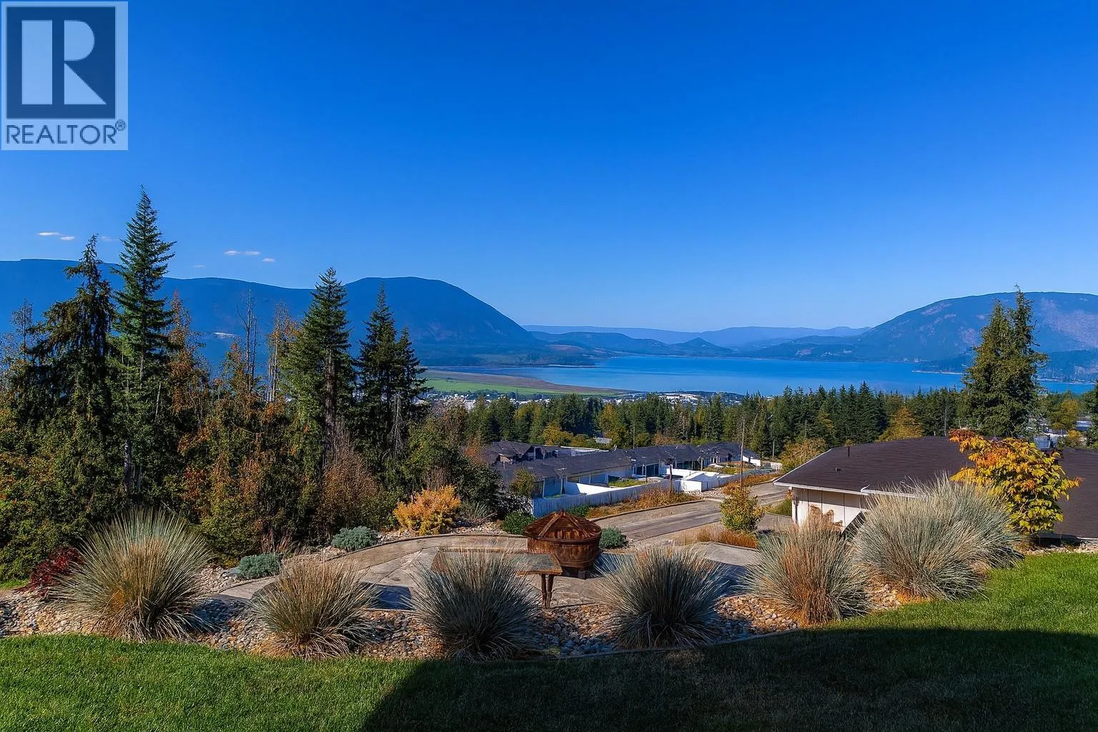 Welcome to this stunning, custom built, lake view rancher with walk out basement in Salmon Armâs desirable Byersview subdivision. Beautifully designed, this home perfectly captures sweeping, unobstructed lake and mountain views. The main level offers a bright, open-concept layout with large windows that draw the outside into every space. The kitchen is both functional and refined, featuring quartz countertops, gas range, wine fridge, and a dreamy yet practical walk-in pantry. From the dining room, step onto a private, heated covered deckâan ideal place to soak in sunsets & Northern lights. A floor-to-ceiling rock fireplace adds warmth and character to the living room. The primary bedroom with walk in closet and en suite is complete with dual sinks & an oversized dual walk-in shower. A second bedroom, full bath & laundry area complete the main floor. The lower level adds significant flexibility with a spacious rec room, bedroom, & full bathroom for the main home. The walk-out basement also contains a full legal suite with separate entrance, laundry, & soundproofingâideal for rental income or extended family while maintaining privacy. External chair lift for accessibility. Additional features include a heated double garage with stage 2 EV charger, RV power, and rough-in for a pool. Outside, the property is thoughtfully landscaped with raised garden beds & fire pit area, maximizing privacy. A well-rounded opportunity offering lifestyle, views & income potential all in one. (id:27476)