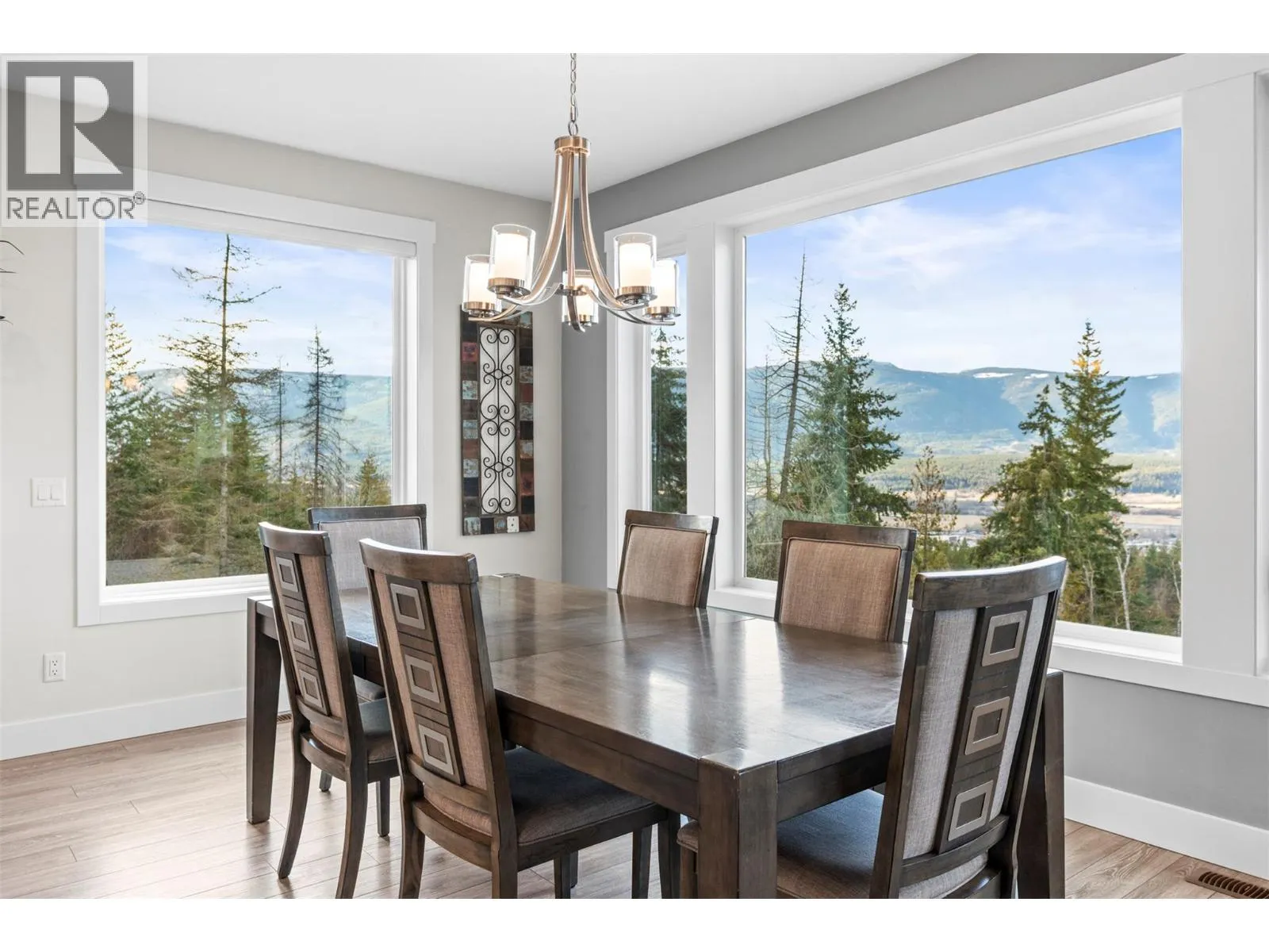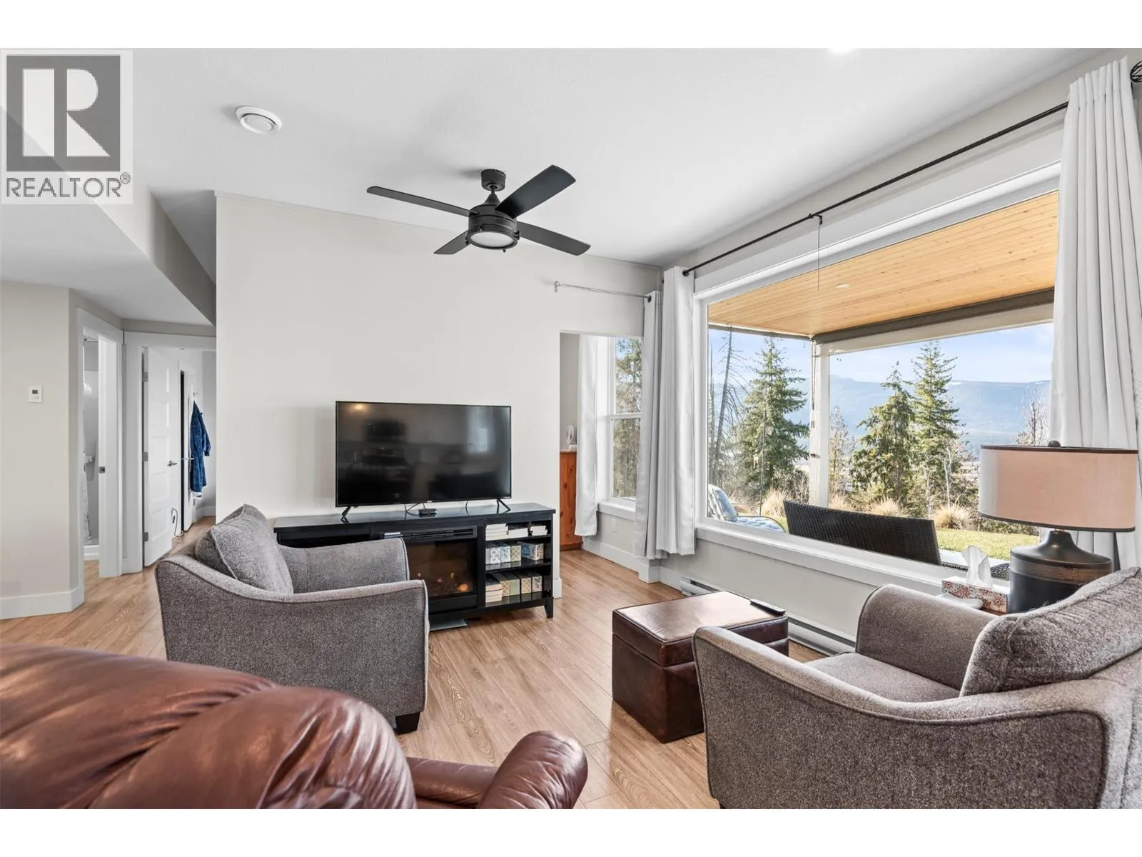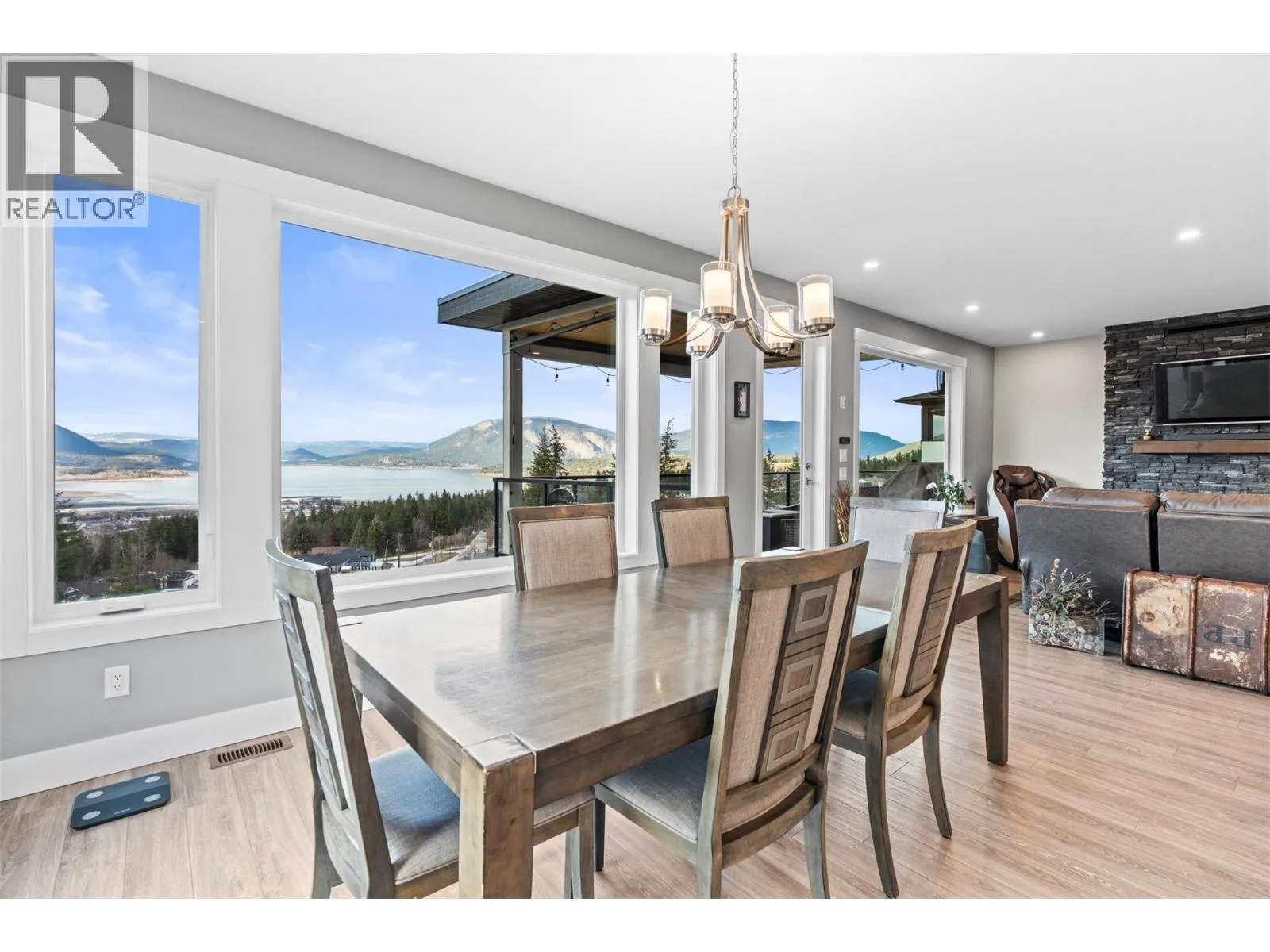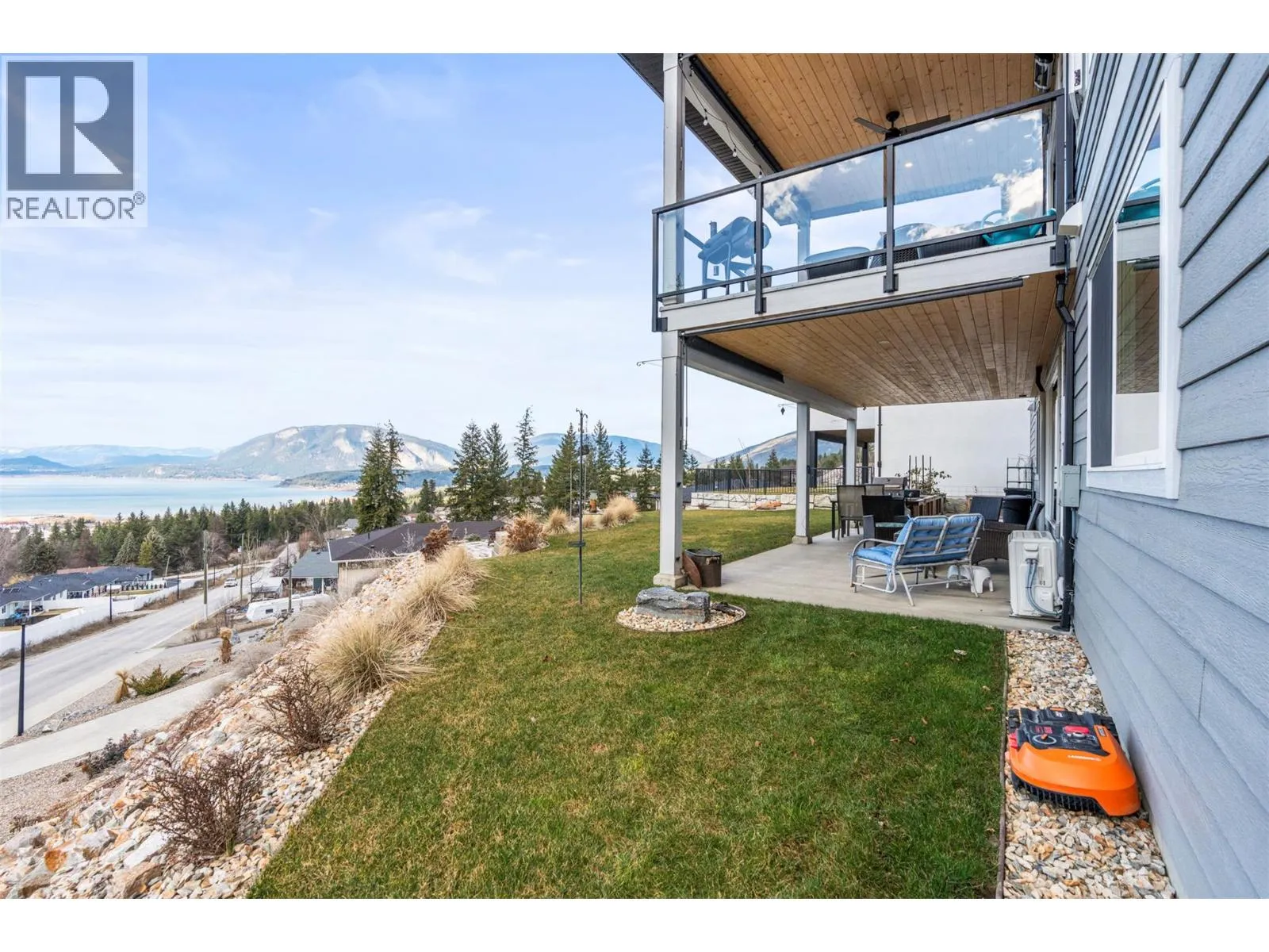 Welcome to this stunning, custom built, lake view rancher with walk out basement in Salmon Armâs desirable Byersview subdivision. Beautifully designed, this home perfectly captures sweeping, unobstructed lake and mountain views. The main level offers a bright, open-concept layout with large windows that draw the outside into every space. The kitchen is both functional and refined, featuring quartz countertops, gas range, wine fridge, and a dreamy yet practical walk-in pantry. From the dining room, step onto a private, heated covered deckâan ideal place to soak in sunsets & Northern lights. A floor-to-ceiling rock fireplace adds warmth and character to the living room. The primary bedroom with walk in closet and en suite is complete with dual sinks & an oversized dual walk-in shower. A second bedroom, full bath & laundry area complete the main floor. The lower level adds significant flexibility with a spacious rec room, bedroom, & full bathroom for the main home. The walk-out basement also contains a full legal suite with separate entrance, laundry, & soundproofingâideal for rental income or extended family while maintaining privacy. External chair lift for accessibility. Additional features include a heated double garage with stage 2 EV charger, RV power, and rough-in for a pool. Outside, the property is thoughtfully landscaped with raised garden beds & fire pit area, maximizing privacy. A well-rounded opportunity offering lifestyle, views & income potential all in one. (id:27476)