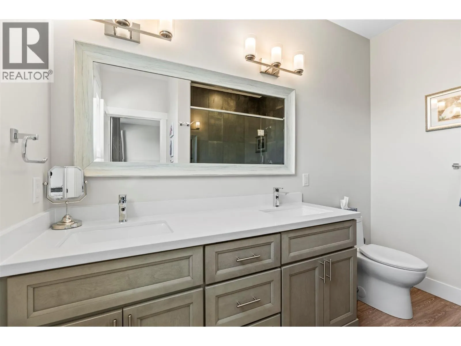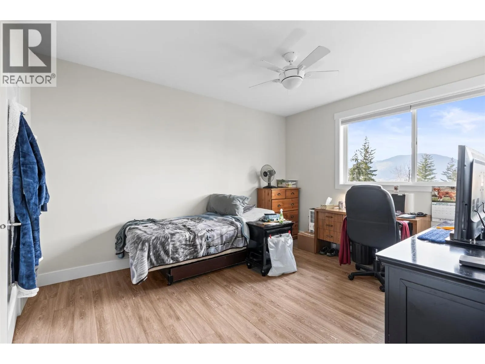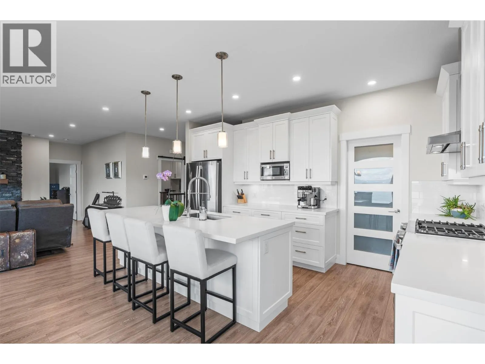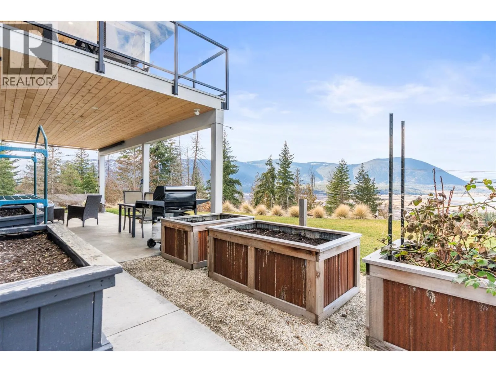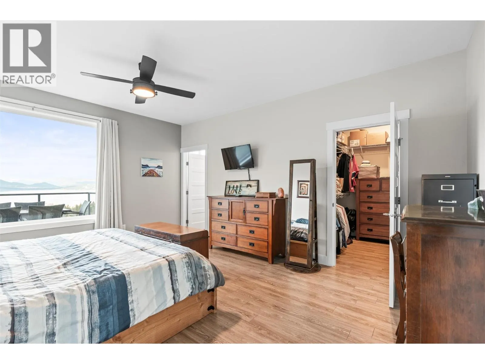 Welcome to this stunning, custom built, lake view rancher with walk out basement in Salmon Armâs desirable Byersview subdivision. Beautifully designed, this home perfectly captures sweeping, unobstructed lake and mountain views. The main level offers a bright, open-concept layout with large windows that draw the outside into every space. The kitchen is both functional and refined, featuring quartz countertops, gas range, wine fridge, and a dreamy yet practical walk-in pantry. From the dining room, step onto a private, heated covered deckâan ideal place to soak in sunsets & Northern lights. A floor-to-ceiling rock fireplace adds warmth and character to the living room. The primary bedroom with walk in closet and en suite is complete with dual sinks & an oversized dual walk-in shower. A second bedroom, full bath & laundry area complete the main floor. The lower level adds significant flexibility with a spacious rec room, bedroom, & full bathroom for the main home. The walk-out basement also contains a full legal suite with separate entrance, laundry, & soundproofingâideal for rental income or extended family while maintaining privacy. External chair lift for accessibility. Additional features include a heated double garage with stage 2 EV charger, RV power, and rough-in for a pool. Outside, the property is thoughtfully landscaped with raised garden beds & fire pit area, maximizing privacy. A well-rounded opportunity offering lifestyle, views & income potential all in one. (id:27476)