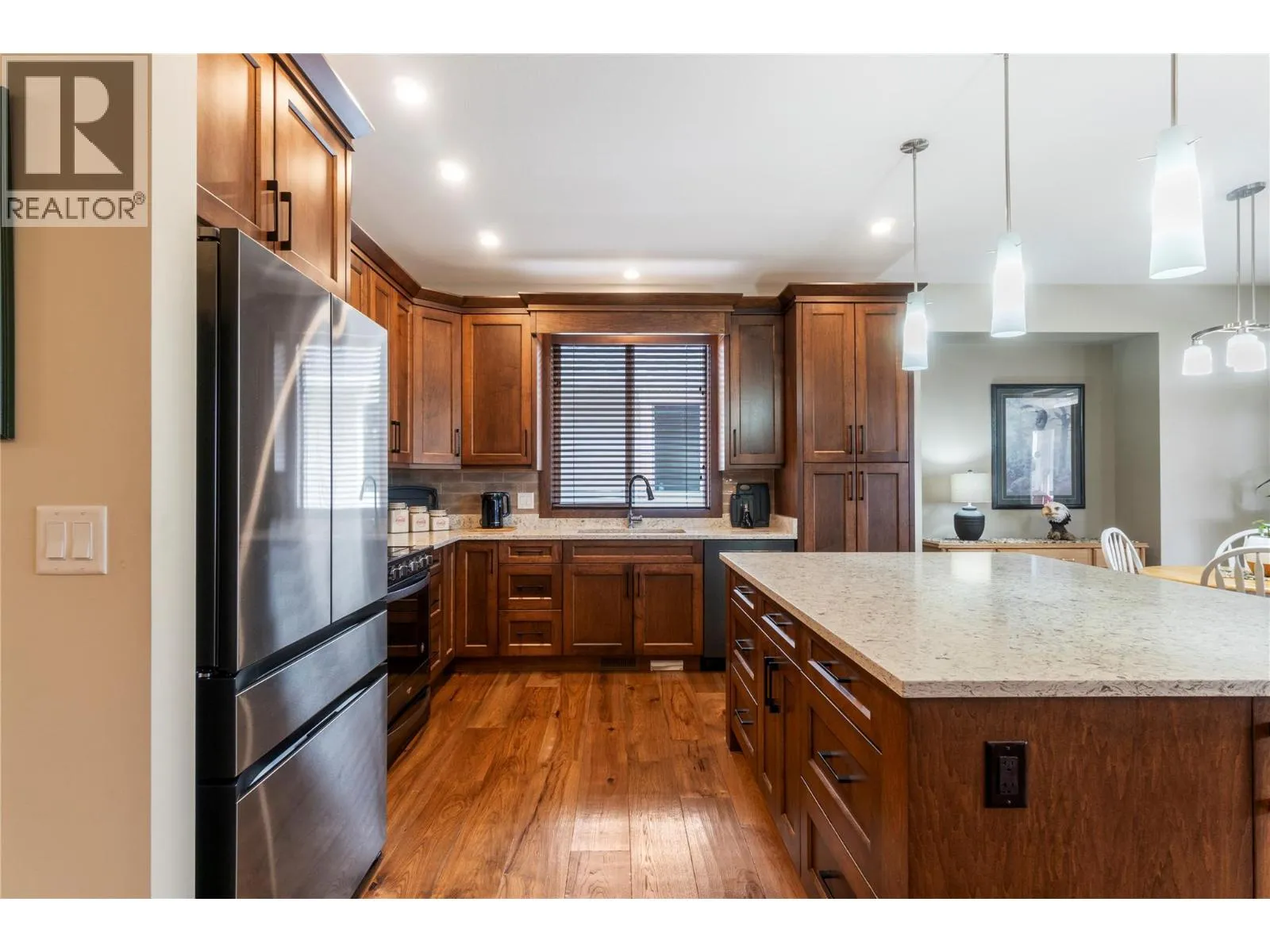 LOCATION LOCATION LOCATION...........Beautifully designed 4-bedroom, 3-bathroom rancher with a full daylight basement offering over 3100 sq ft of well-appointed living space. Generous kitchen features a large quartz island with eating bar, hardwood flooring which flows seamlessly into the open-concept living and dining areas, complete with a cozy gas fireplace and a charming dining alcove with 9-foot ceilings throughout and direct access to a generous 23' x 10'6 covered deck with natural gas hookup, automatic sunshade and stairs leading down to the yard. The primary bedroom features a spa-inspired ensuite with a soaker tub, separate shower, double sinks, heated tile floors, and an impressive 12 x 6 walk-in closet. The main floor is completed by a second bedroom, full bathroom, and a convenient laundry room with sink and access to the 23 x 22 double garage with epoxy floors. Descending into the basement, you will be pleasantly surprised by the spacious open family room with direct access to a covered patio, along with two generous bedrooms, a full bathroom, and plenty of storage space. Well maintained fenced yard, to keep the kids and pets safe. This home is close to Hillcrest Elementary and walking trails. Do not wait on this one. (id:27476)
