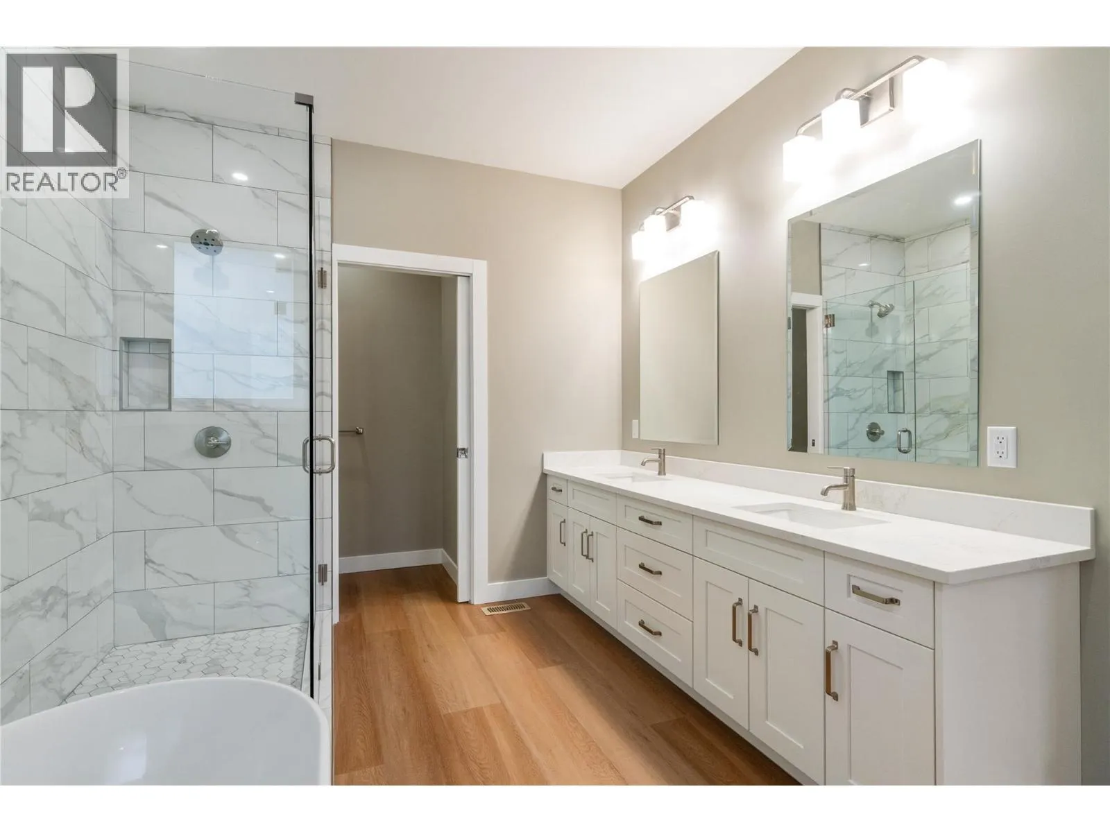 This is your opportunity to own a new build in Salmon Arm's Lambs Hill Subdivision! Located in a quiet, family-friendly neighborhood, this brand-new 4-bedroom, 3-bathroom rancher with walk-out basement offers the perfect combination of luxury and convenience. With 3,400 sq ft of finished living space on a 0.21-acre lot, this home features a bright, open concept layout with 11-foot ceilings in the living room and a large kitchen featuring a 9-foot island ideal for entertaining. Enjoy a 27-foot wide partially covered deck off the living room, perfect for outdoor dining or relaxing with mountain views. The walkout basement will be fully finished with 2 bedrooms and a bathroom, offering additional space for family or guests. Located just minutes from parks, schools, and grocery stores, this home is the perfect setting for modern living. (id:27476)