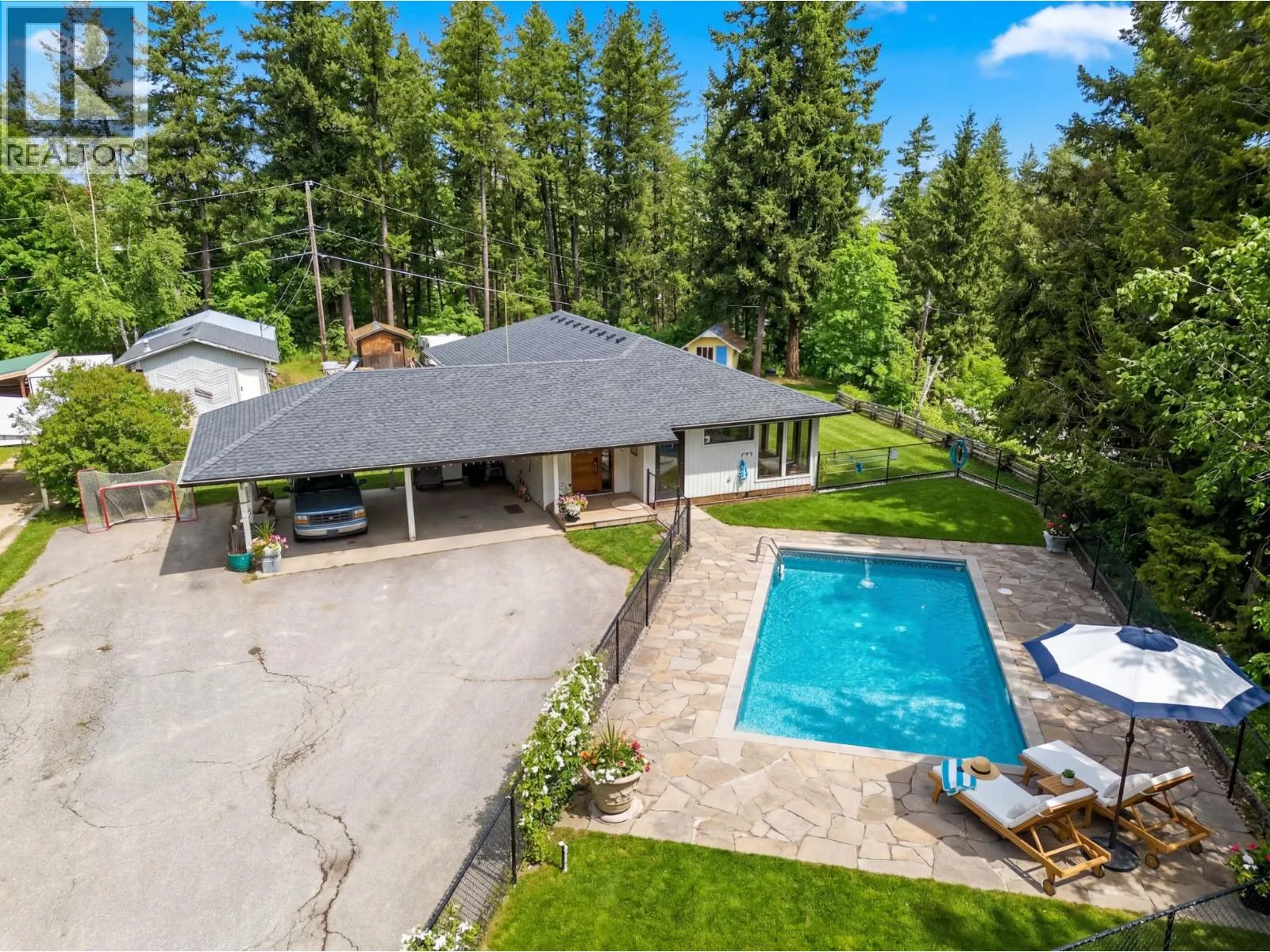 Set on nearly half an acre in town, this beautifully renovated rancher offers views and a functional layout. The main floor features hardwood flooring, 3 bedrooms and 2 bathrooms, including a comfortable primary bedroom with stunning on-suite and walk in closet. The open concept kitchen and living space has a cozy feel with large windows and lake and mountain views. The updated kitchen, has granite counters, gas range and plenty of room for entertaining. Downstairs, is an additional 1130 SF currently used as a rec room and full of potential for an additional bedroom or two and plumbed ready for a bathroom. Outside, enjoy the in-ground pool, shop, fire pit and ample parking for cars, boats or and RV. This is a rare chance to own this amazing property on old Auto Road! (id:27476)