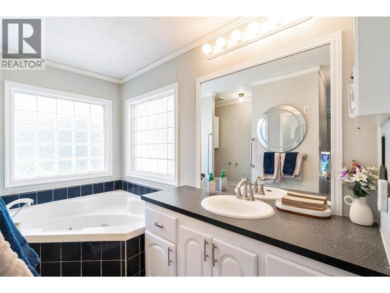 This beautifully updated 2 bed, 2 bath home is ideally located just a short walk to the local corner store with gas, elementary school, library, community hall, seniors centre, scenic trails, and bike path leading to Silver Creek Community Park. And still only 20 minutes from downtown Salmon Arm. Step inside to a bright, open-concept layout featuring extra-large windows that flood the living and dining areas with natural light. The home has been thoughtfully updated with durable vinyl tile flooring throughout, with enough additional materials included for a planned future ensuite upgrade. Enjoy peace of mind with new skirting and professional levelling completed last year. The spacious primary bedroom offers a built-in closet and private 4-piece ensuite. While the 2nd bathroom has been upgraded into a convenient ensuite giving family members or guests additional privacy. Second bedroom is currently used as an exercise room and easily converted into a guest suite with a cabinet Murphy bed. Outside, youâll find a covered deck with optional catio, low-maintenance landscaping, a storage shed, and access to a storage compound behind the park. A wheelchair ramp is also neatly stored under the deck for future use if needed. Pet lovers will appreciate that this is one of the few parks allowing larger dogs (with park approval) please request park rules for full details. A fantastic opportunity for comfortable, flexible living in a welcoming community! (id:27476)