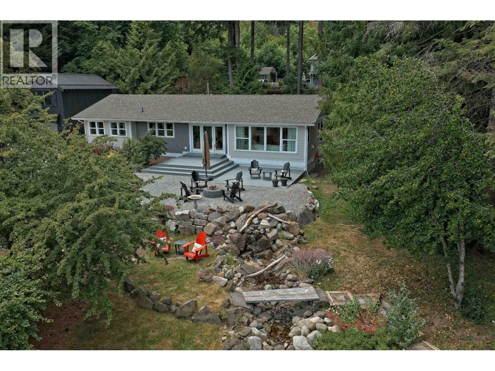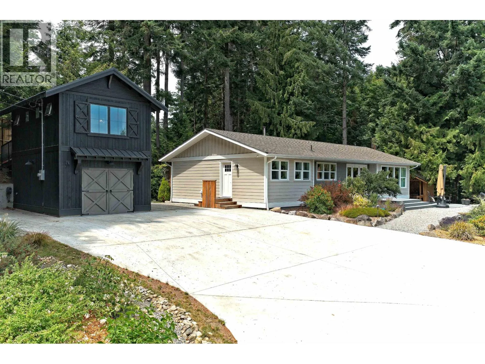 Close to town yet private, this one-level home on 0.66 acres offers partial ocean views, great light, quiet neighbours, municipal water, and forested buffers. Since 2017, the home and land have been professionally upgraded using top materials and smart design. Features include a chefs kitchen, 2 bedrooms, 2 baths, a sunroom, hardwood and heated tile floors, and efficient heating (woodstove, gas, electric). Custom details-reclaimed wood walls, wired-in speakers, live-edge TV hider-add charm. A detached 2-story garage has a finished space with fireplace, heated floors, and a private patio with fire pit. All systems have been updated: plumbing, electrical, septic, doors, windows, and insulation. The yard is landscaped and low-maintenance. (id:27476)