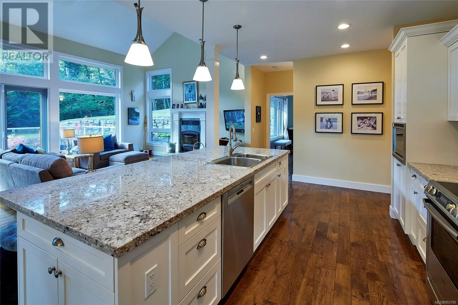 In great company among some of the Island's finest farms and estates, this 10 acre country home focuses on comfort, style and relaxed country luxury. With copious natural light and scenic indoor/outdoor relationships, the contemporary feel blends seamlessly with the historic massing that anchors the home to its natural 10 acre setting. Essentially main floor living, the superbly efficient floor plan allows private guest level and media/music loft for maximum flexibility under roof. The kitchen is equipped to entertain with high performance appointments including stainless appliance suite and large central island. The heated triple car garage provides exceptional work/storage space with private office/studio loft above. Modern back up generator and EV charging station. Extensive stone work and thoughtful landscape architecture lend gentle contours to the grounds and gardens. Private, quiet on Mt Maxwell water system, school bus route and just minutes to town. A sensational property! (id:27476)