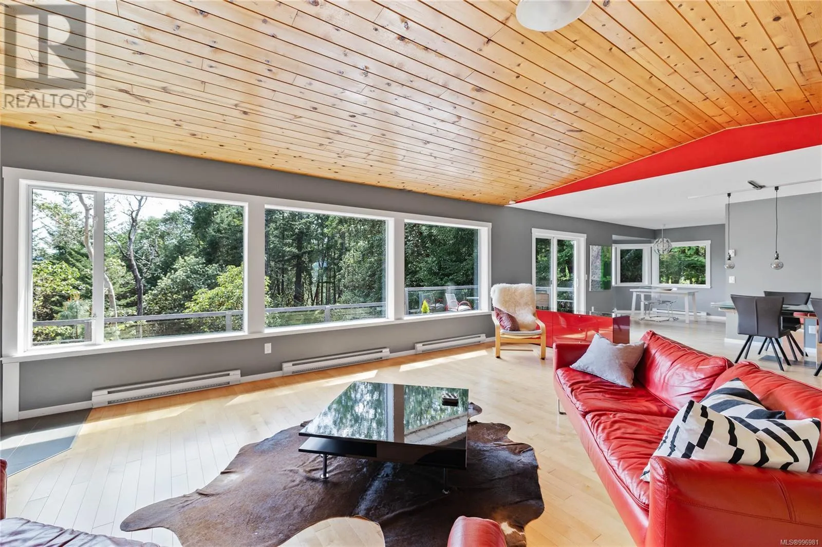 Discover the perfect blend of privacy, style, and natural beauty in this stunning west coast home, set on over five peaceful, south-facing acres at the end of a quiet lane. Thoughtfully updated and artfully integrated into its surroundings, this one-level residence offers modern comfort with a relaxed, coastal vibe. Inside, vaulted pine ceilings and expansive windows flood the home with light, enhancing its warm, airy feel. The sleek, contemporary kitchen features generous cabinetry and clean lines, ideal for everyday living and effortless entertaining. Step outside to an expansive, sun-drenched deck designed for outdoor living, surrounded by lush, natural landscape. A detached double garage includes a versatile studio/flex spaceâperfect for a home office or inspiring art studio. Located just five minutes from Ganges, this centrally situated property is a rare opportunity to embrace Salt Spring Islandâs contemporary lifestyle in a setting of pure tranquility. (id:27476)