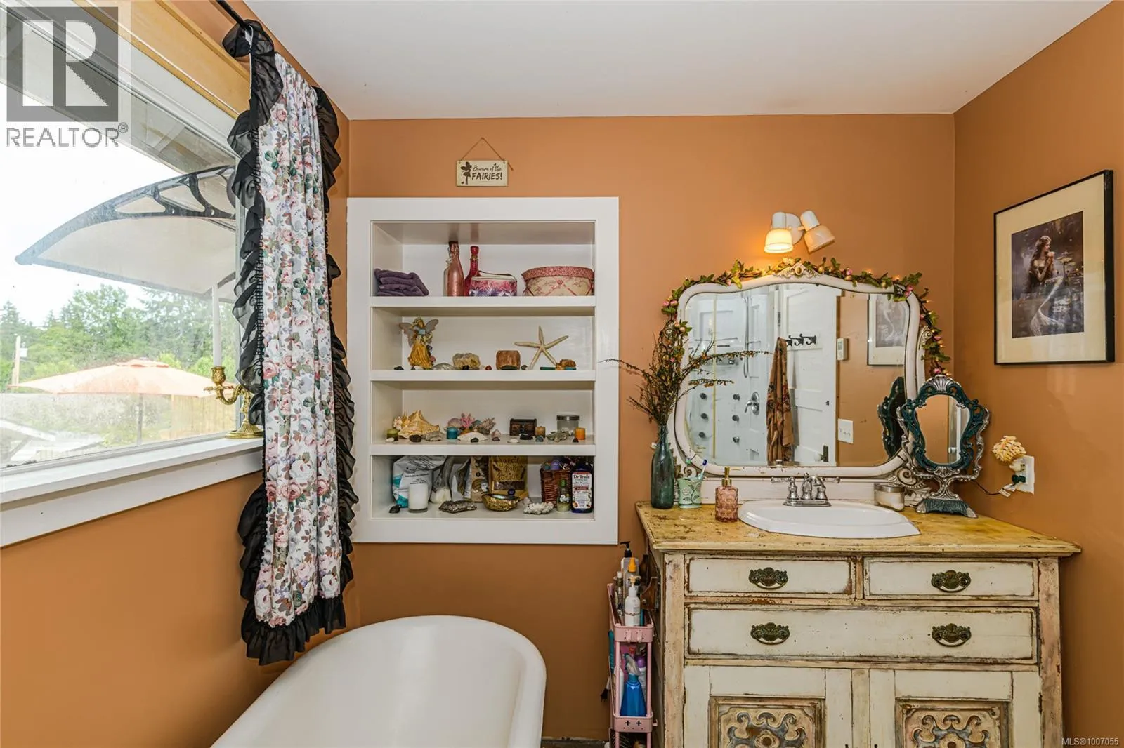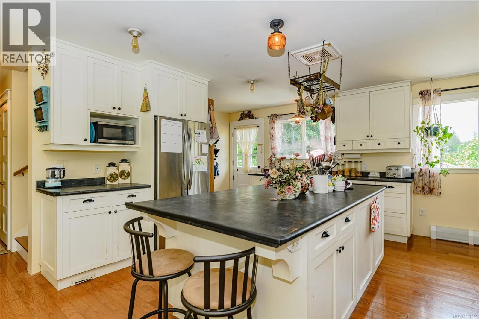 Cozy yet spacious 3-level home full of character and charm, featuring antique finishes throughout. Ideal for multi-generational living or guest accommodation. Separate 1-bedroom studio offers flexible use as guest space, office, or rental potential. Situated on a large, fully fenced lot with gated access to forest trails. Enjoy a wide variety of established fruit trees including cherry, apple, plum, peach, fig, grapes, blackberries, and raspberries. Tucked away on a quiet cul-de-sac, yet walking distance to town, ocean boardwalk, schools, rec centres, dog park, and public pool. Recent updates include new septic system, fenced backyard, new gutters, and fresh interior/exterior paint. A unique property offering character, privacy, and convenience. (id:27476)