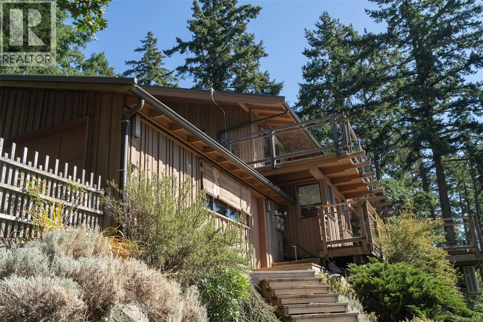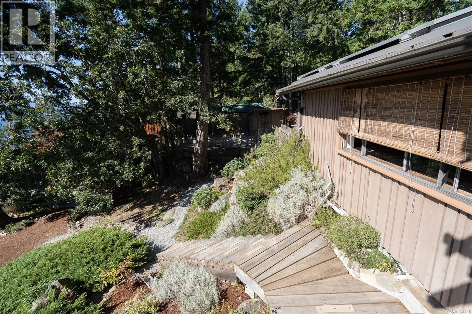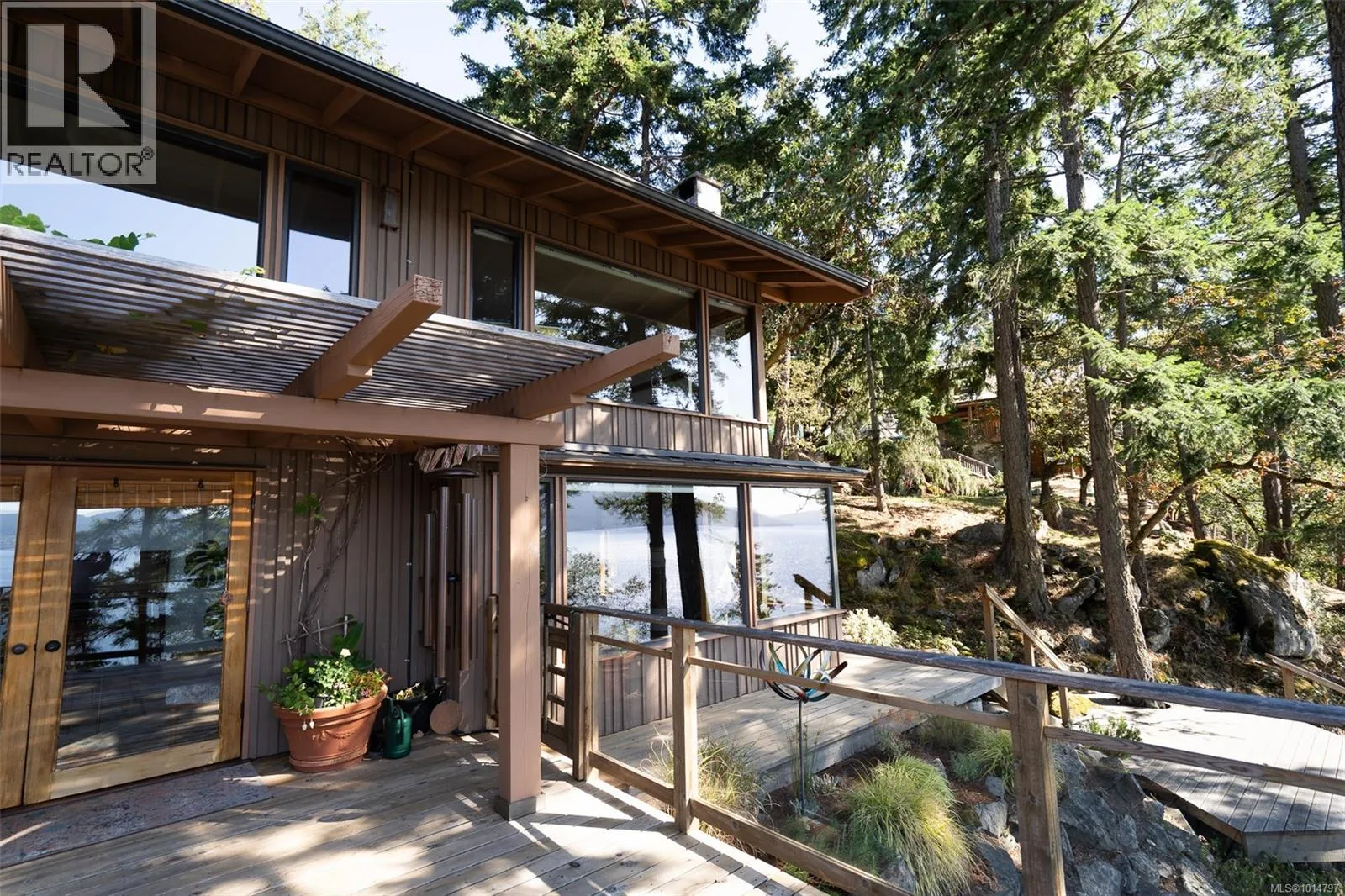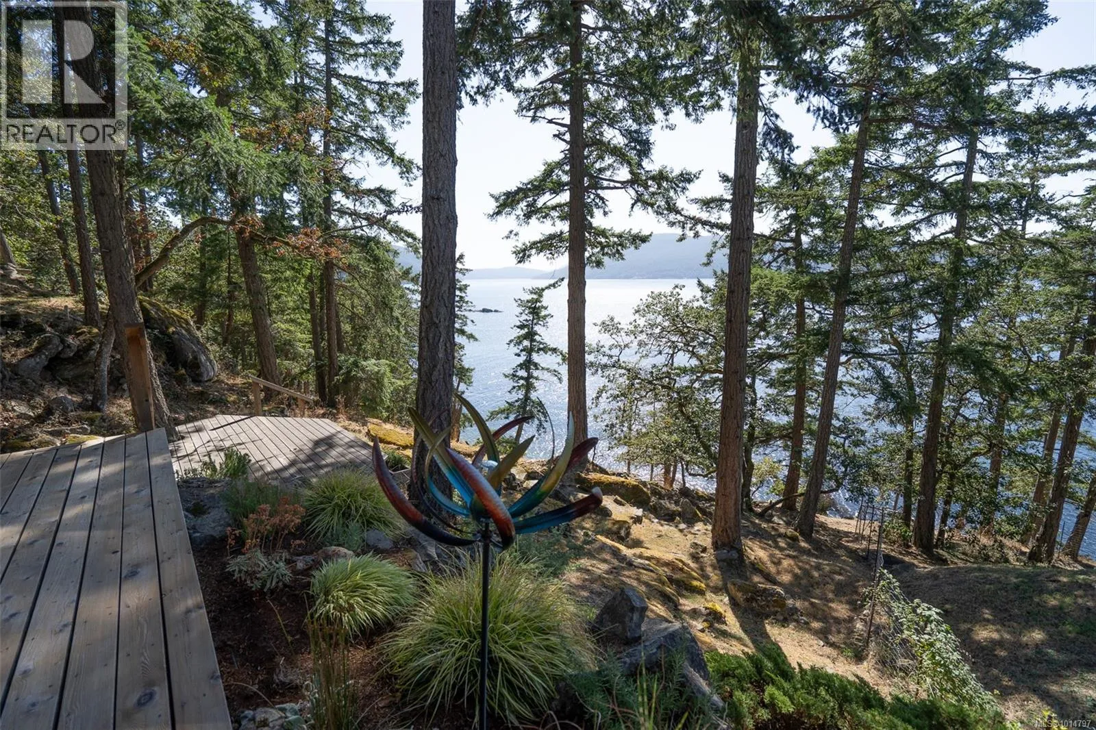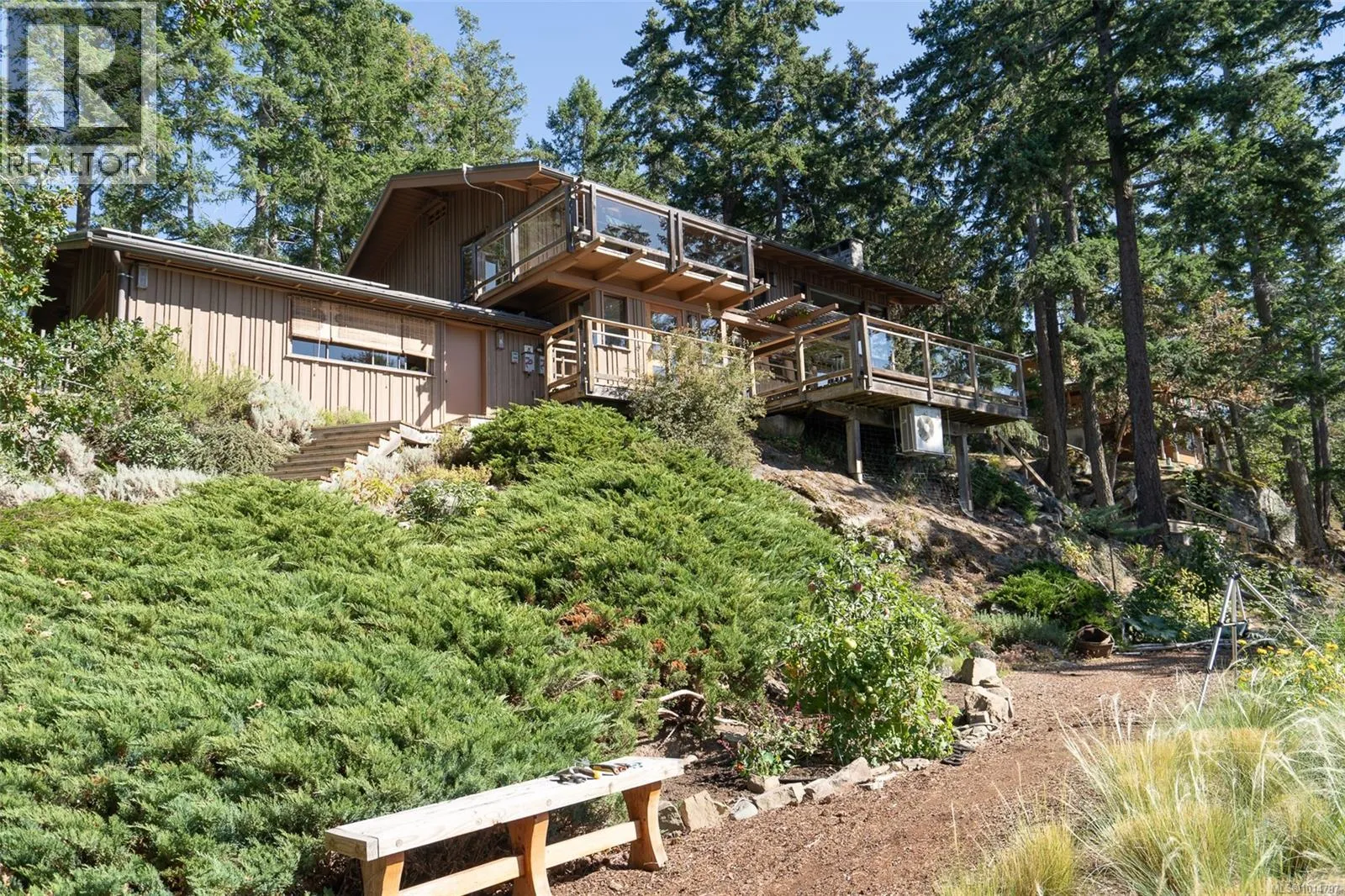 Architect-designed Hank Schubart waterfront retreat â sun-drenched, thoughtfully composed spaces with panoramic southwest views of Sansum Narrows and Vancouver Island. Move-in ready 3 bed, 2 bath plus serene studio (perfect for yoga, meditation or guests) with over 2,400 sq ft of finished living and an open, luminous main living area that flows to the water. Extensive upgrades include grid-tied solar with battery storage, metal roof, upgraded systems, and impeccably designed manicured landscaping with rainwater collection. A half-acre is deer-fenced containing a productive food garden that brims with annuals, perennials, shrubs and trees. Quiet, private yet easy access to ferries and area trails â a sustainable, restorative coastal haven where light, landscape and design harmonize. (id:27476)