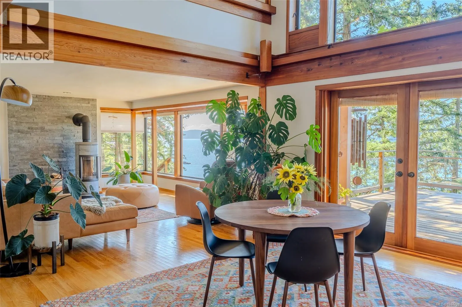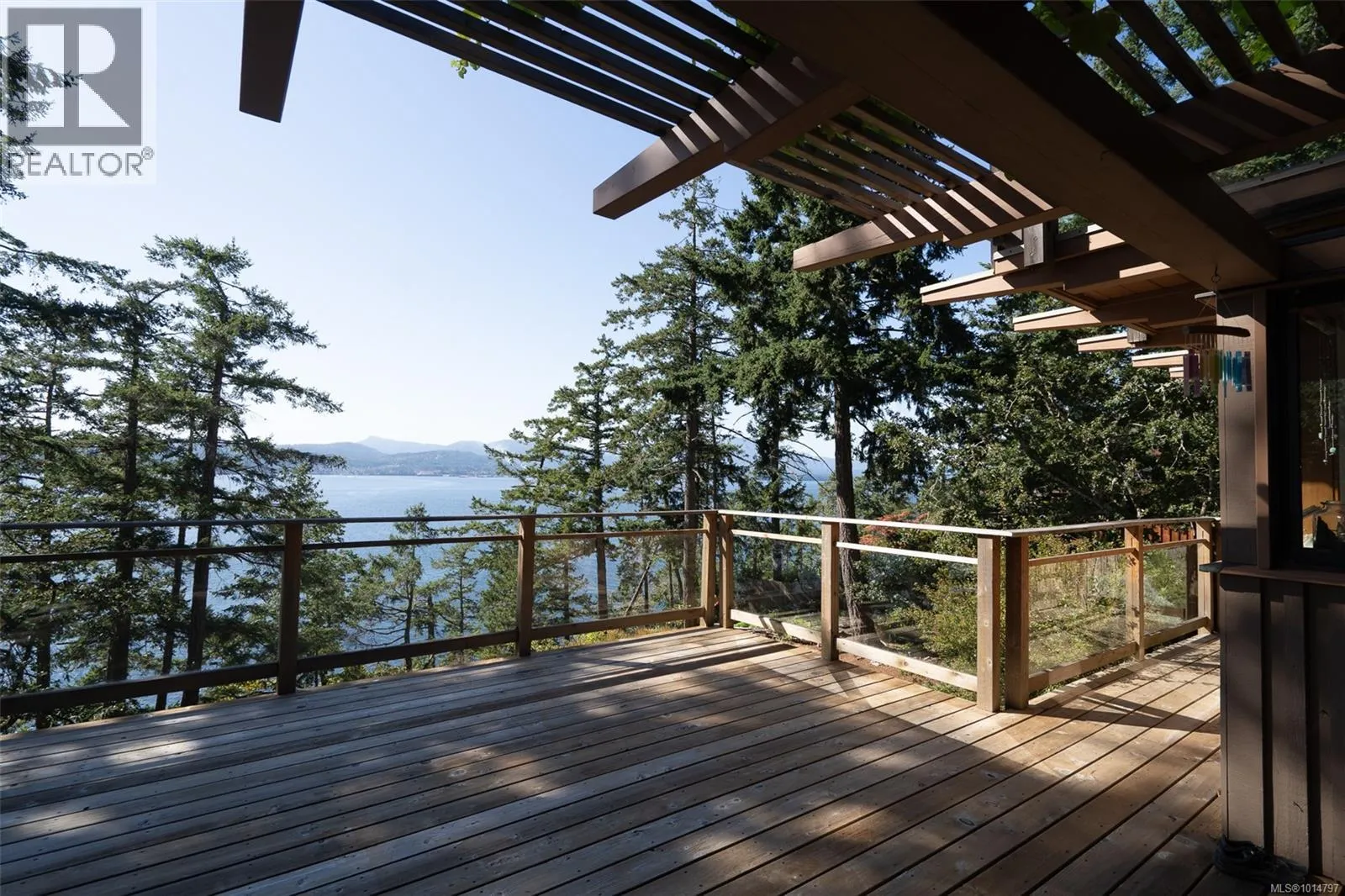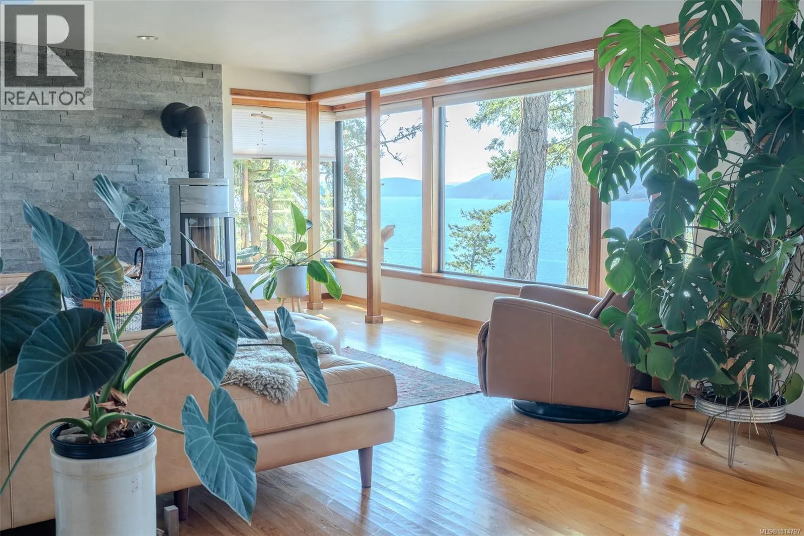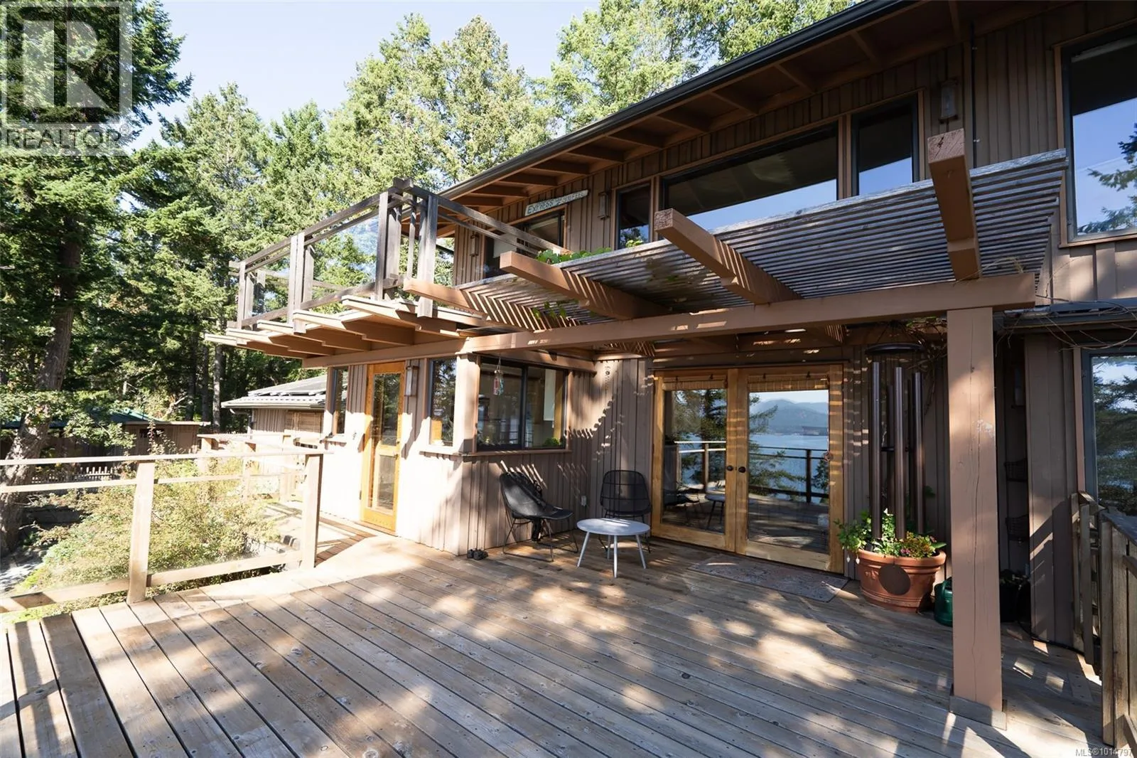 Architect-designed Hank Schubart waterfront retreat â sun-drenched, thoughtfully composed spaces with panoramic southwest views of Sansum Narrows and Vancouver Island. Move-in ready 3 bed, 2 bath plus serene studio (perfect for yoga, meditation or guests) with over 2,400 sq ft of finished living and an open, luminous main living area that flows to the water. Extensive upgrades include grid-tied solar with battery storage, metal roof, upgraded systems, and impeccably designed manicured landscaping with rainwater collection. A half-acre is deer-fenced containing a productive food garden that brims with annuals, perennials, shrubs and trees. Quiet, private yet easy access to ferries and area trails â a sustainable, restorative coastal haven where light, landscape and design harmonize. (id:27476)