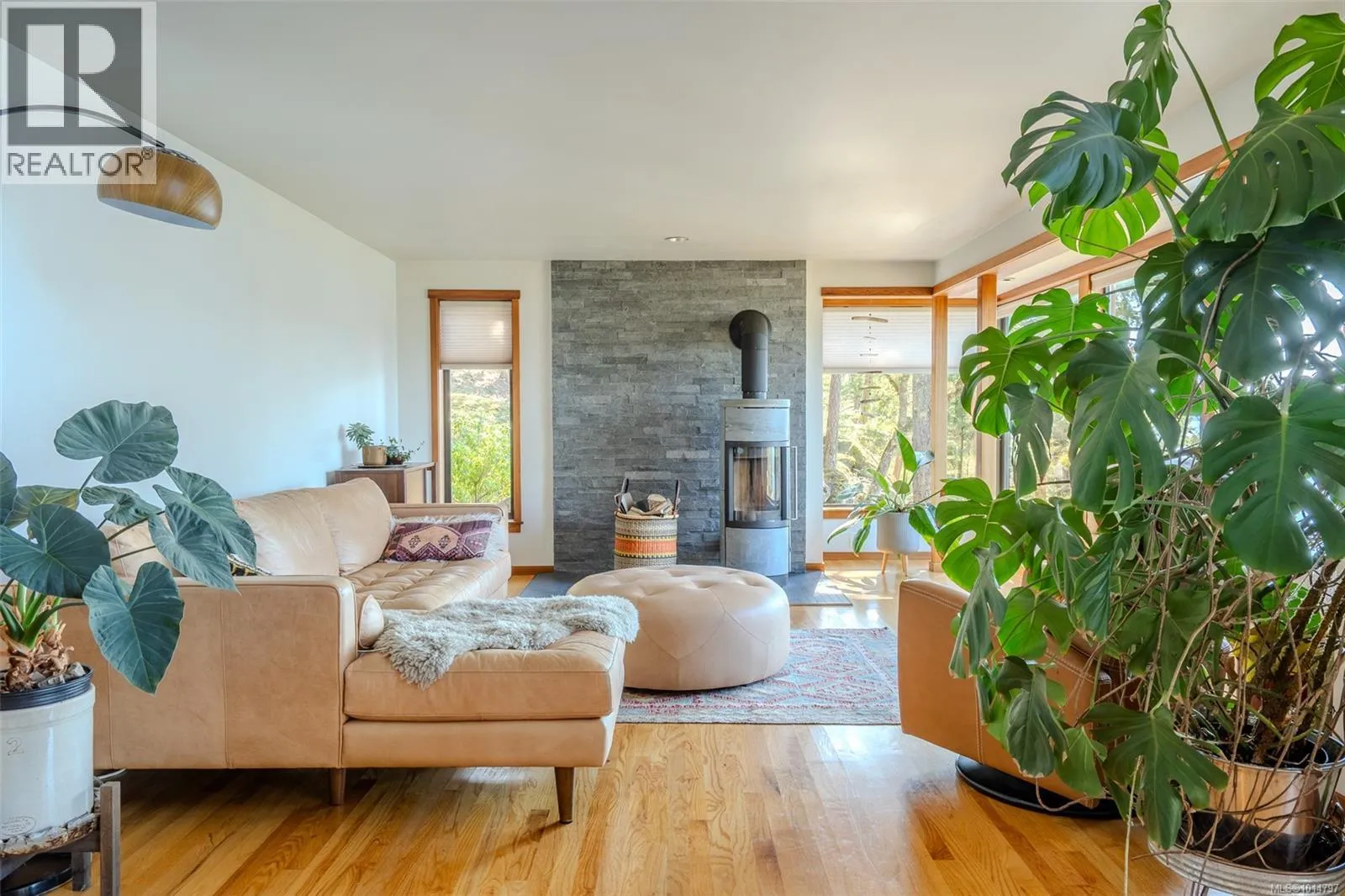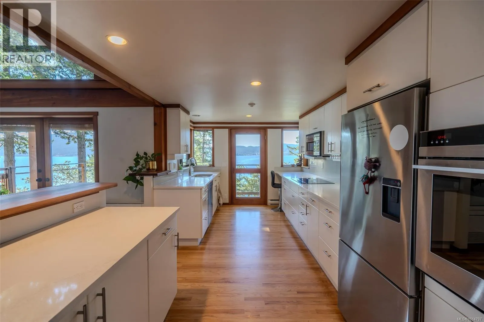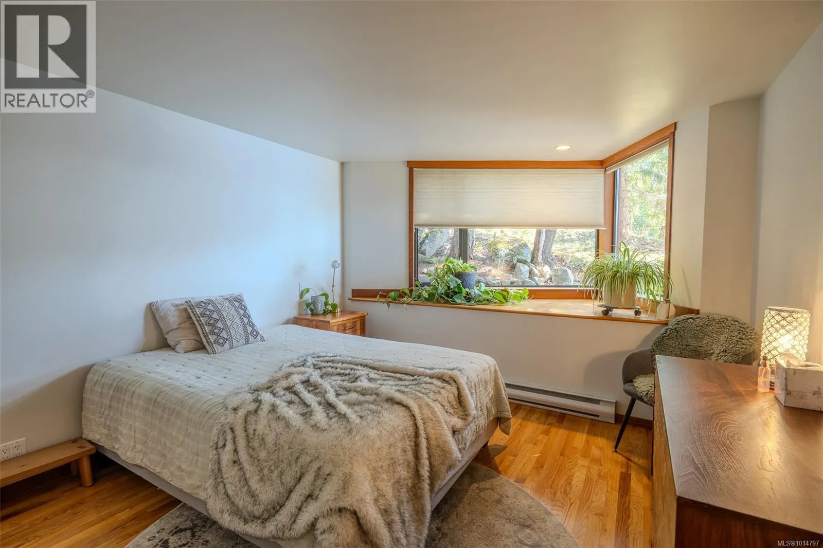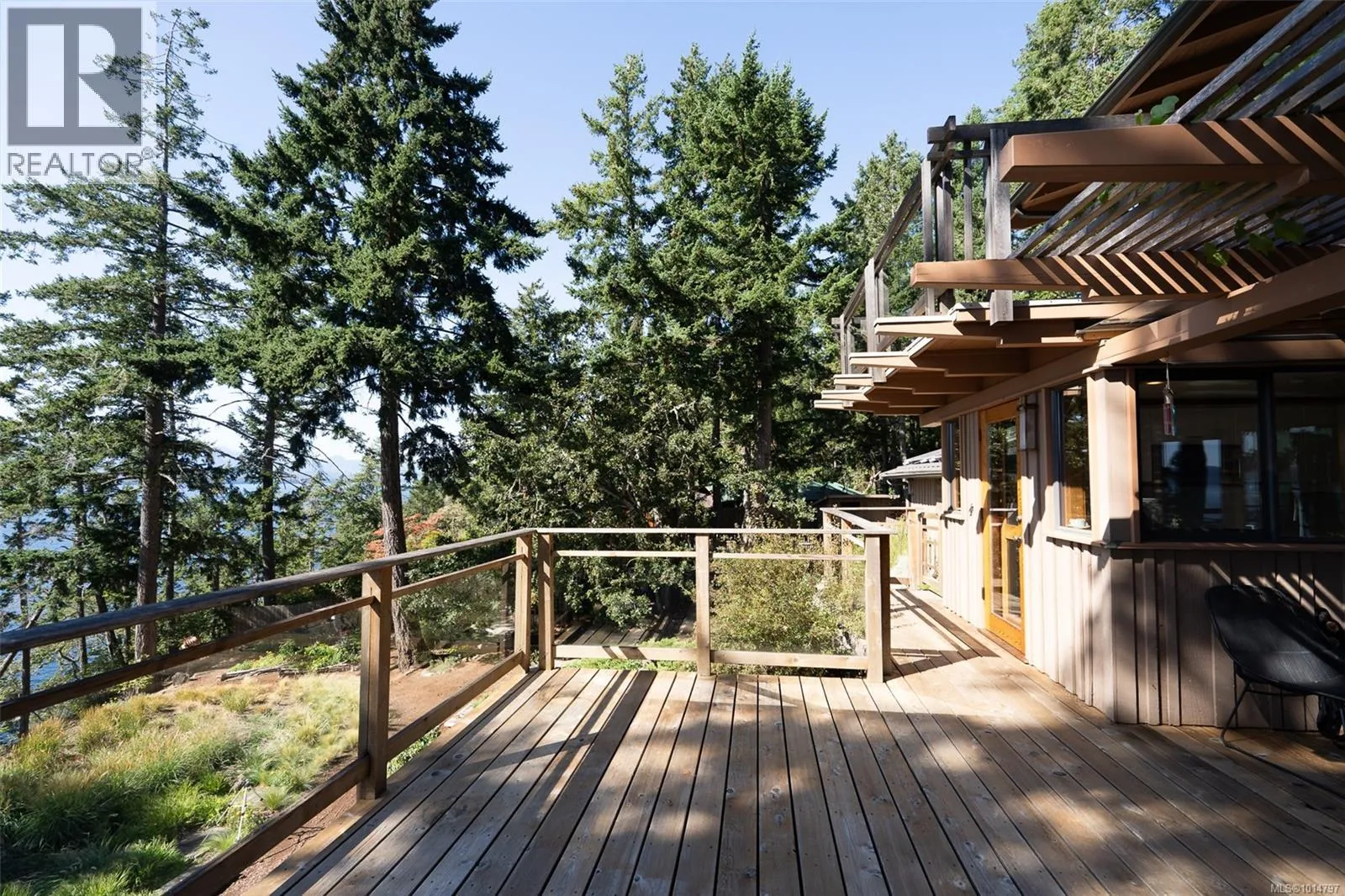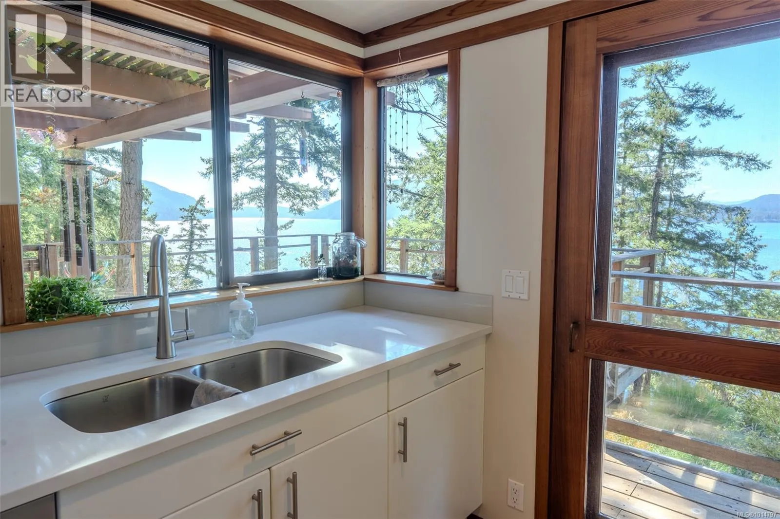 Architect-designed Hank Schubart waterfront retreat â sun-drenched, thoughtfully composed spaces with panoramic southwest views of Sansum Narrows and Vancouver Island. Move-in ready 3 bed, 2 bath plus serene studio (perfect for yoga, meditation or guests) with over 2,400 sq ft of finished living and an open, luminous main living area that flows to the water. Extensive upgrades include grid-tied solar with battery storage, metal roof, upgraded systems, and impeccably designed manicured landscaping with rainwater collection. A half-acre is deer-fenced containing a productive food garden that brims with annuals, perennials, shrubs and trees. Quiet, private yet easy access to ferries and area trails â a sustainable, restorative coastal haven where light, landscape and design harmonize. (id:27476)