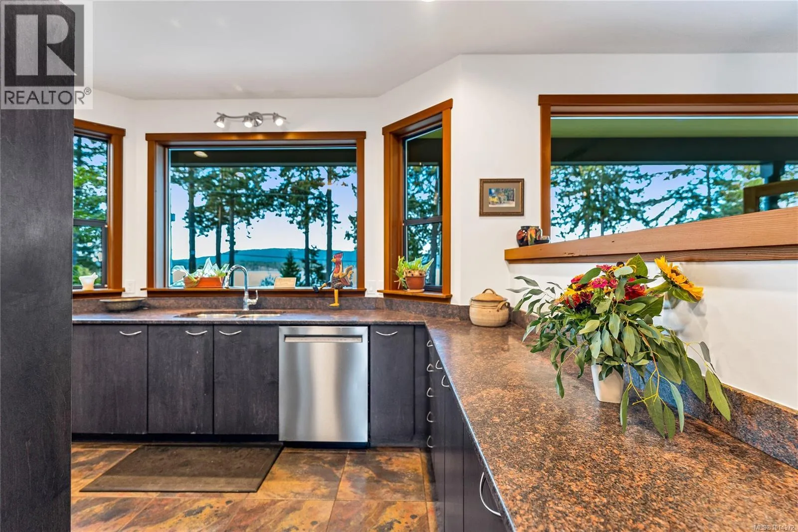 Masterfully designed to capture spectacular sunrises and panoramic vistas of Trincomali Channel from nearly every room, you will also enjoy the afternoon sun over the rolling hills and farms to the south. This exceptional custom residence offers the luxury and location of a premier family home or a boutique B&B. Steps from Hudson Point boat launch and Fernwood Dock, w/2 restaurants, the property also features a private beach area. Enjoy 5kms of shoreline road for easy morning strolls. Inside, the quality is evident throughout. The open plan kitchen is equipped with double convection ovens. Enjoy the comfort of a wood-burning stove, vaulted ceilings, and in-floor heating in the main living room. The grounds are equally impressive, boasting a fully fenced orchard and garden that back onto picturesque rural acreage, complete with a detached garage and greenhouse. Whether you are watching the tides or enjoying the modern amenities, this home represents coastal living at its finest. (id:27476)