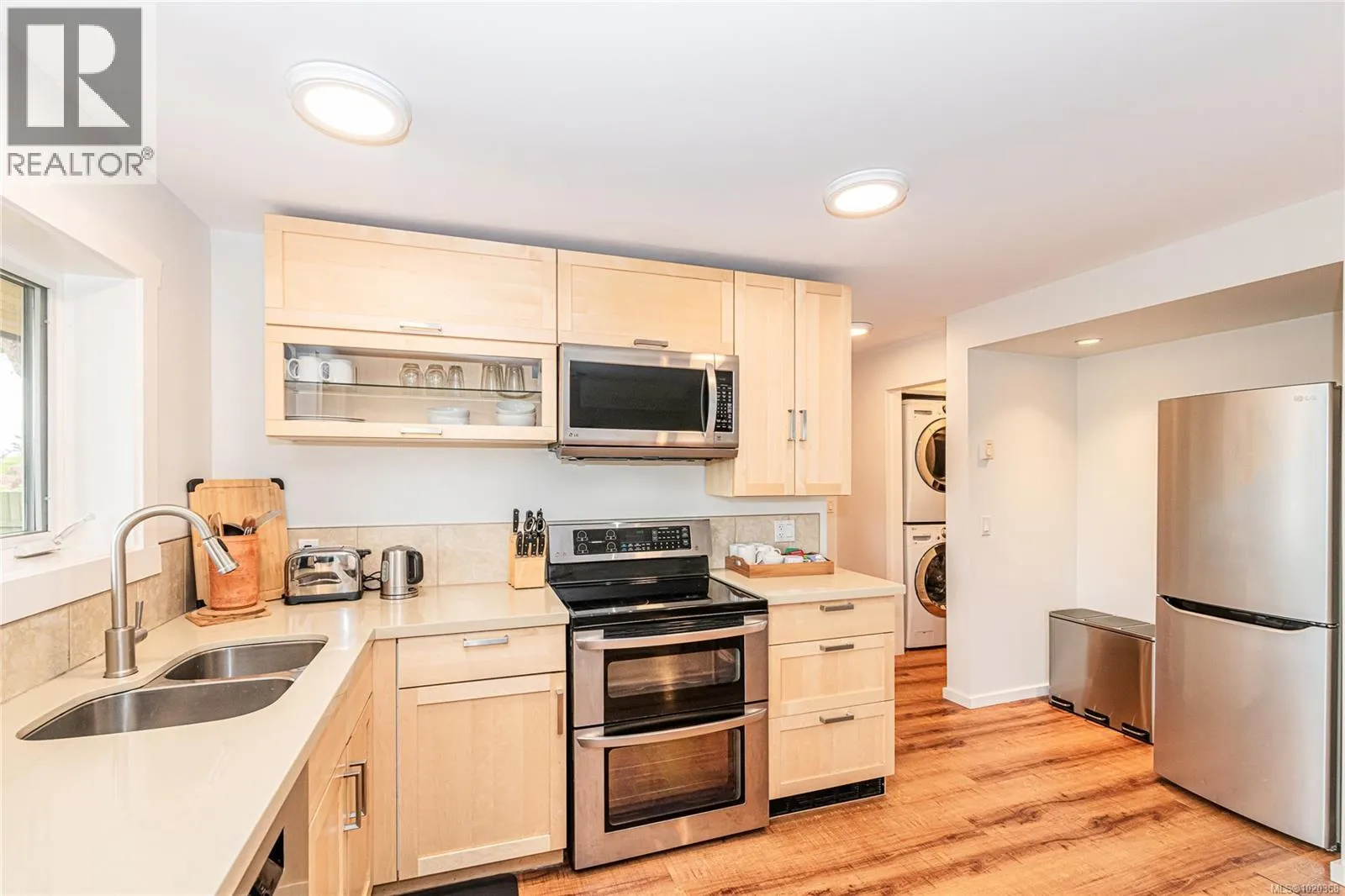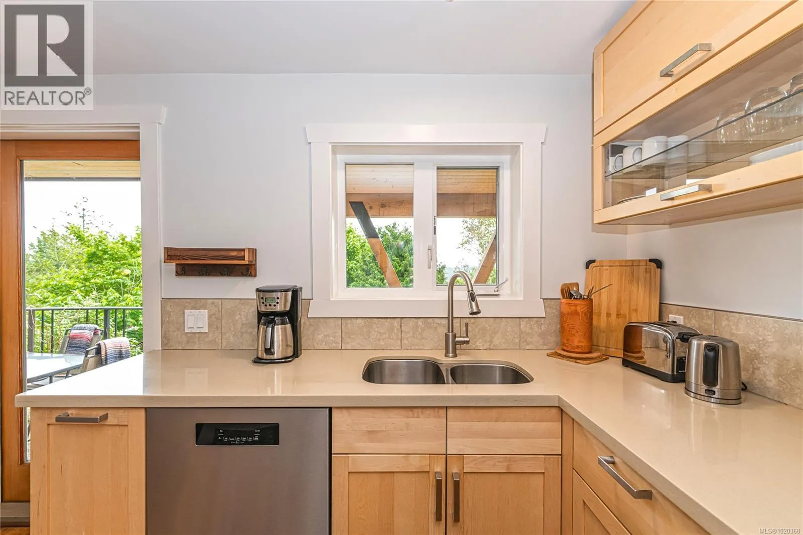Truly move-in ready, this immaculate ocean view home offers wonderful flexibility with two bedrooms and one bathroom on each level. Enjoy the ability to live entirely on the main floor with valuable work, or self-contained guest space below accessed from a private exterior entrance. The updated, clean aesthetic will appeal to those looking for a low maintenance lifestyle and the close-to-town location provides mid-island convenience with town amenities just a minute drive away (or a 20 minute forest trail walk), and beach access within a 7 minute drive. This contemporary home offers additional driveway parking, ample storage via attached storage room, two hydro meters and easy care grounds. Book an appointment to view this lovely home today. (id:27476)