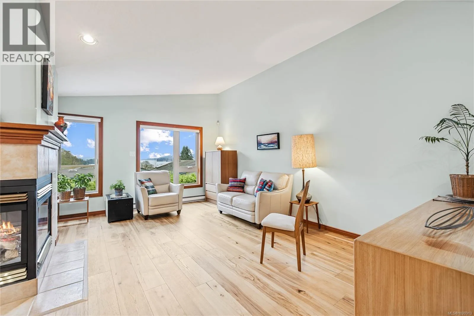 Elegant Townhome with Sublime Ocean Views. Experience sophisticated island living in this immaculate, bright, and quiet townhome, perfectly situated in one of Salt Spring's premier developments. The open-concept upper level main floor features wide plank wood flooring, vaulted ceilings, solid oak kitchen cabinetry, and a cozy three-sided glass propane fireplace. It flows seamlessly onto an East-facing sundeck for spectacular Ganges Harbour and sunrise views. The spacious upper-level Primary Suite boasts vaulted ceilings, a private West facing balcony, a large walk-in closet, and a stunningly updated, fully accessible 3-piece bathroom with a walk-in shower and heated floors. Two additional large bedrooms on the ground floor offer quality carpet, one with private patio access and another with a built-in Murphy bed. Solid fir doors and trim throughout ensure an elegant finish and fabulous flow, perfect for a home office or guests. Residents enjoy the tranquil, park-like grounds of Cottonwood Close, complete with a pond and gazebo. The location is unmatched: close to the hospital and shopping, and within easy walking distance to town. Additional features include a garage with a Level 2 EV charger and radiant heater, new wool carpet on the stairs, and a working built-in vacuum and intercom system. This stylish, updated, and move-in-ready property offers immense value. No age, rental, or pet restrictions. (id:27476)