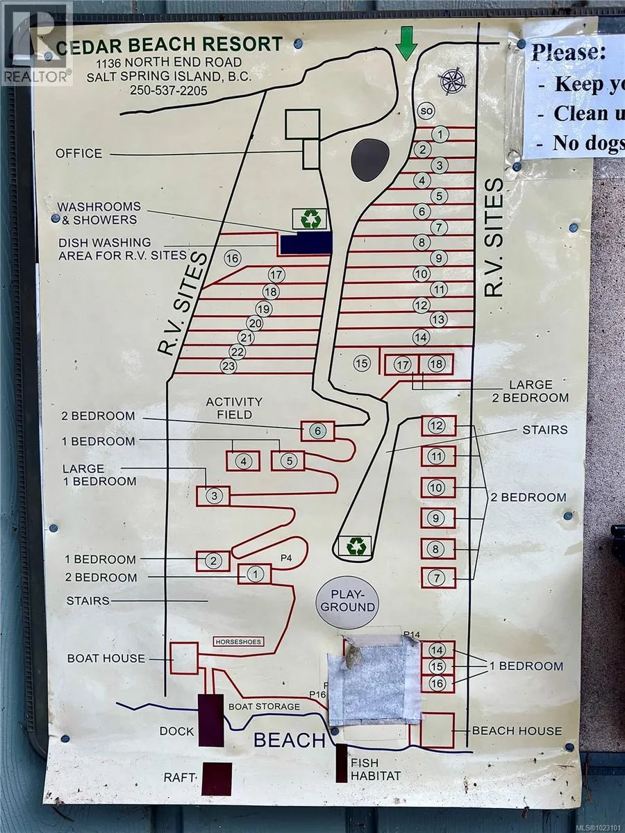 Looking for an affordable recreational getaway? RV Site 20 at Cedar Beach Resort might be just what youâre after. Ideally located just a few hundred feet from the shores of St. Maryâs Lake, this site offers flexibility for your lifestyleâitâs currently used for nightly rentals, but you could enjoy it for your own year-round use, rent it out short term, long term, or even combine all three options. Cedar Beach Resort is a welcoming 4-acre lakefront property on Salt Spring Island, featuring 24 RV sites and 17 charming cottages. The resort offers a wonderful range of amenities including a great swimming beach, bass and trout fishing, a wharf, and a clubhouse complete with kitchen facilities, a pool table, and more. A perfect spot to unwind, explore, or generate rental income. RV Not included. (id:27476)